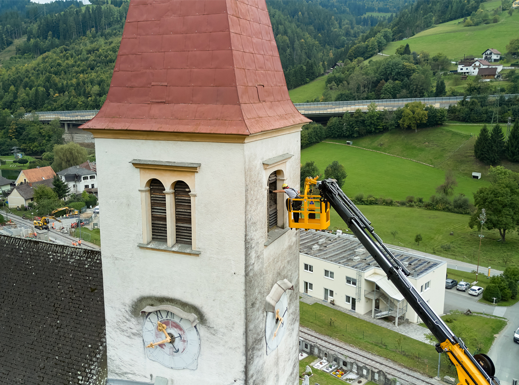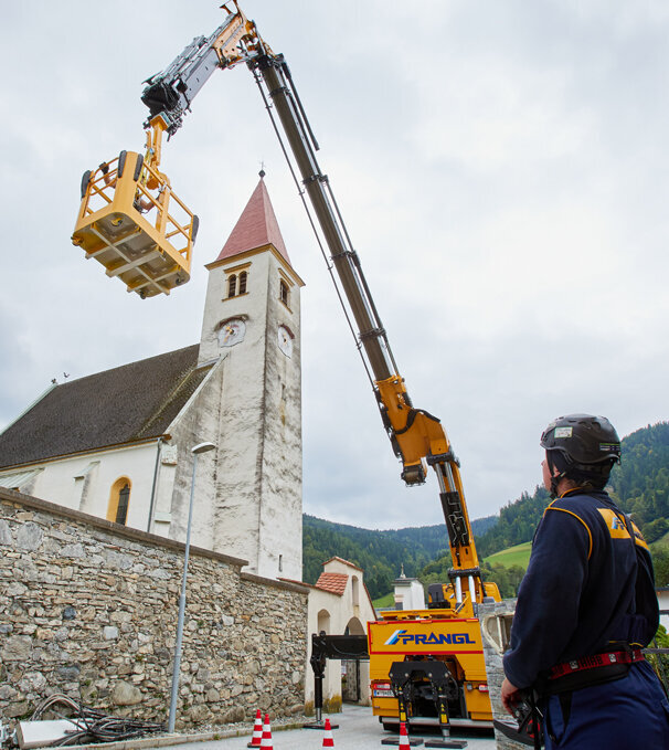 A mobilkommunikációs rendszerek elengedhetetlenek egy ország kommunikációjához. Néha, a szokásostól eltérően, messziről nem láthatók, mert például a templomtornyokban vannak "elrejtve". Pranglt hívták egy ilyen szokatlan helyszínre, ahol az eszköz korszerűsítésre szorult. A kihívást az jelentette, hogy a templom körül alig volt hely a nagyméretű gépeknek.