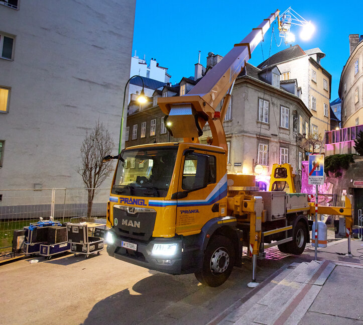 Csak nagyon ritkán forgatnak egy filmet az adott pillanatban rendelkezésre álló fényekkel. Ahhoz, hogy egy jelenetet a kívánt hatással ábrázoljunk, megfelelő világítási hangulatra van szükség. Fontos feladat a stáb megfelelő felszereléssel való ellátása. A Prangl nagy tapasztalattal rendelkezik ezen a területen, számtalan filmprodukcióhoz szállított már emelőkosaras munkaállványokat és mobil darukat. Ezzel a gazdag tapasztalattal felvértezve tudjuk tanácsokkal, támogatással és a megfelelő gépparkkal ellátni a világítástechnikusokat.