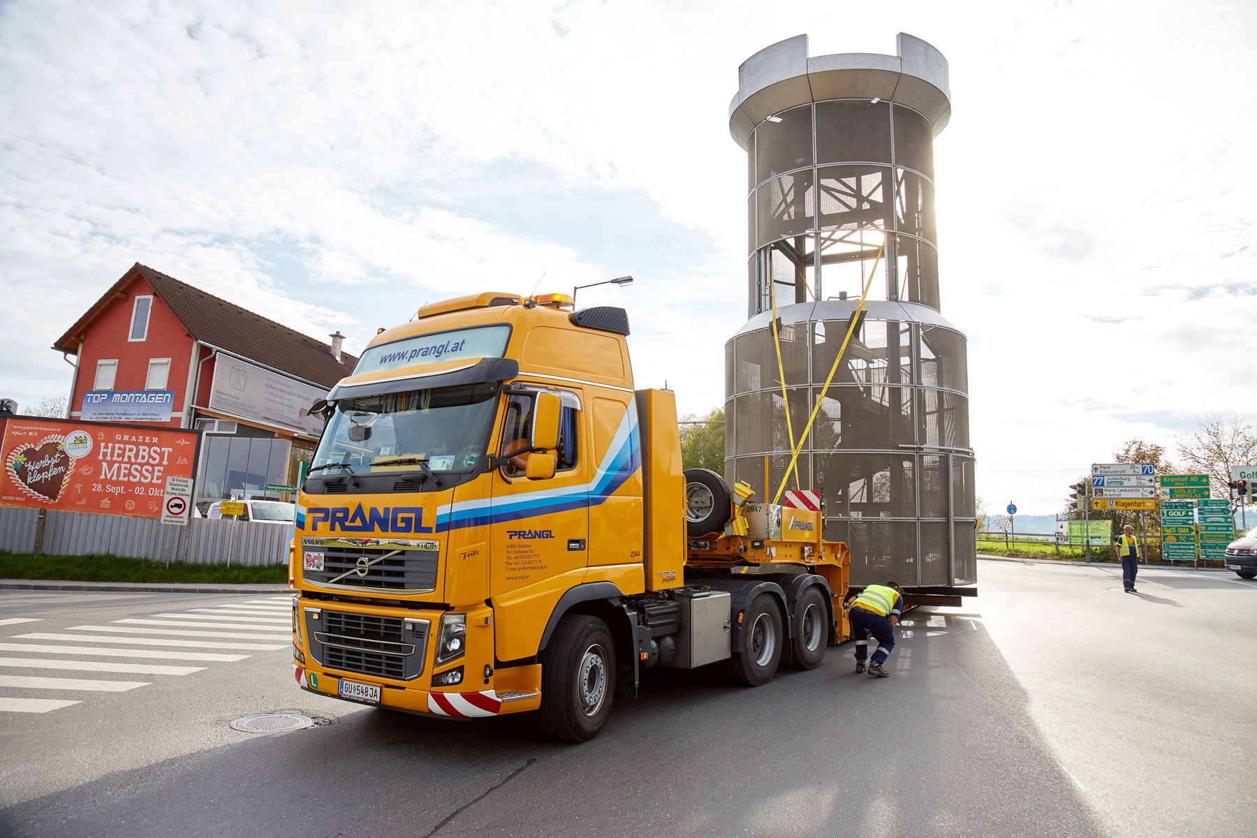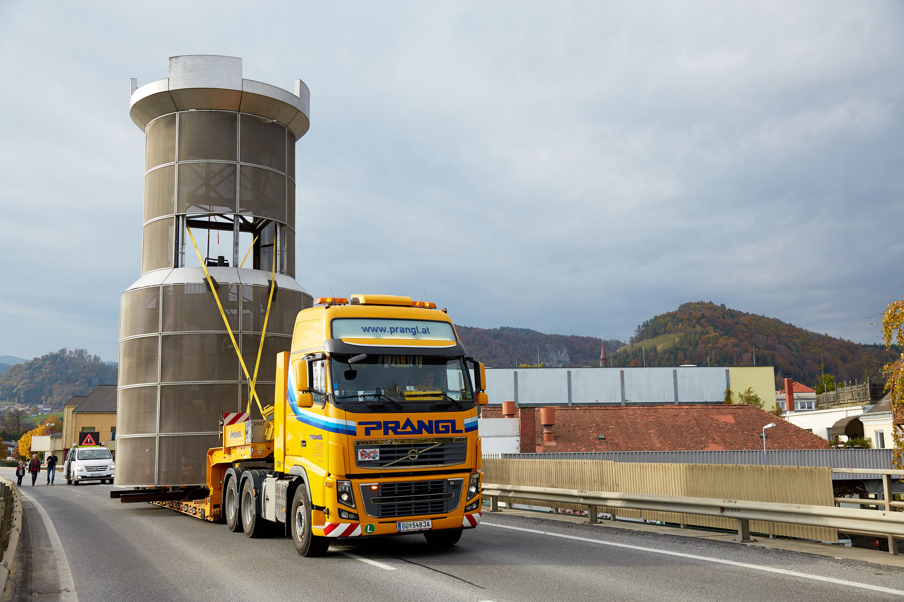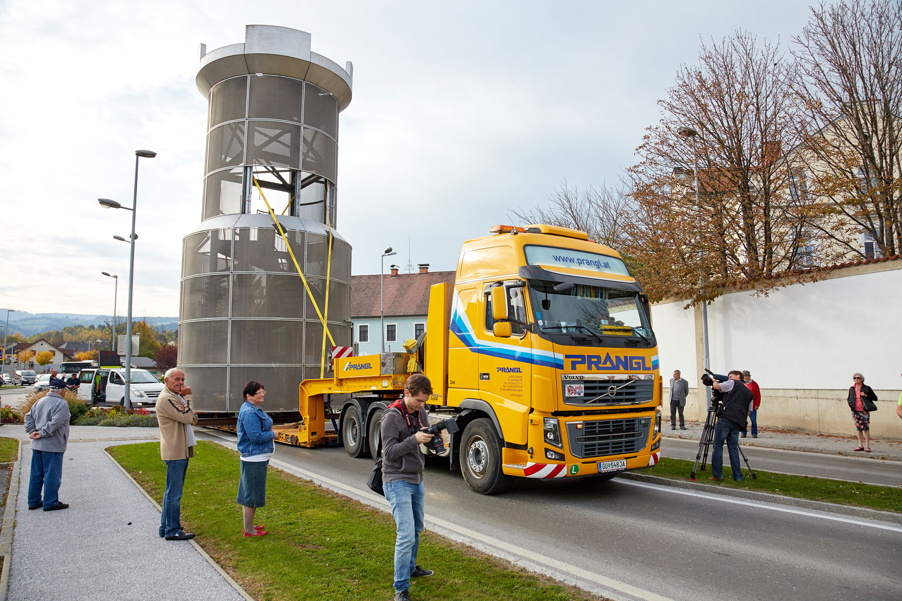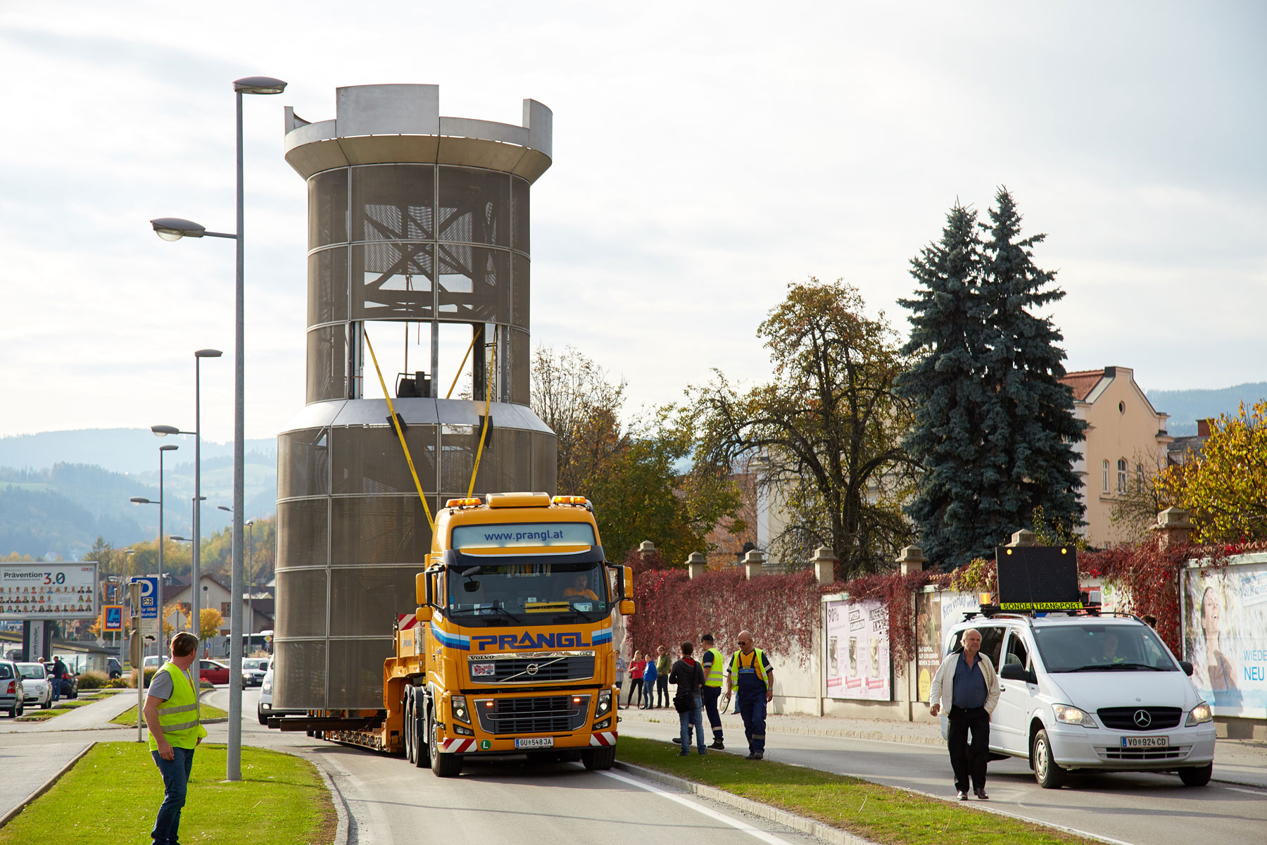 A stájerországi Köflach új jelképet kapott. A város tornyát, amely korábban a városháza mellett állt, a B70-es úton a város bejáratánál található körforgalom közepén helyezték el. A különleges szállítással és az emelési munkákkal kizárólagosan a Pranglt bízták meg.