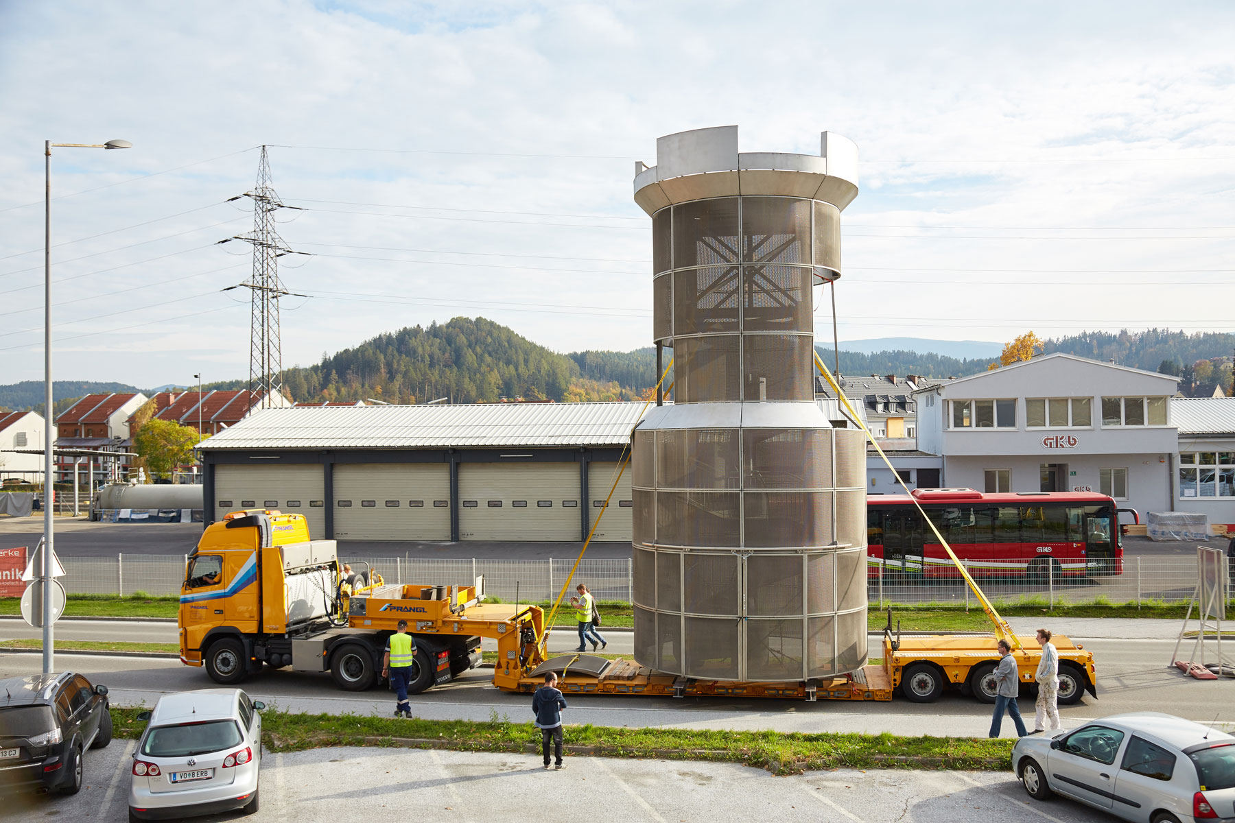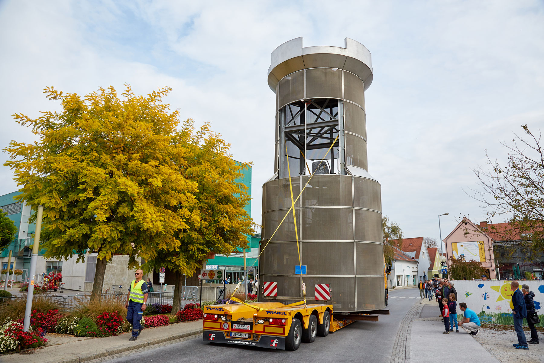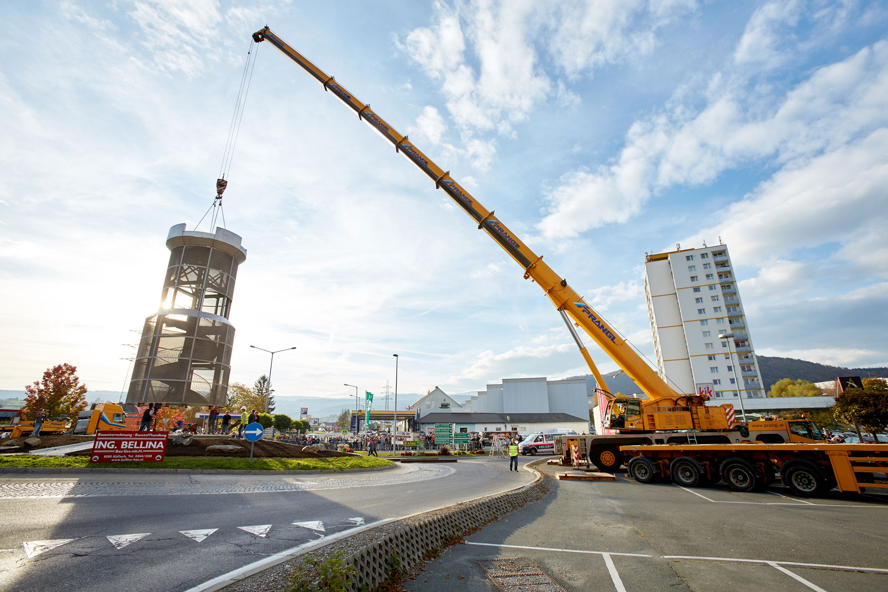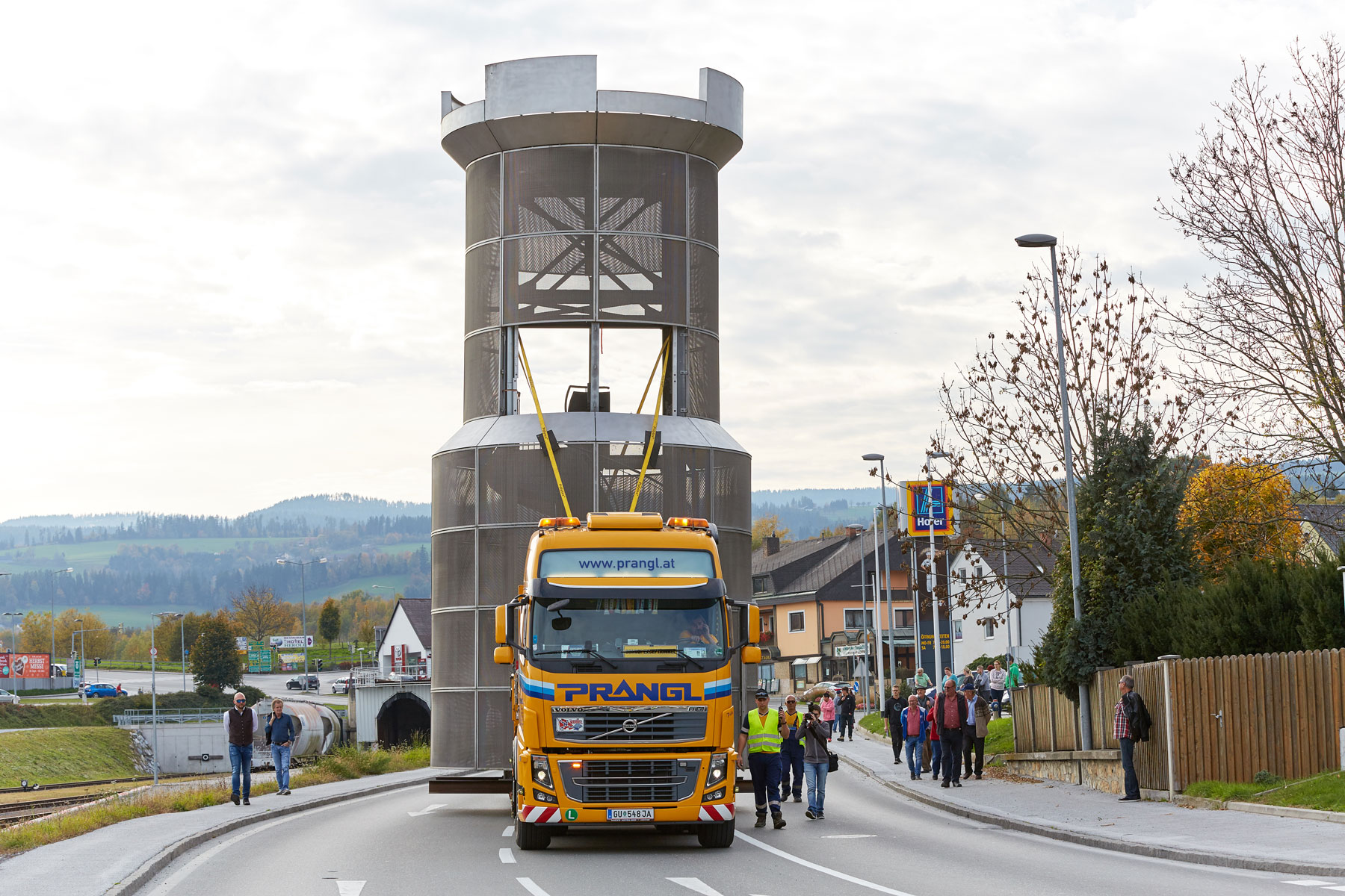 A stájerországi Köflach új jelképet kapott. A város tornyát, amely korábban a városháza mellett állt, a B70-es úton a város bejáratánál található körforgalom közepén helyezték el. A különleges szállítással és az emelési munkákkal kizárólagosan a Pranglt bízták meg.