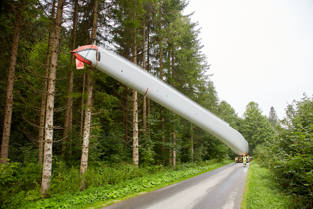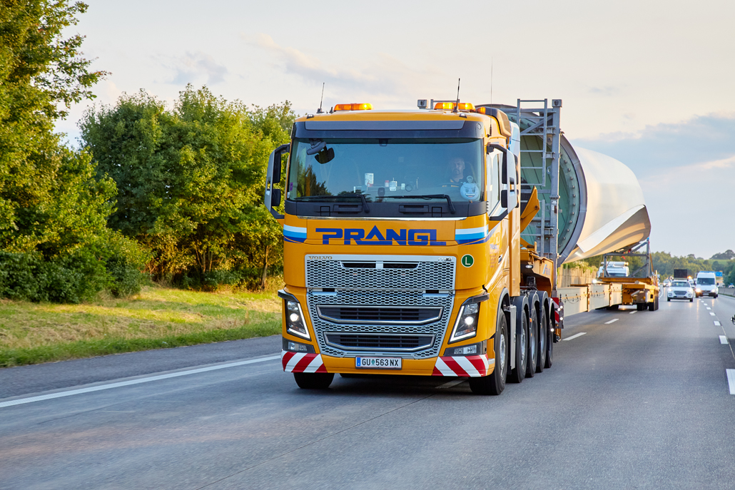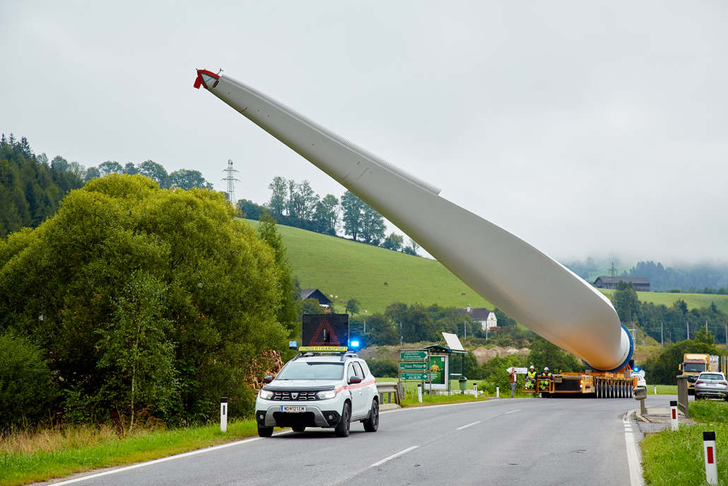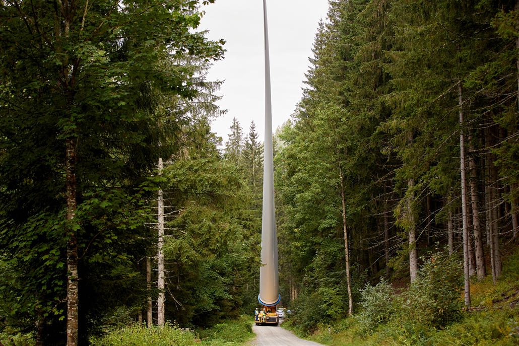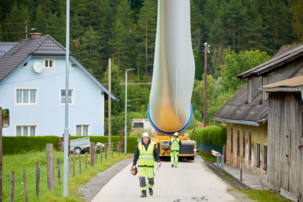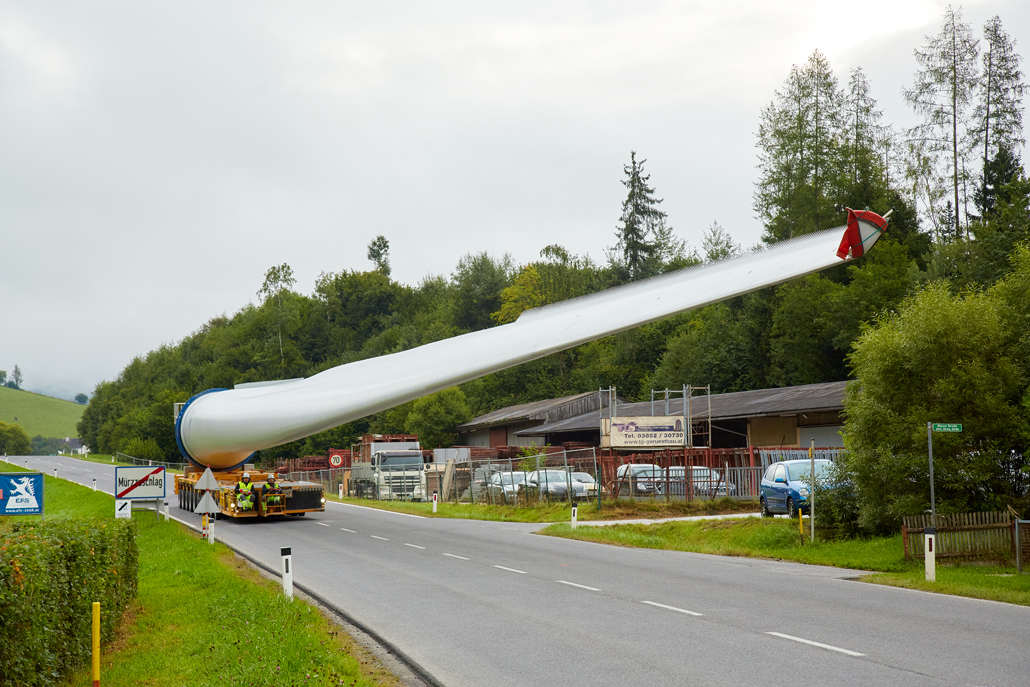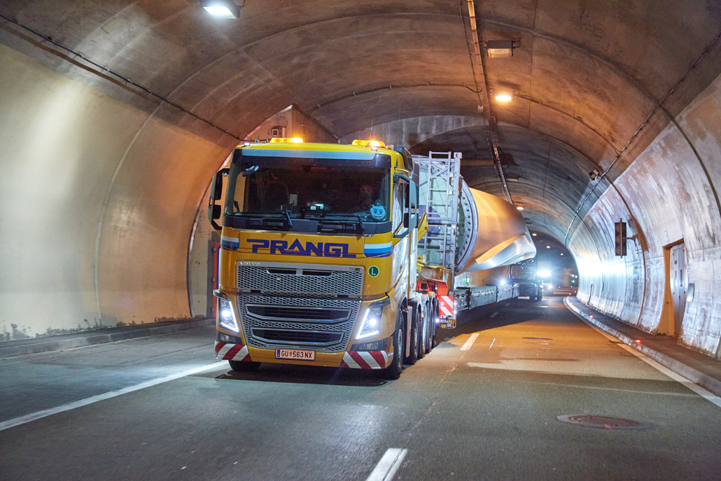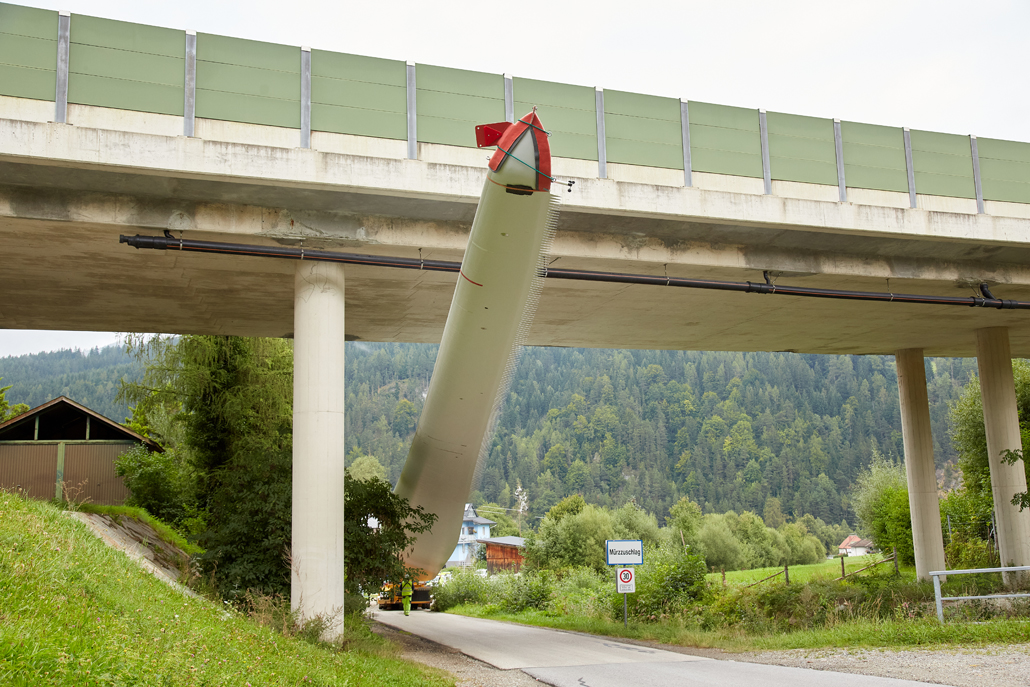 Közúti szállítás a németországi gyárból, rakományszállítás az ausztriai Mürzzuschlagban, hegyi szállítás és összeszerelés: Prangl összeállított egy teljes csomagot az új szélturbinákhoz. Ez természetesen magában foglalta az útvonalak és a daruparkolóhelyek előzetes tervezésének támogatását is, valamint hogy kifejezetten a szélturbinák alkatrészeinek szállítására és emelésére tervezett speciális berendezéseket telepítettek.