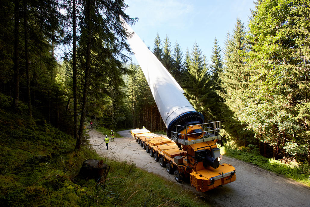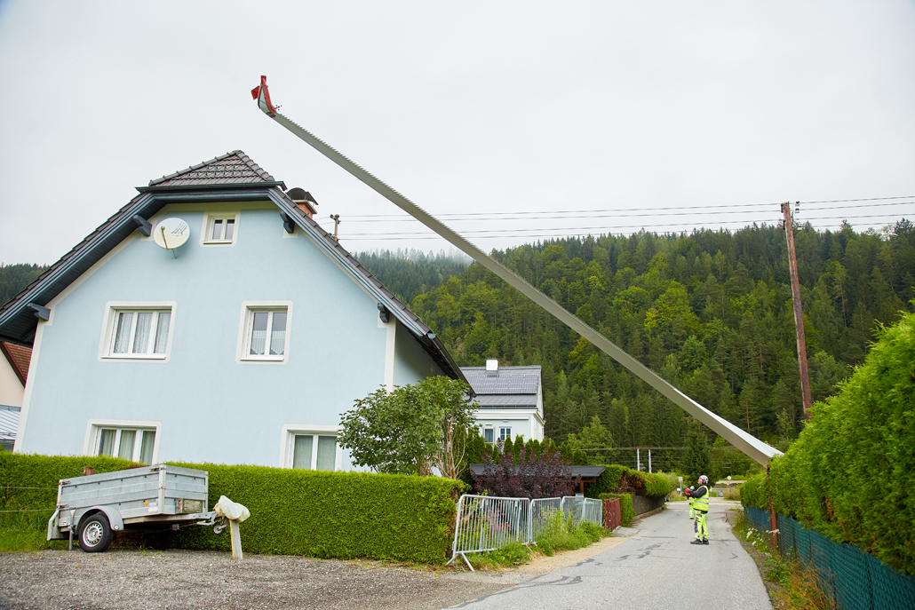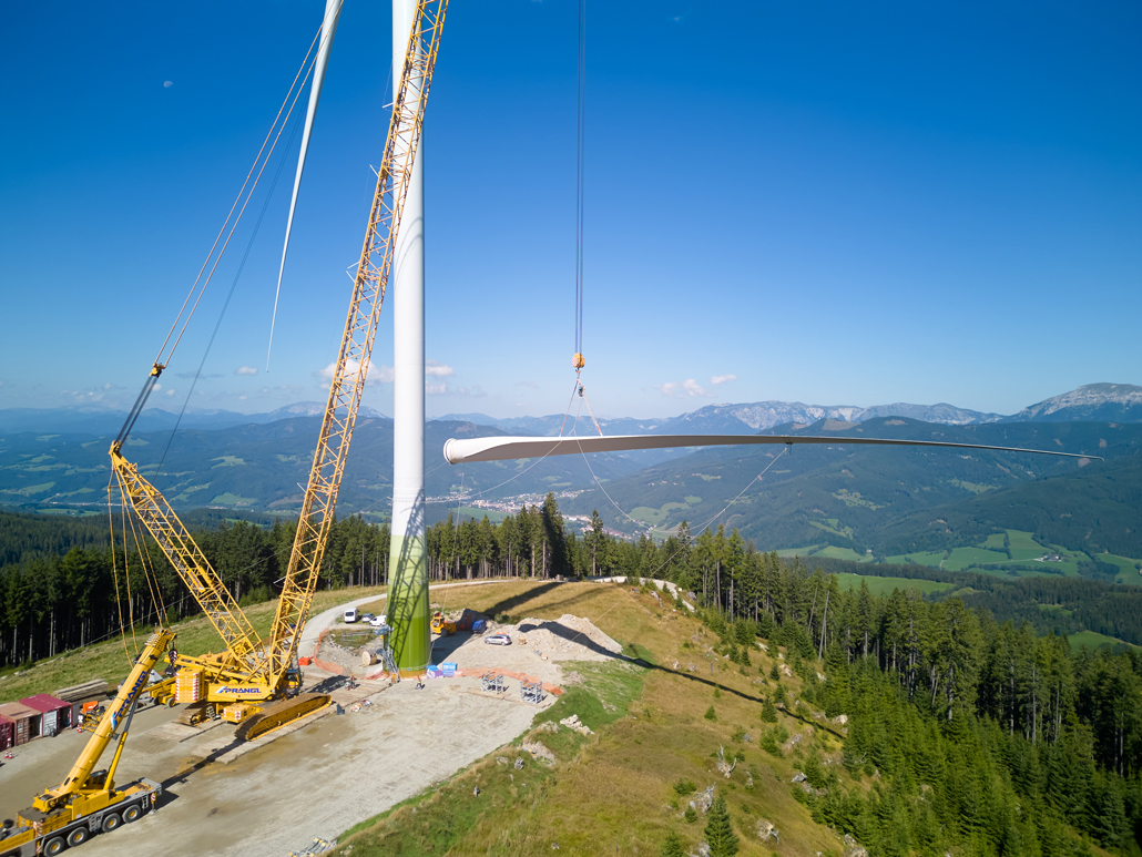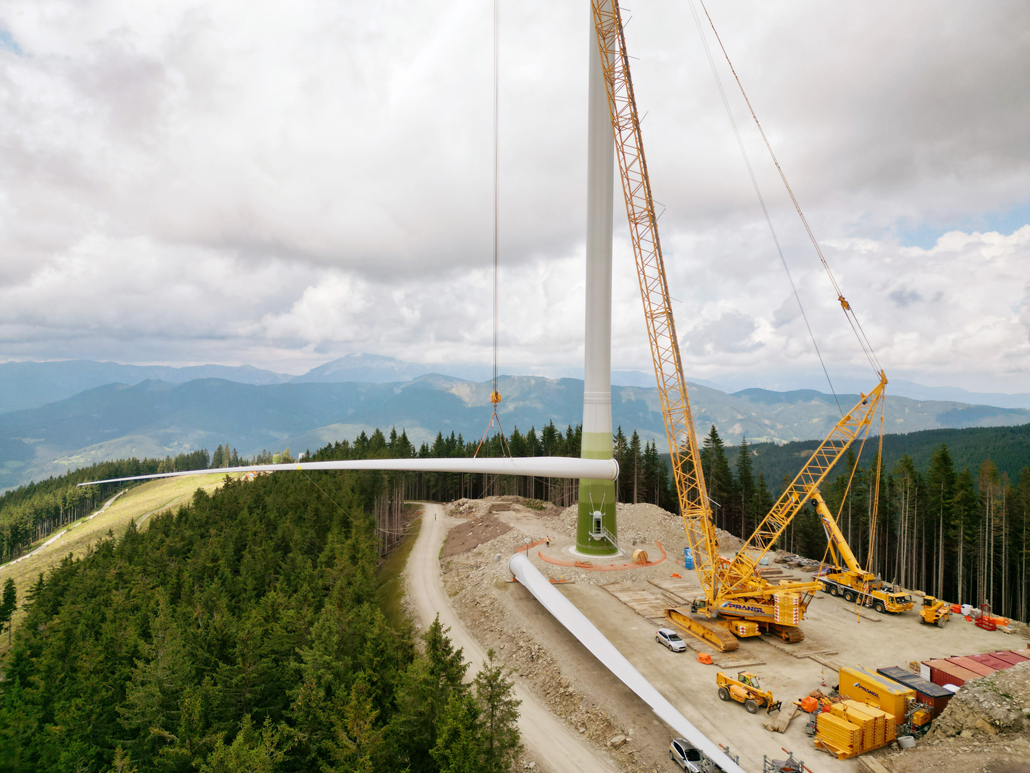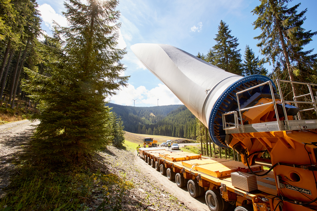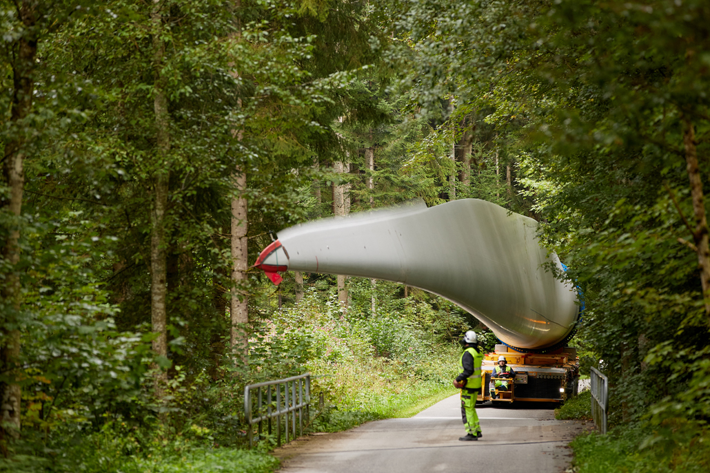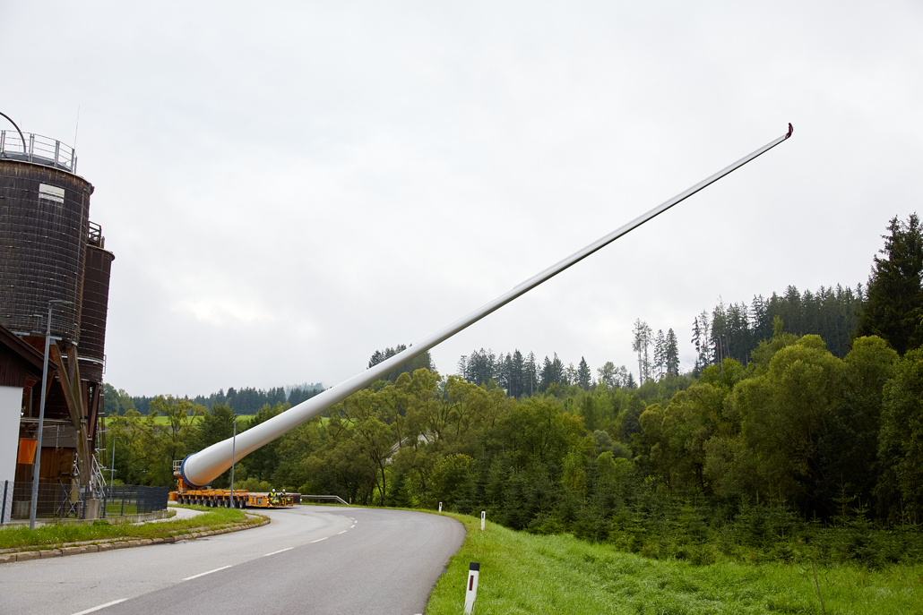 Közúti szállítás a németországi gyárból, rakományszállítás az ausztriai Mürzzuschlagban, hegyi szállítás és összeszerelés: Prangl összeállított egy teljes csomagot az új szélturbinákhoz. Ez természetesen magában foglalta az útvonalak és a daruparkolóhelyek előzetes tervezésének támogatását is, valamint hogy kifejezetten a szélturbinák alkatrészeinek szállítására és emelésére tervezett speciális berendezéseket telepítettek.