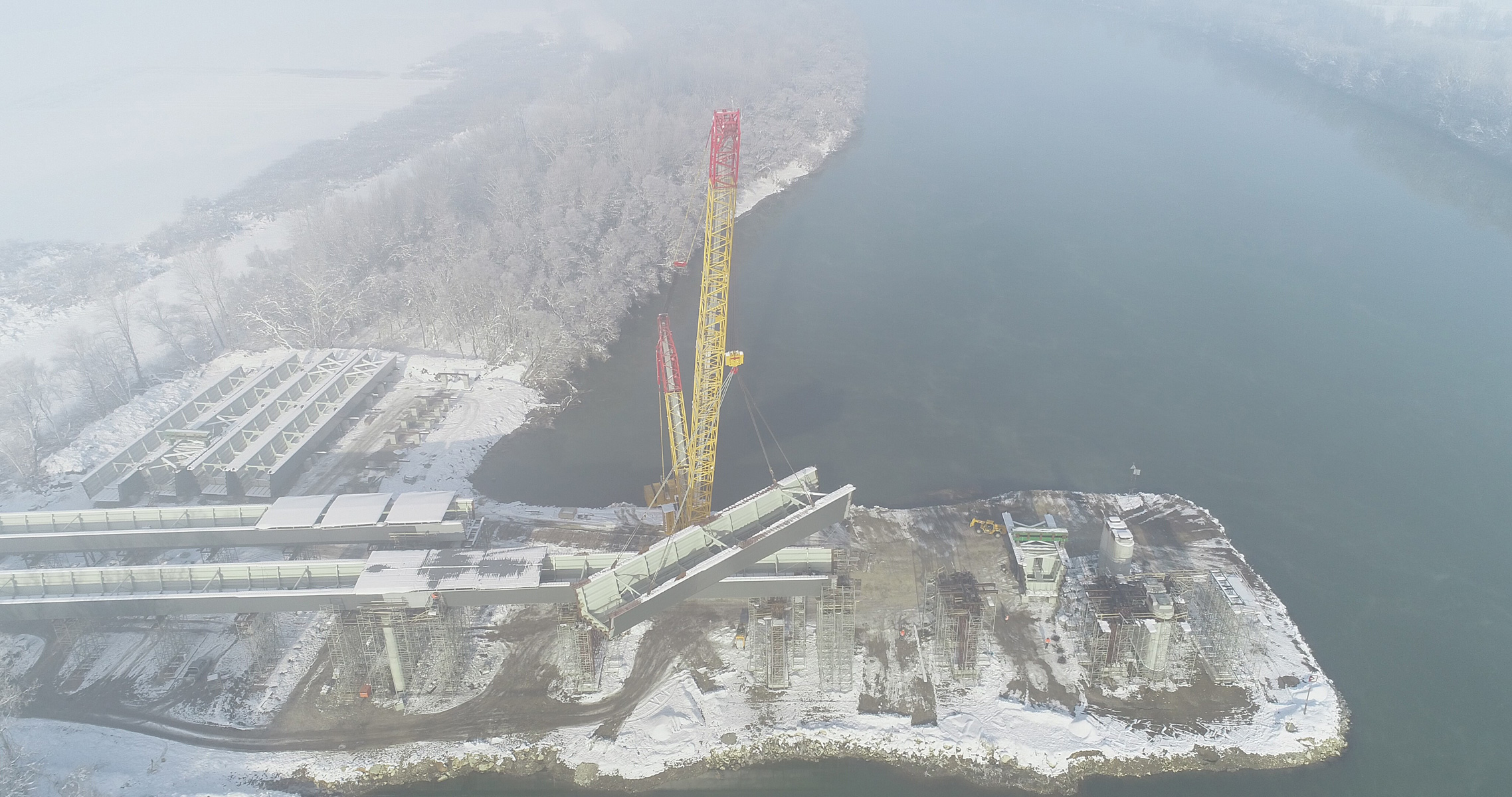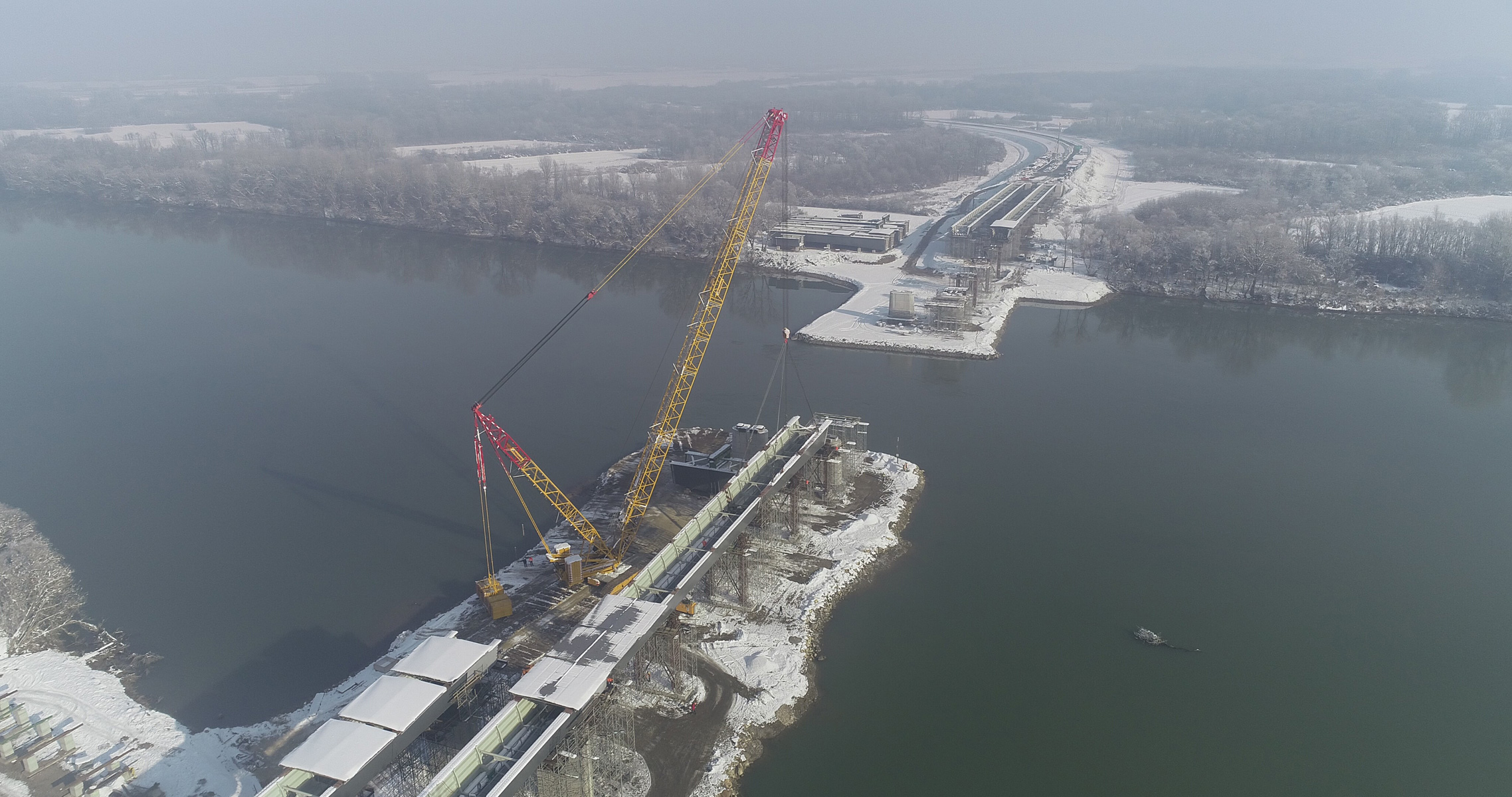 A Száva folyón átívelő új híd a horvátországi és bosznia-hercegovinai autópálya-hálózatot kapcsolja össze. A végső kiépítési szakaszban mindkét irányban három forgalmi sáv és egy-egy biztonsági sáv fog épülni, melyek mellé gyalogjárdát is terveztek. A feladat teljesítéséhez a Prangl egy 650 tonnás lánctalpas darut vetett be. 50 teherautóval szállították a daruelemeket az építési helyszínre, ami logisztikai mesterműnek számít. A nagyméretű daru teljesen összeszerelt állapotában (teher nélkül) nagyjából 900 tonnát nyomott.