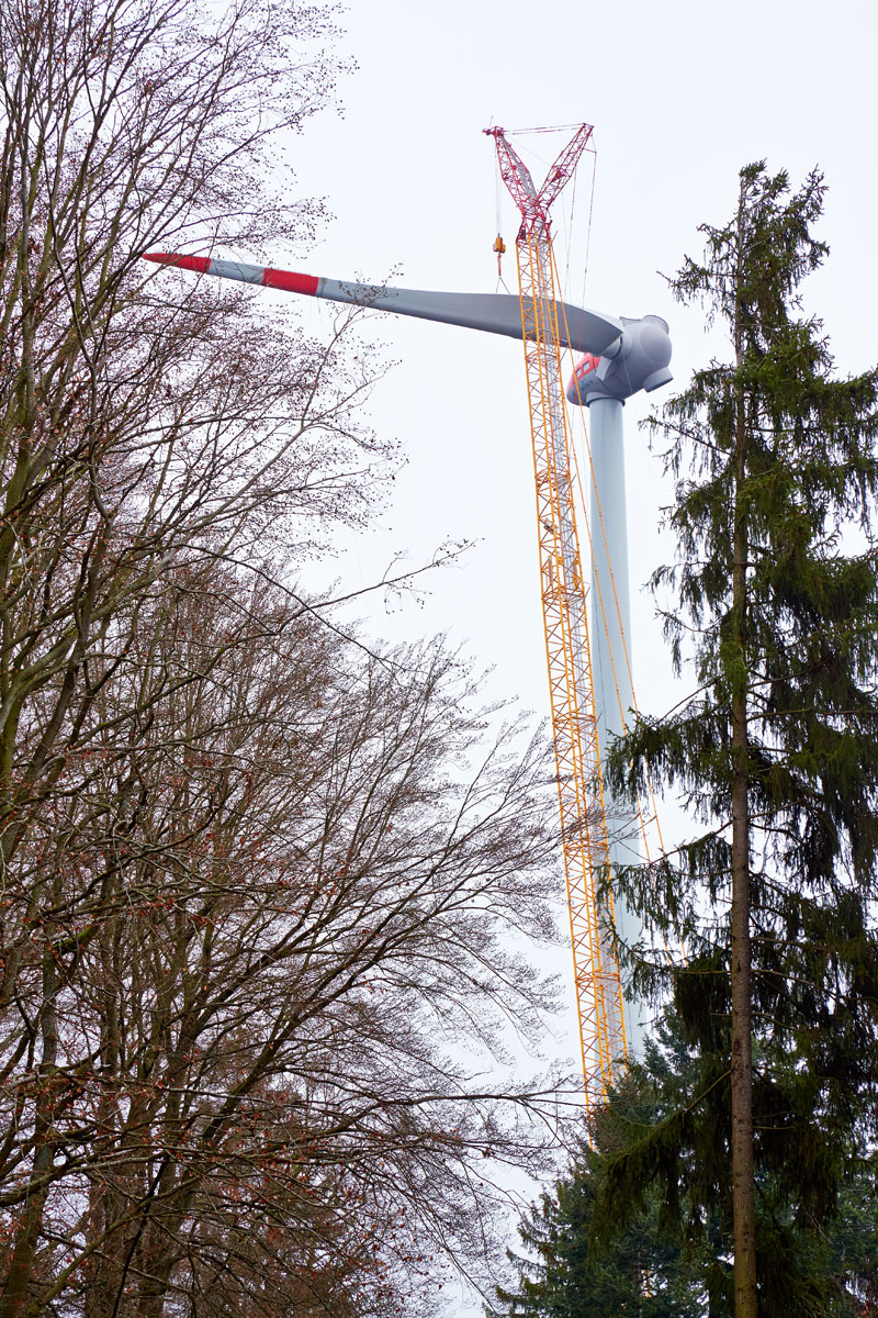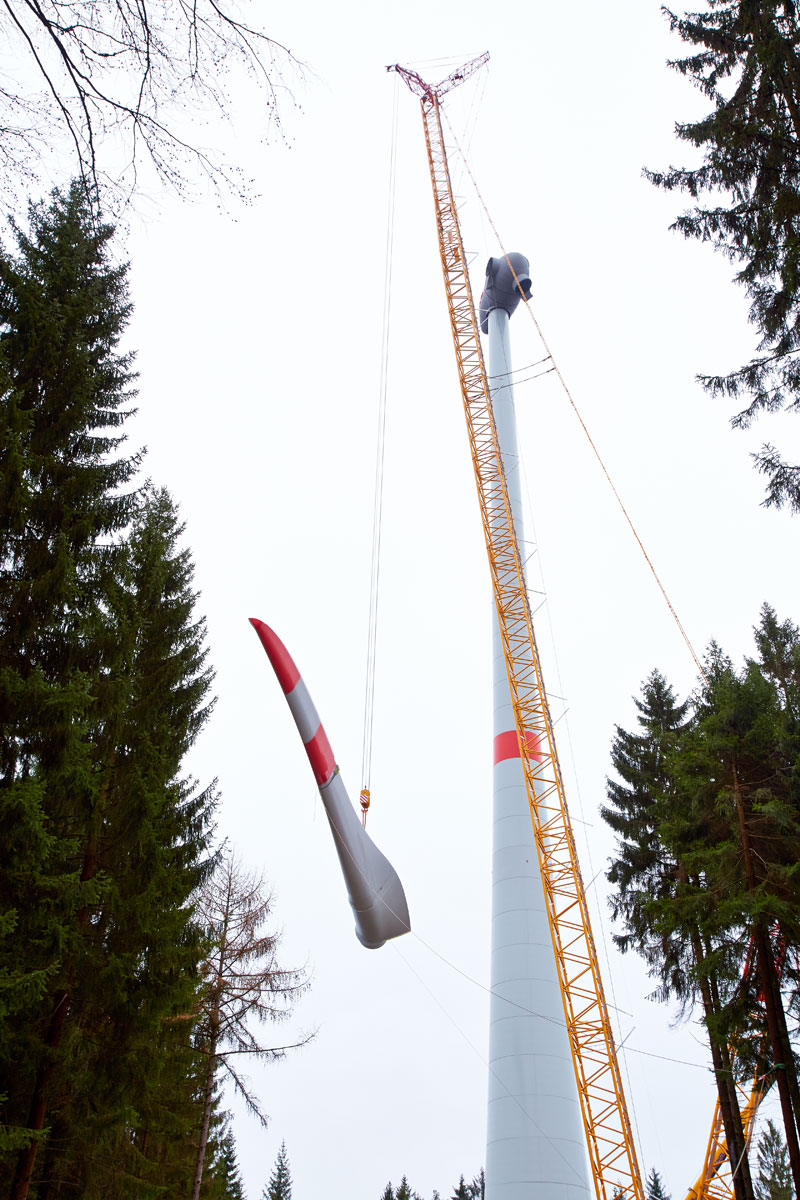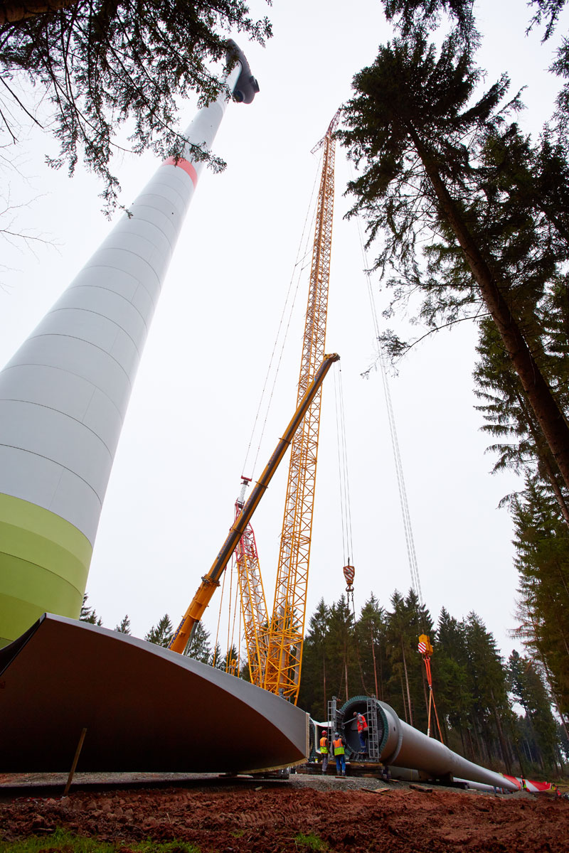 Berendezésenként két darab 55 tonna maximális súlyú acéltorony-elemet kell beemelni. A legnehezebb elemek pedig az egyenként 64 tonnás gondola és 65 tonnás forgórész. Mivel a szélerőmű park egy dombos, erdős területen található, a szűkös helyviszonyok a nagy daruk fel- és leszerelésekor komoly kihívást jelentenek. A helyi üzemeltetővel egyetértésben néhány fát meg kellett nyírni, mivel a daruk telepítése ennek hiányában nem lett volna lehetséges.