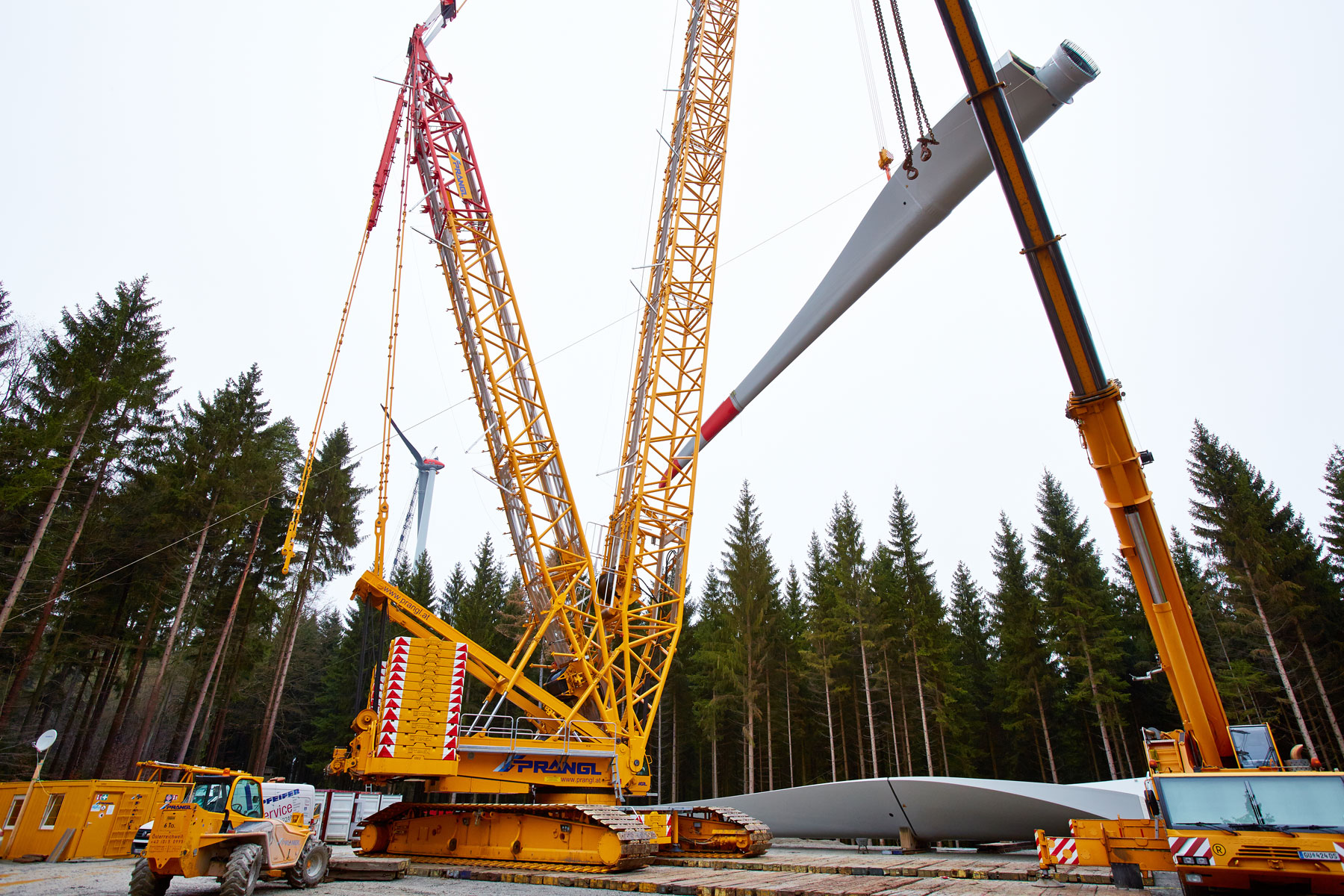 A Prangl szakemberei 2 nagydarus csapattal felelnek a helyszínen a szélerőművek szabályos összeszereléséért. Egy-egy legújabb generációs 600 tonnás és 650 tonnás lánctalpas daru végzi az emeléseket. Mindkét csapatot egy-egy 200 tonnás segéddaru és egy-egy 6 tonnás teleszkópos emelő támogat. Némelyik berendezésnél még egy 80 tonnás teleszkópgémes lánctalpas darut is be kell vetni. A hagyományos teleszkópos daruk ennél a projektnél elérték volna a teljesítményük határát.