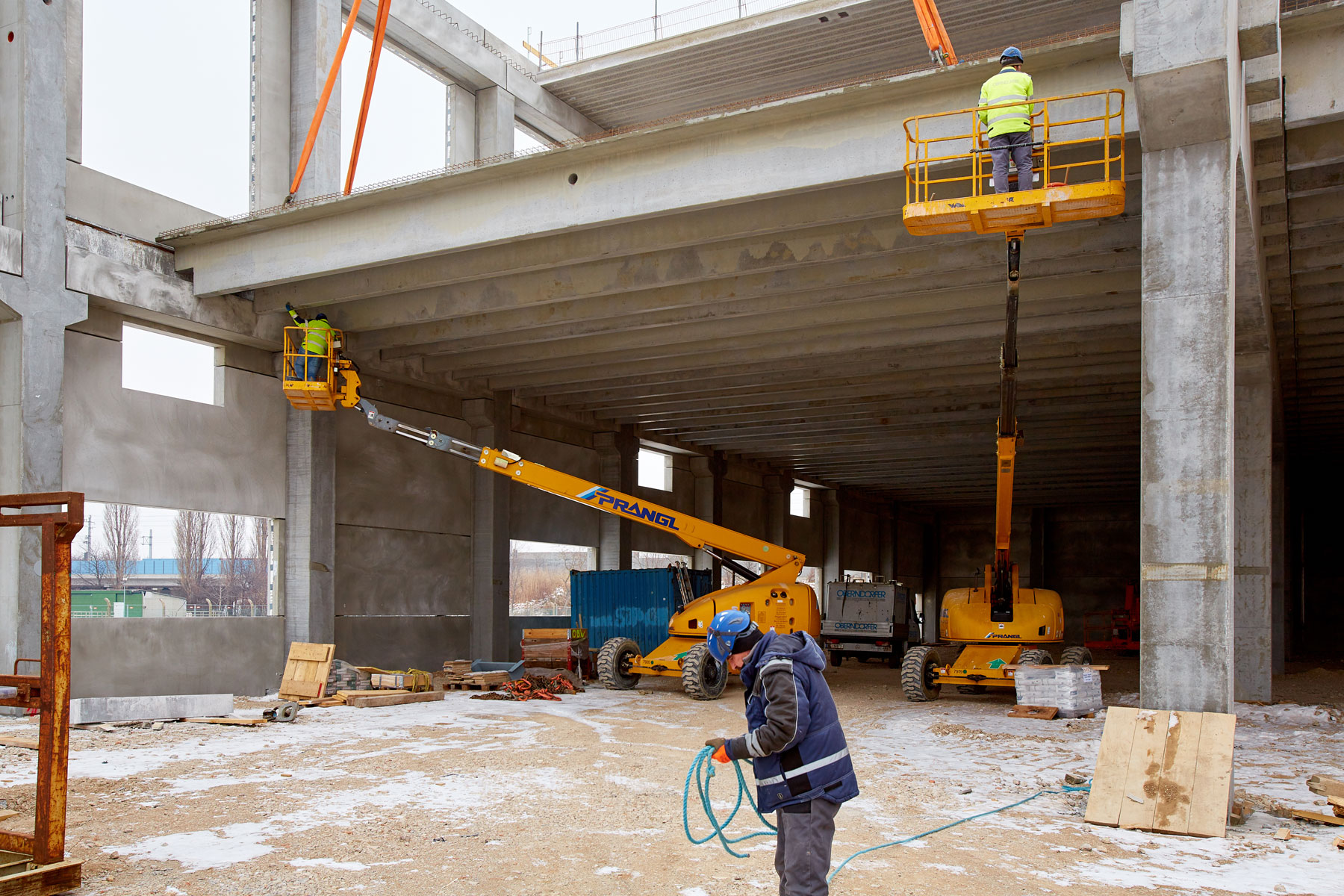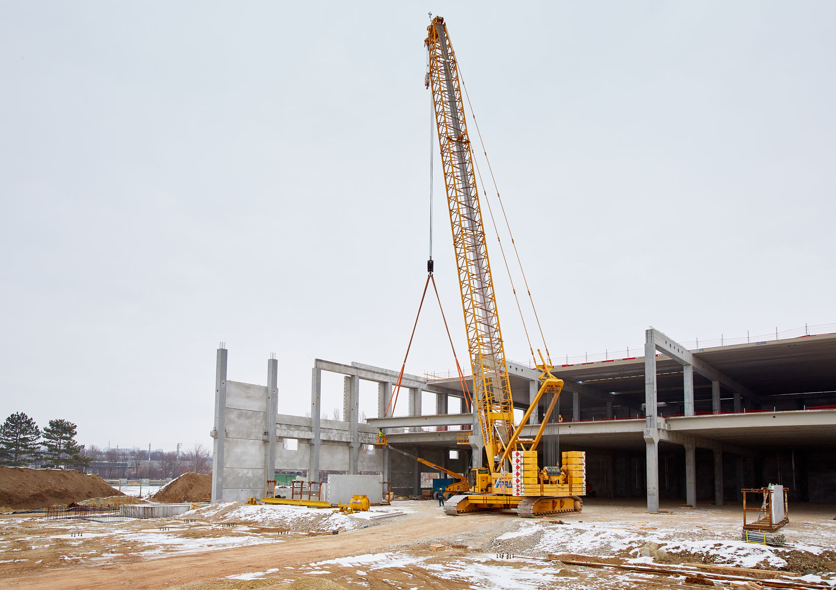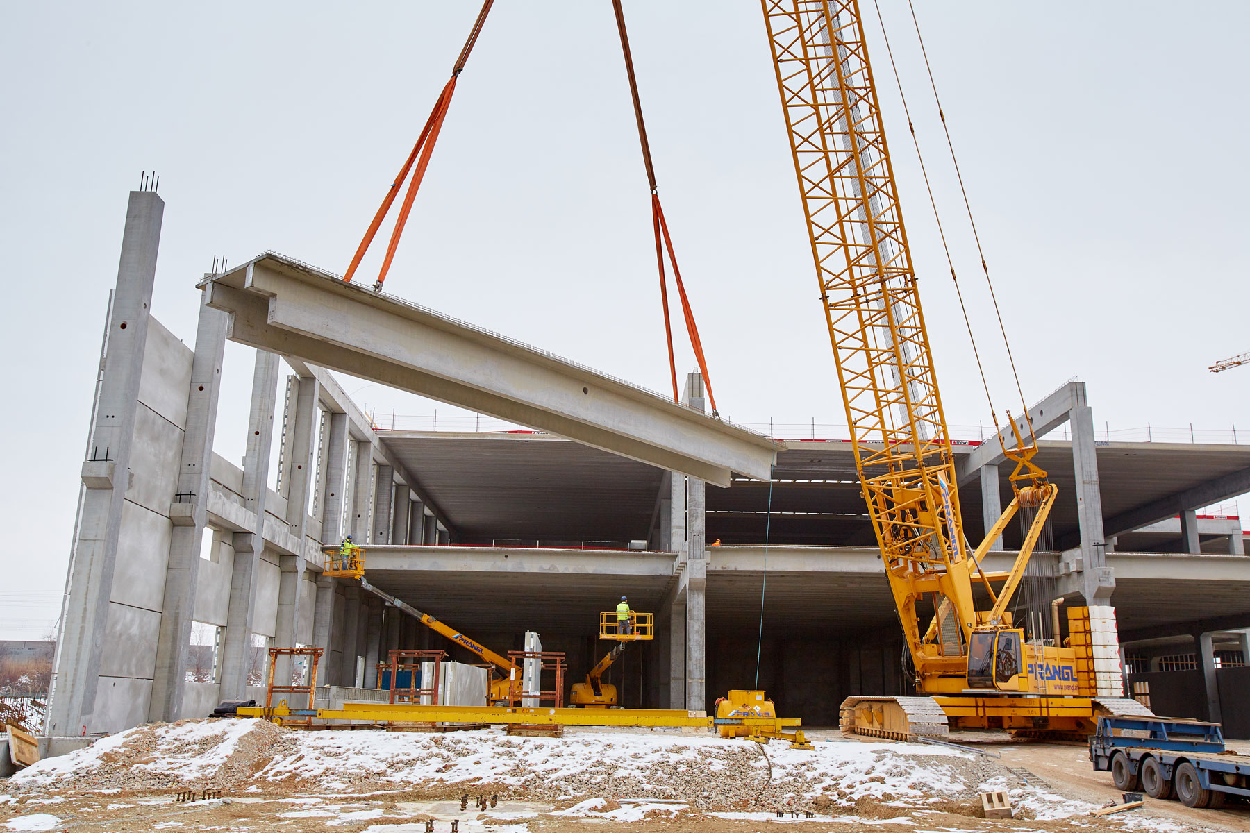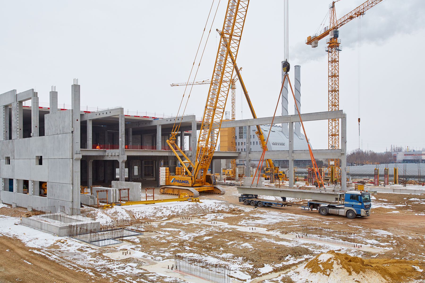 Az egyenként akár 39 tonnás előregyártott betonelemeket egy 280 tonnás lánctalpas daru emelte be, míg a falakat és a lépcsőházakat egy 100, ill. 130 tonnás teleszkópos daru emelte a helyükre. Ezenkívül még két 21 méteres, teleszkópos szerelőkosarat is használtunk. A több szakterületet érintő projektek esetén különösen fontos, hogy legyen kapcsolattartó a helyszínen. Az építkezés közelségének és a fővállalkozó általános rálátásának köszönhetően minden munkához mindig a megfelelő gép állt rendelkezésre. Így ebben az esetben is bevált a „mindent egy kézből” elv.