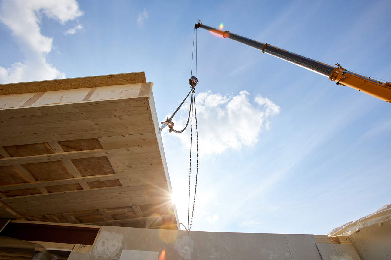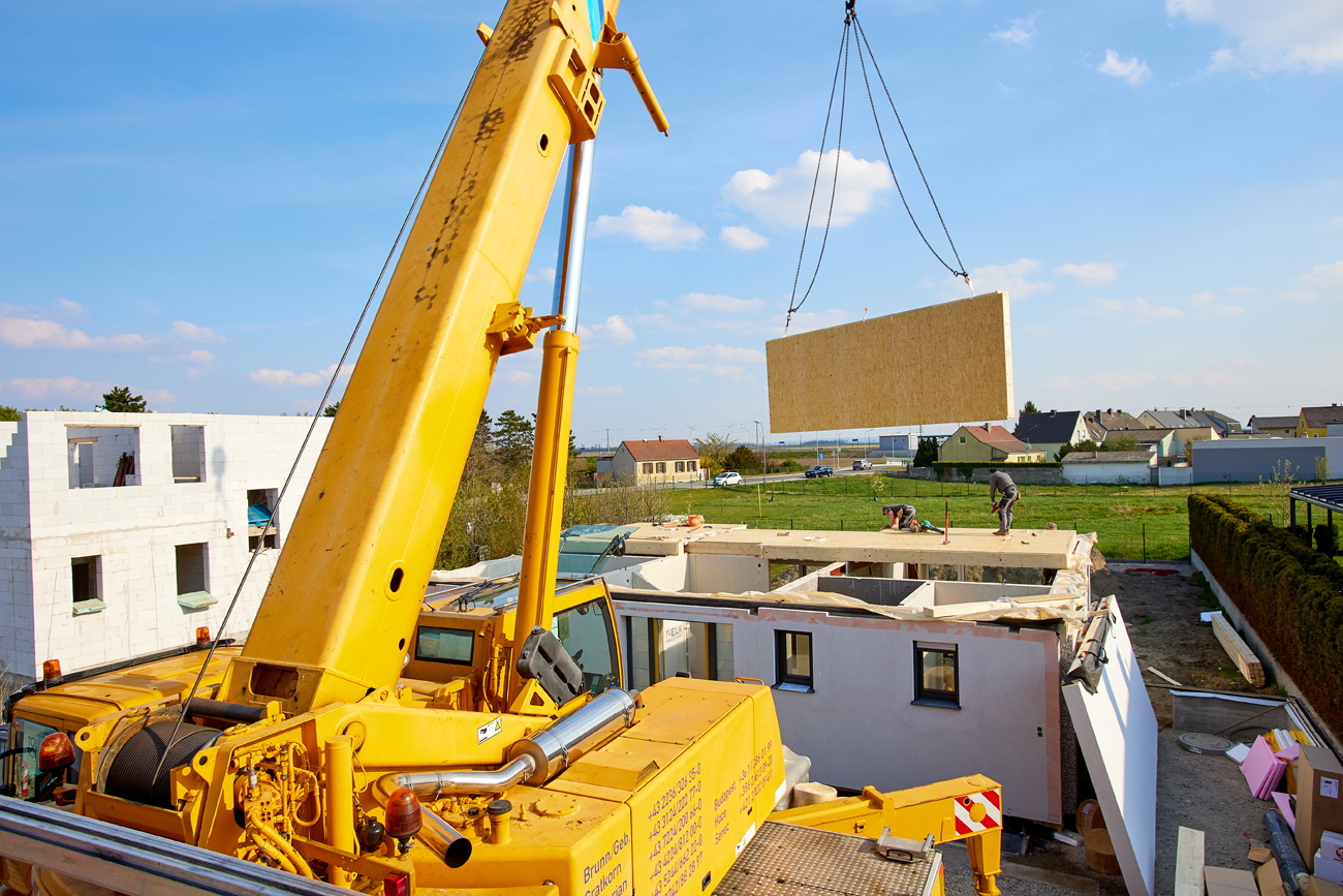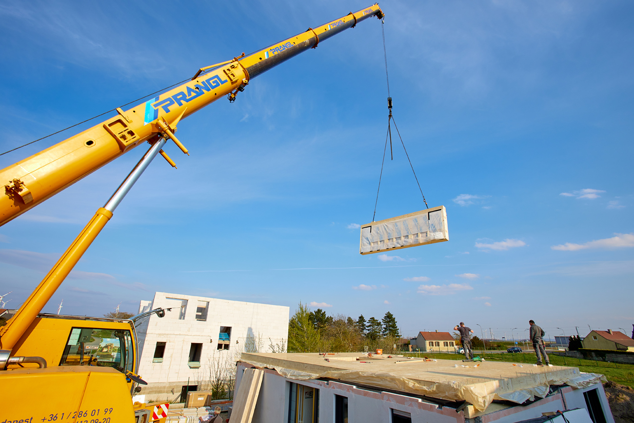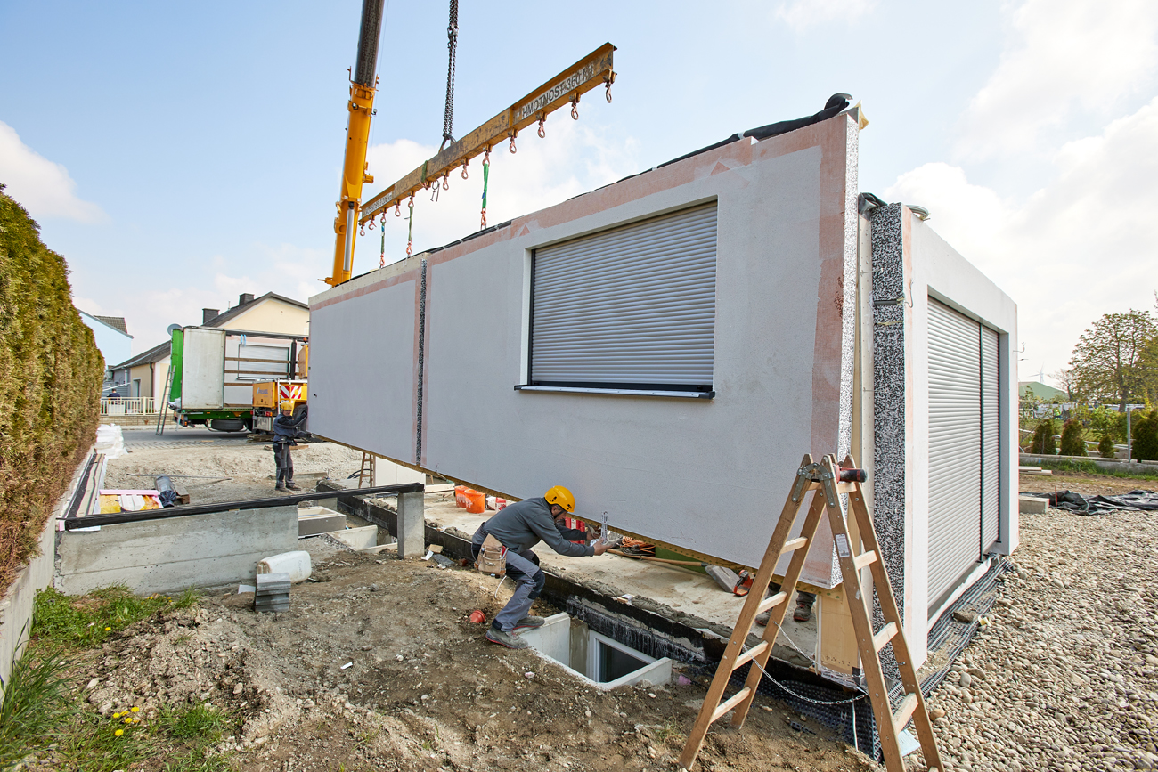 A darulezelő, az építésvezetés és a szerelők rendkívül jó együttműködésének köszönhetően a ház gyorsan és késedelem nélkül épült. A tető is óramű pontossággal került fel. Az egész folyamatban nagy szerepet játszott a Prangl szakembereinek nagy tapasztalata az előregyártott házak terén. Meggyőztük az ügyfelet nyugalmunkkal, áttekintőképességünkkel és a házrészek beállításának nagyfokú pontosságával. Becsületbeli ügy volt, hogy a menetrendet pontosan betartsák. Így az új otthon hamarosan készen áll a beköltözésre.