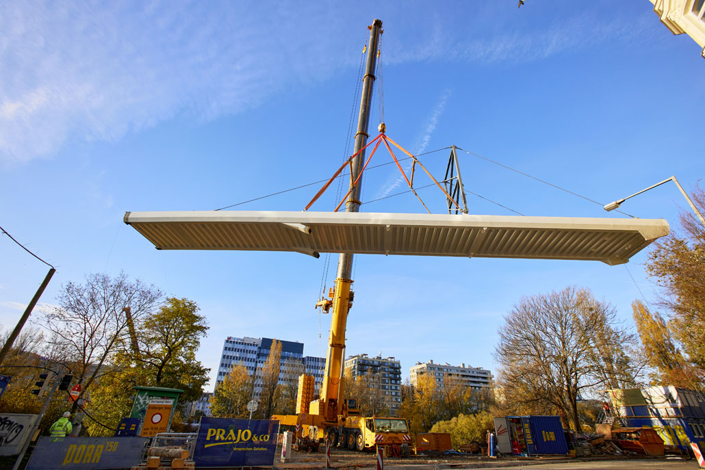Az új acélszerkezet beemelése