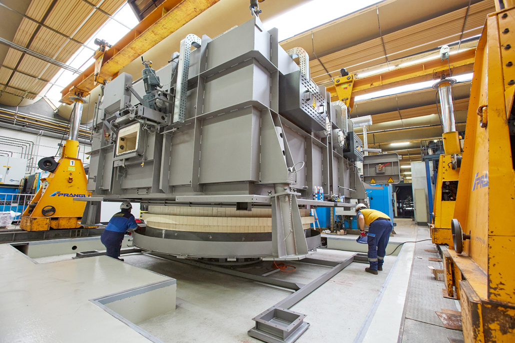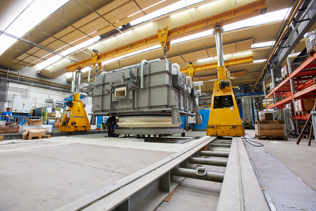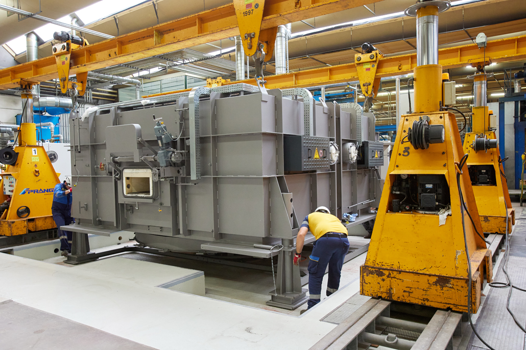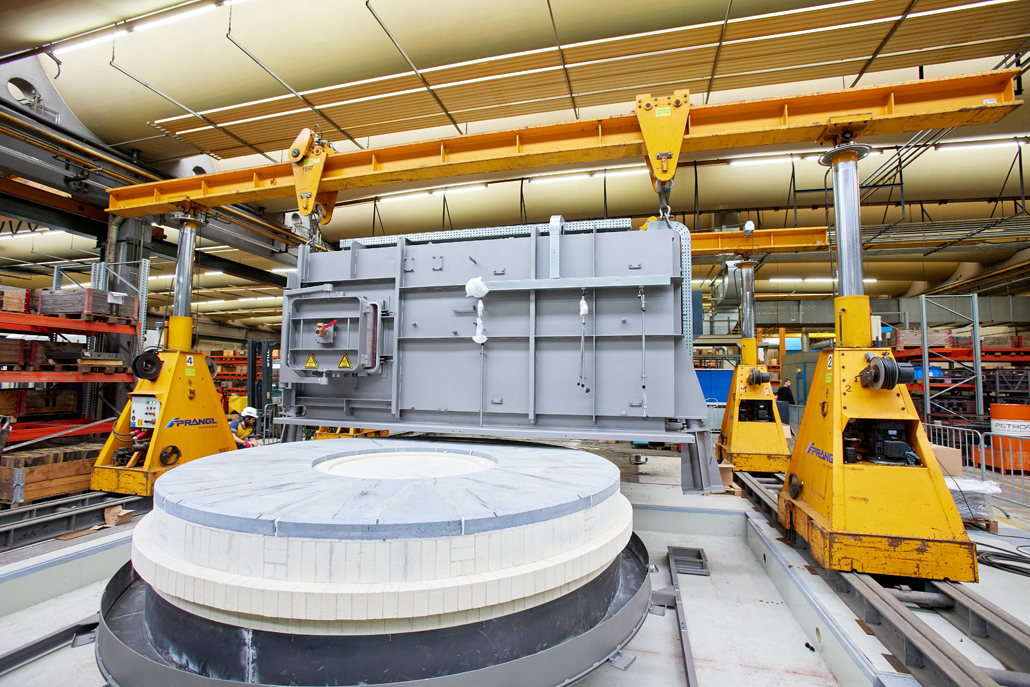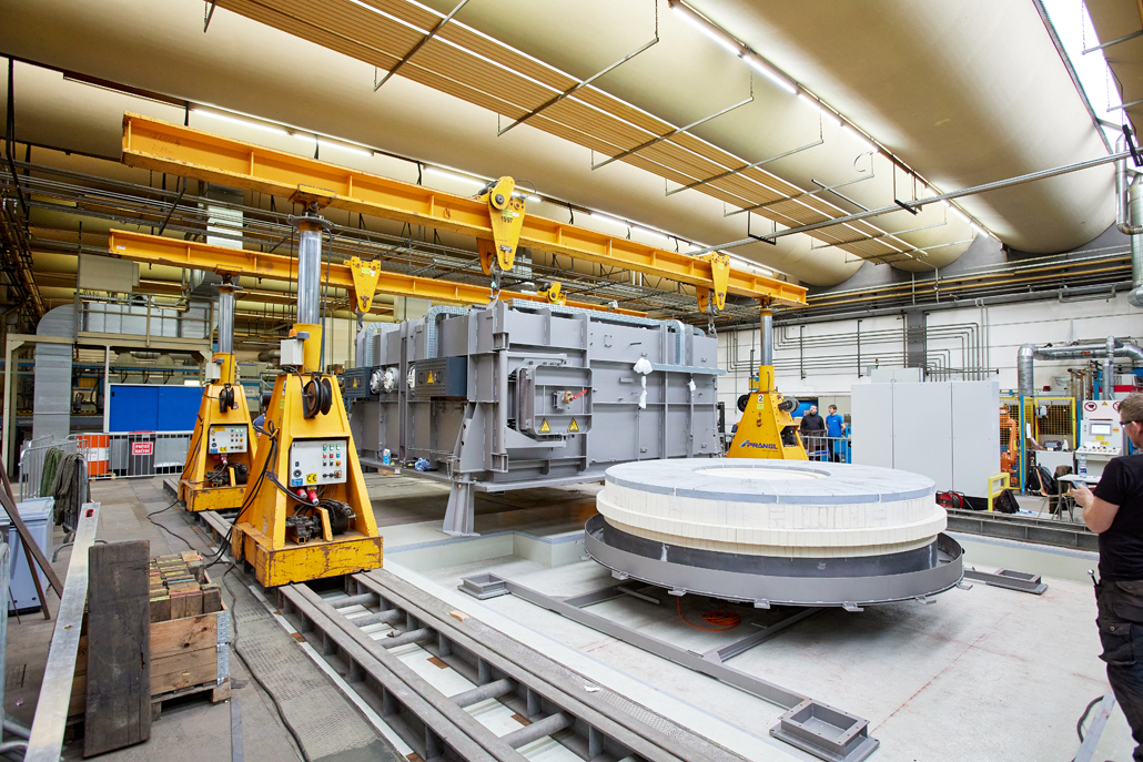A gyártócsarnok szűkössége miatt először bontási munkákra is szükség volt. Csak ezután kezdődhetett a tényleges munka. Az első lépést egy 70 tonnás teleszkópos daru hajtotta végre, amely a leszállított kemence elemeket lerakodta az alacsonypadlós szállítójárműről. Ezt követően egy 3,5 tonna teherbírású, 4,5 méteres maximális emelési magasságú targoncát, valamint nagy teherbírású görgőt használtak. Közösen az volt a feladatuk, hogy az egyes alkatrészeket behozzák a csarnokba és ott egy előre meghatározott összeszerelési helyen elhelyezzék.