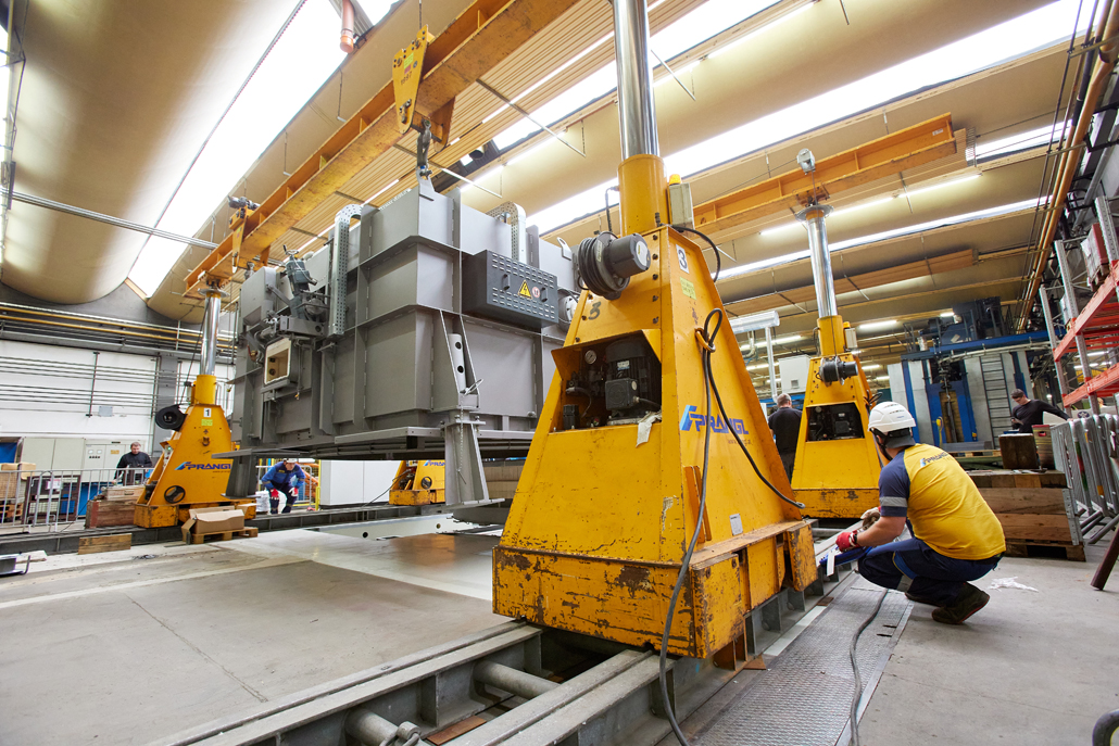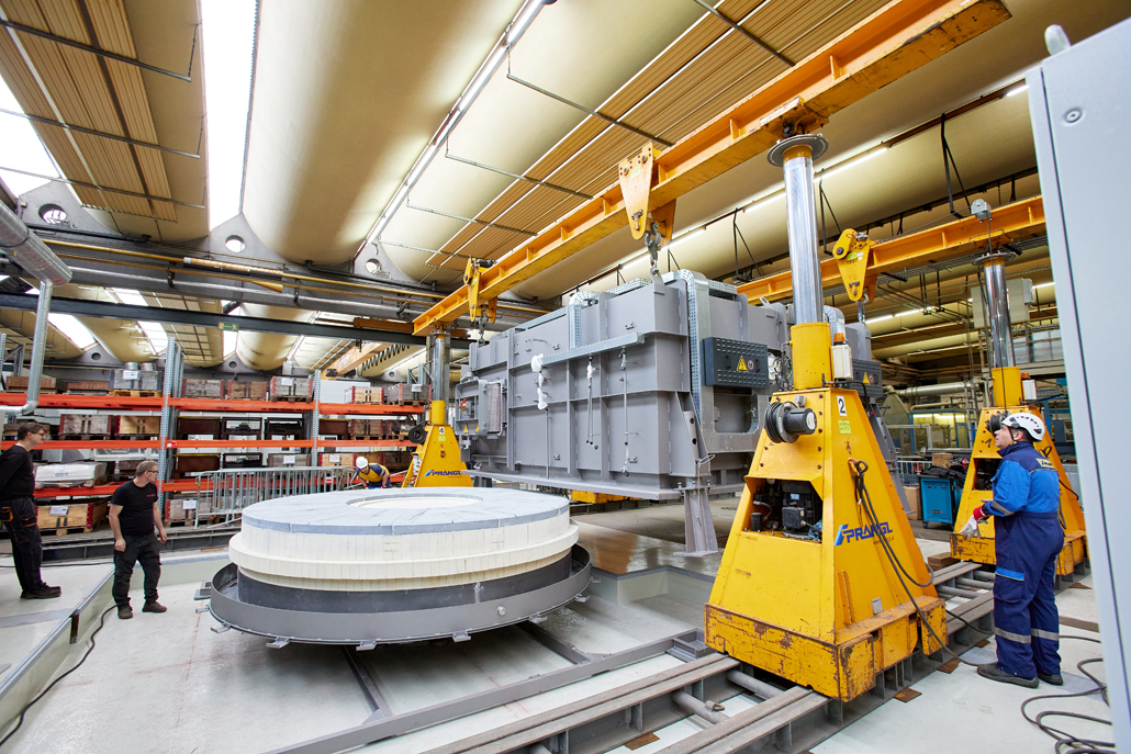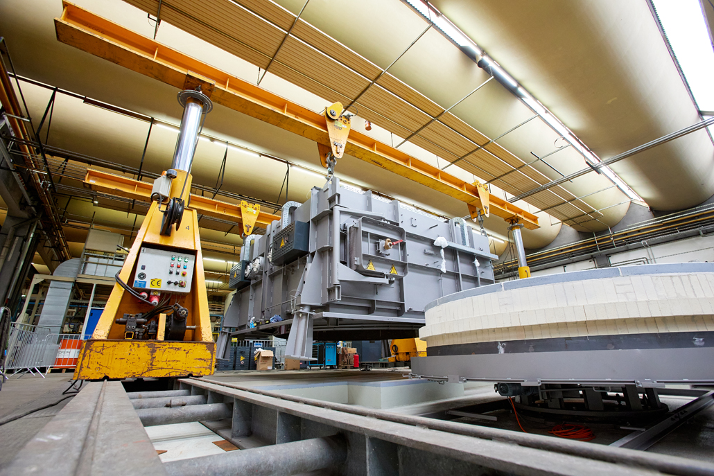 Helyhiány miatt a csarnokon belüli összeszereléshez és szállításhoz a megszokott módon nem lehetett mobildarut használni. Ezért a hidraulikus emelőportál tökéletes eszköz volt a forgókemencék helyére mozgatására. Az emelőportálok különböző méretekkel és emelőképességgel kombinálhatók az aktuális helyzetnek megfelelően. A több teleszkópos hidraulikus emelők, a sínrendszer, a tartó és a különböző rögzítési pontok segítségével pontosan pozícionálható a rakomány.