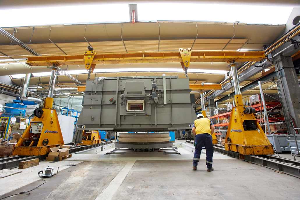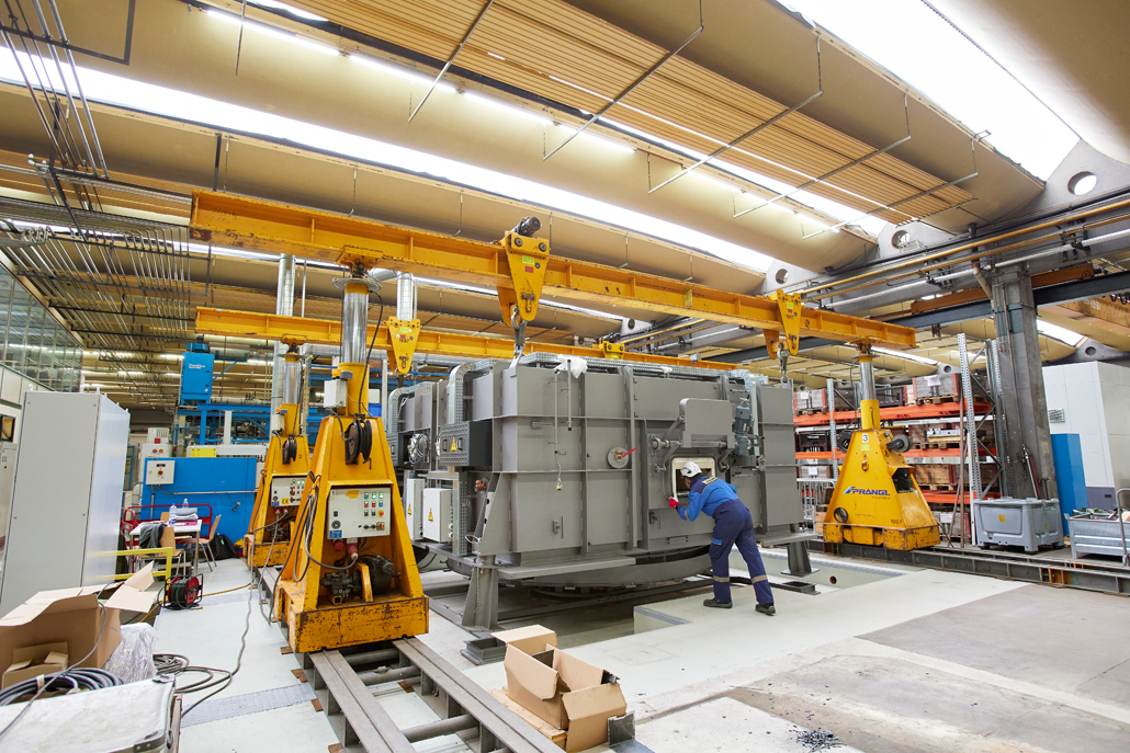 A Prangl csapat kényes feladata: egy 4,4 méter magas, 4,0 méter átmérőjű forgókemencét egy csarnokba kellett bevinni és ott parkolni, ahol a jövőben a 10 tonnás gépet használják majd. A kihívást az jelentette, hogy egy gyártórendszerrel felszerelt csarnokról van szó, és a rendelkezésre álló hely rendkívül korlátozott volt, és a folyamatban lévő műveleteket semmilyen körülmények között nem lehetett megzavarni.