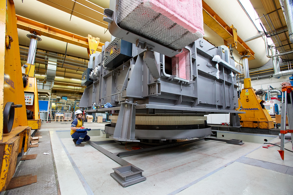 Az emelőtargonca segítségével a szerelési hely és a kemence végső helye közé épült fel az emelőportál. A teljesen összeszerelt forgókemencét az emelőportál felemelte, és „lebeghetett” a rendeltetési helyére. Ott helyezték el és szerelték össze milliméteres munkával. A munka sikeres befejezése után a hidraulikus emelőportált leszerelték és elszállították. A gondos előkészítésnek és a koncentrált munkának köszönhetően a Prangl csapata ismét egy kihívásokkal teli feladatot végzett az ügyfél teljes megelégedésére.