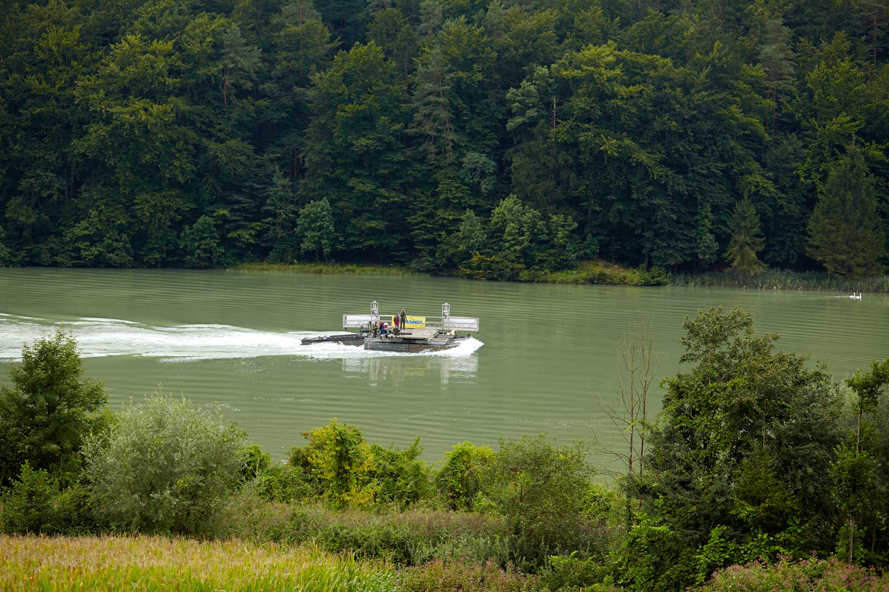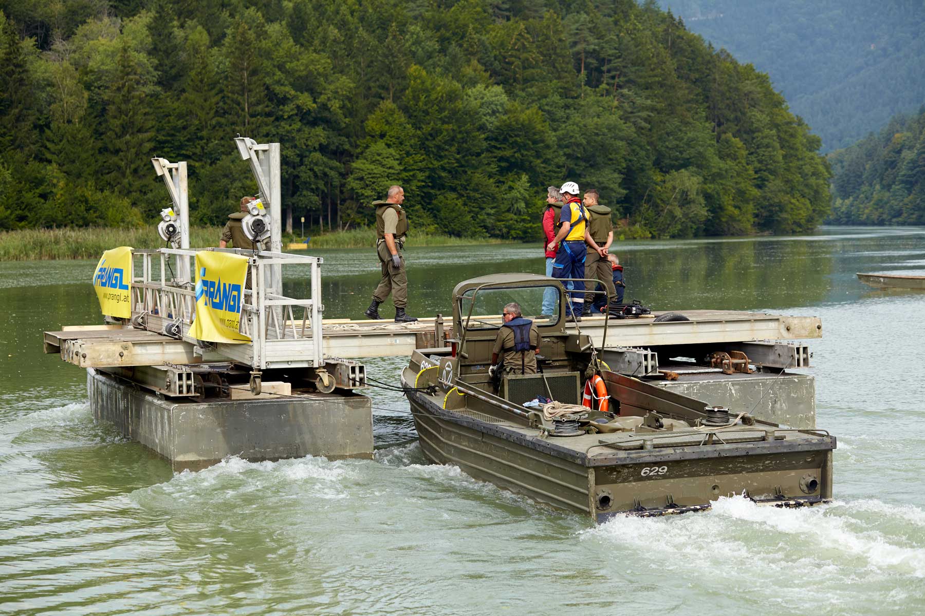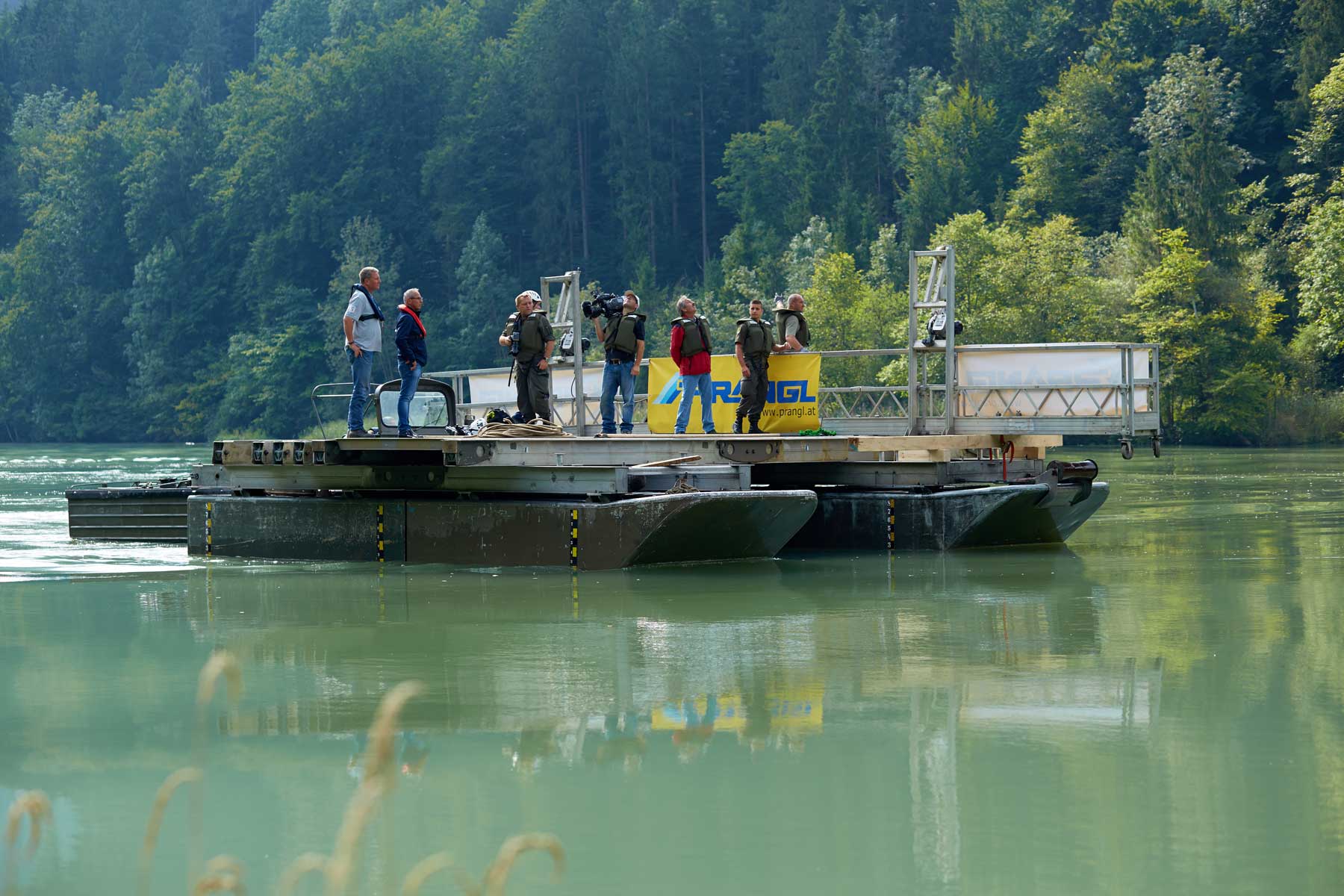 Az ÖBB csapatával közösen dolgoztunk ki egy koncepciót: A problémára négy 12 méter hosszú függő szerelőállvány használata jelentett gazdaságos megoldást. Ahhoz, hogy a Drávában álló hídpillérekhez egyáltalán be tudjunk jutni, az osztrák hadsereg segítségét vettük igénybe. A függő szerelőállványokat egy speciális nehézteher-hajóval szállítottuk a közeli schabecki erőműből a betonpillérekig, kb. 4 kilométeren keresztül folyón felfelé. Az odaszállításra más megoldás egyáltalán nem lett volna.