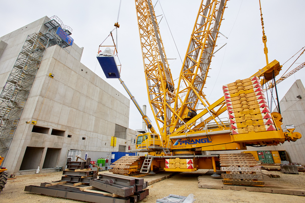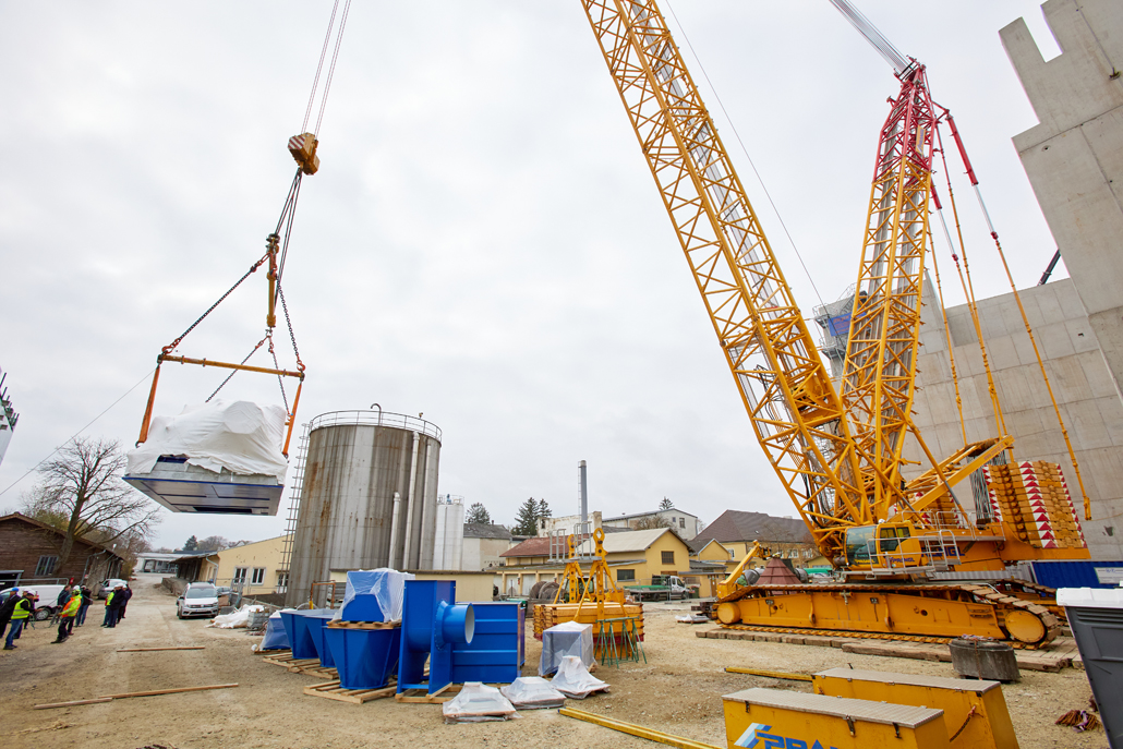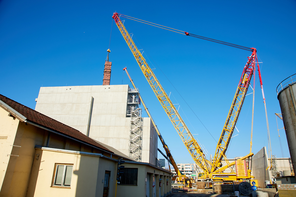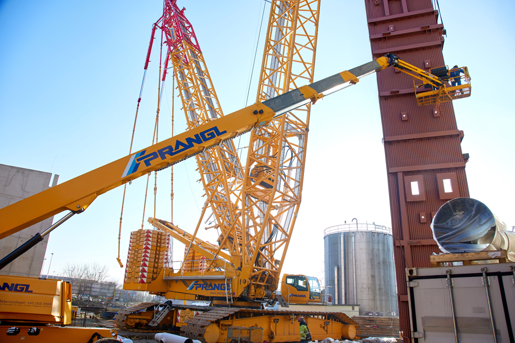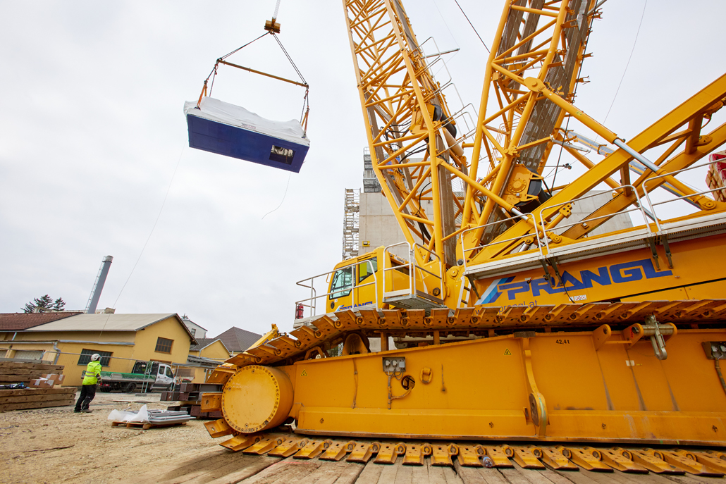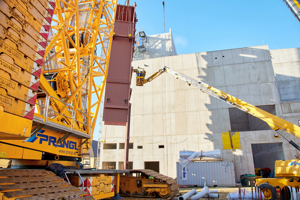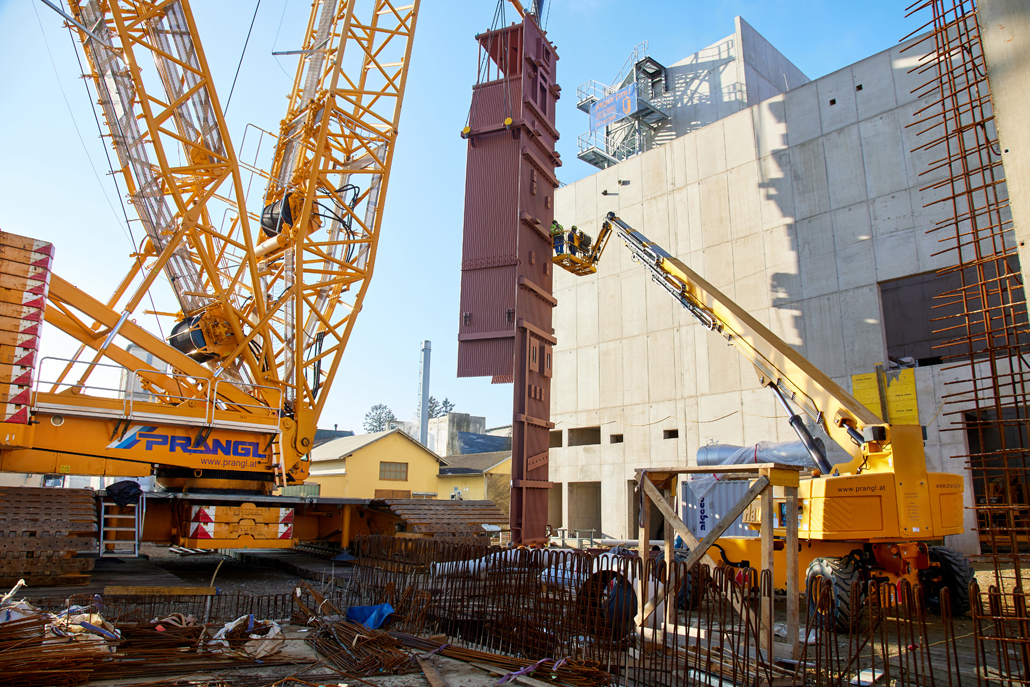 Hamarosan megszűnik az a mintegy 30 éves, földgázüzemű CHP erőmű, amely eddig St. Pöltenben a távfűtést biztosította. A naponta mintegy 1000 köbméter faaprítékkal „táplált” új biomassza fűtőművel a jövőben fenntartható természetes hővel lehet ellátni a távhőhálózatot. A kapcsolt erőmű egyes részeinek hatékony és biztonságos elhelyezése érdekében figyelembe kellett venni a korlátozottan rendelkezésre álló helyet, valamint az emelőgépekkel szemben támasztott speciális teherbírási-, kinyúlási- és horogmagasság igényt.