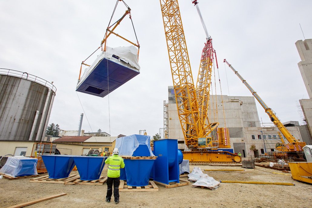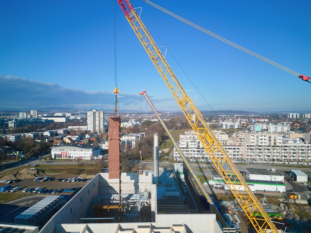 Ez a munka ismét a legnagyobb precizitást követelte meg. Az alkatrészek „pontos elhelyezése” érdekében a tapasztalt Prangl csapat vette át az irányítók szerepét. A felemelendő alkatrészek függedsztését is a Prangl szakemberei végezték el, ez ugyanis az alkatrészek aszimmetrikus súlypontja miatt nem volt olyan egyszerű. A nehéz feladat ellenére minden rendben ment. Az új biomassza kapcsolt erőmű 2026 januárjától 15.000 háztartás számára termel majd zöldáramot és 30.000 háztartás számára hőt és évente körülbelül 25.000 tonna CO2-t takarítanak meg.