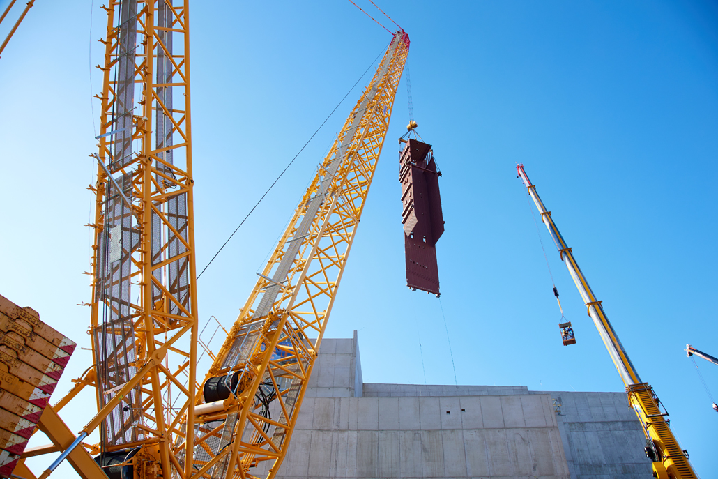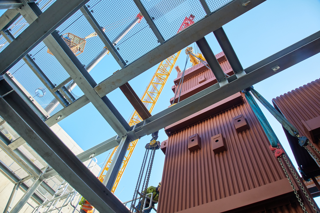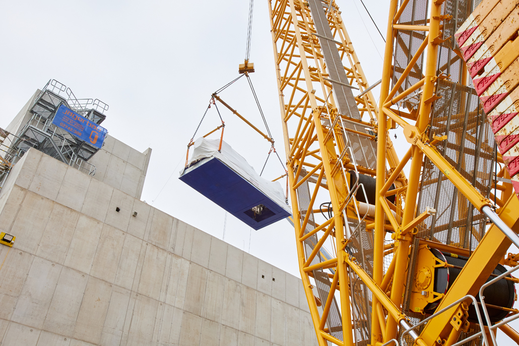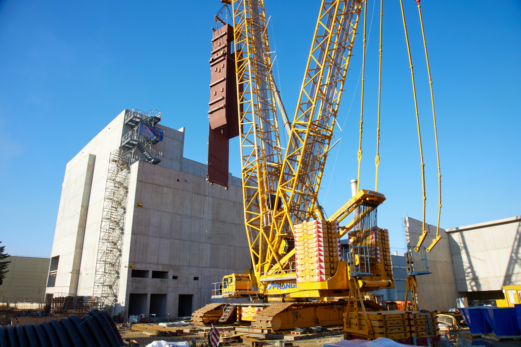A munka az alkatrészeket szállító teherautók kirakodásával kezdődött. Egy 88 tonnaméteres, lánctalpas alvázas mobiltoronydaru volt felelős az acél alkatrészek manipulálásáért a nagy emelések előkészítése során. Egy 250 tonnás teleszkópgémes daru, egy teleszkópos rakodó, egy teleszkópos munkaállvány és egy speciális munkaállvány is segítette az előkészítési munkát. Az építkezésen egy 650 tonnás lánctalpas darut kellett pontosan elhelyezni a nehéz emeléshez. Segítségével kezdetben 22 tonnás, úgynevezett hamu tárolókat emeltek ki. Ezt követte – sok néző jelenlétében – a 45 tonnás gőzturbina.