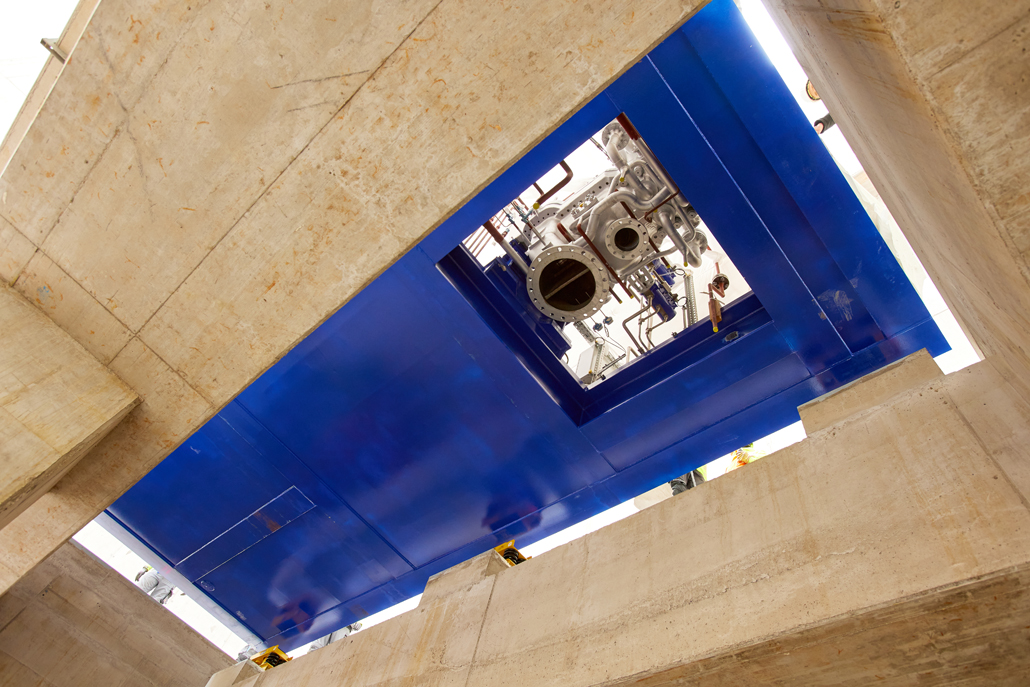 A 28 méteres homlokzatmagasság leküzdése érdekében a turbinát 50 méter hatótávolságú és 60 méter horogmagasságú szerelékkel szerelt lánctalpas daru segítségével emelték be. A nagy terhet óvatosan, centiméteres pontossággal engedték le a helyére a turbinatér falai közé. Később összesen nyolc, egyenként 22 tonnás "Ekos" következett. Az új rendszer szíve a kazán, amelyet ezután szereltek be. A kazánfalak többemeléssel kerültek a helyükre, a legnehezebb 55 tonnát nyomott. Az elkészült kazán összesen 70 tonnát nyom, 23 méter hosszú, 4,5 méter széles és 3,5 méter magas.