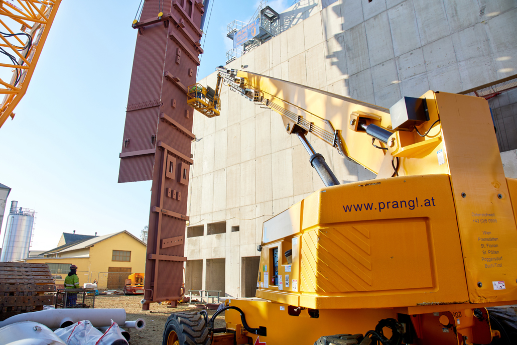 A környezetbarát energia arányának növelése érdekében St. Pölten távhőhálózatában a város az EVN-nel közösen úgy döntött, hogy a város keleti részén korszerű biomassza kapcsolt energiatermelő erőművet építenek. A Pranglt az érzékeny emelési munkával bízták meg, és egy megfelelő koncepciót dolgoztak ki, amely magában foglalta a pontos folyamatforgatókönyveket és az optimális gépválasztást.