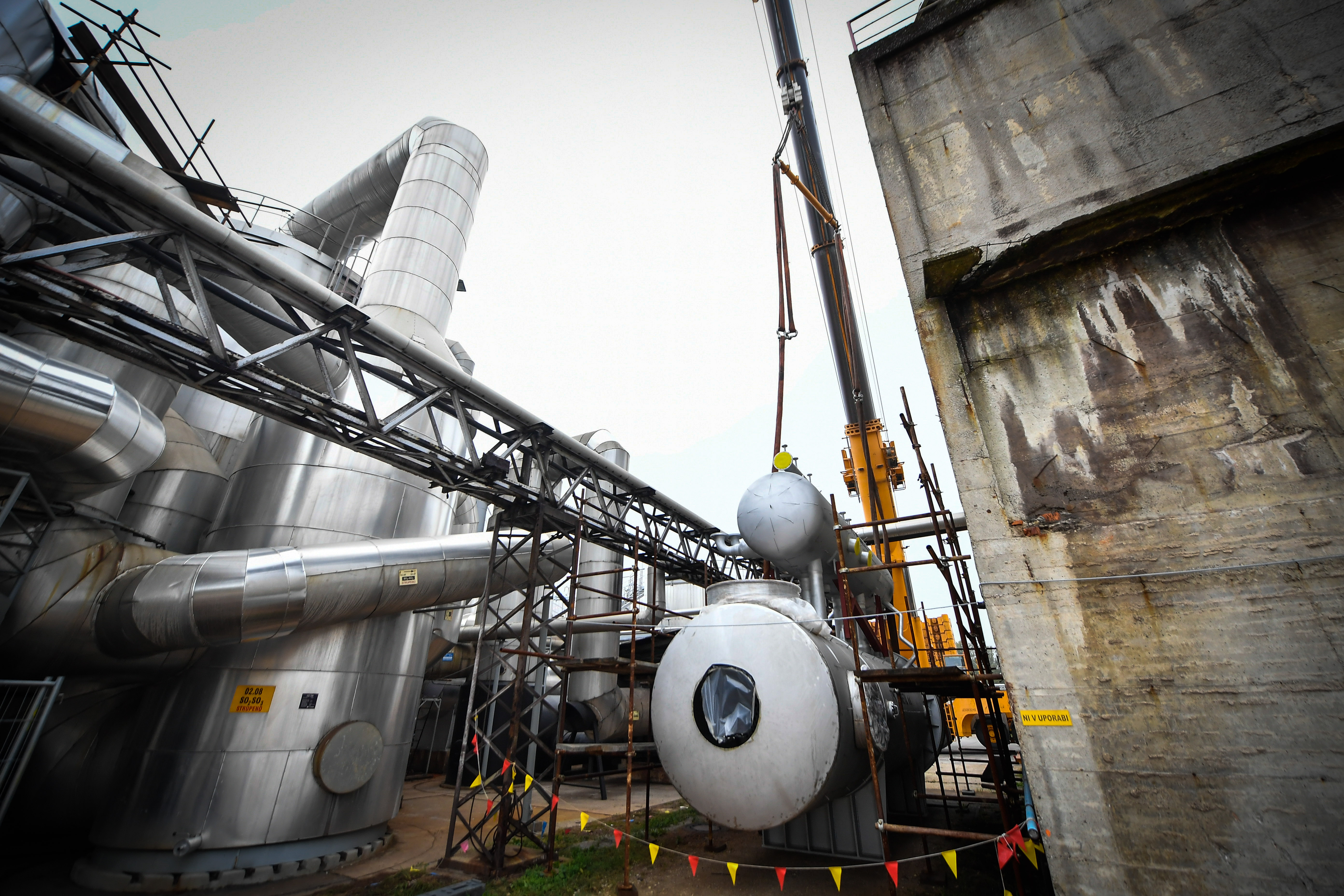 A legnehezebb emelés a 42 tonnás gőzkazán volt, beleértve a gőzdobot is. Elengedhetetlen volt a súlypont és a megfelelő függesztékek előzetes meghatározása. 26 méter oldalkinyúlással a 9 méter hosszú és 6,5 méter magas kazánt végül egy Ausztriából származó 500 tonnás teleszkópos mobildaruval kellett felemelni. A nemzetközi Prangl csapat tökéletesen működött együtt.