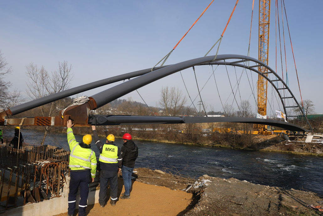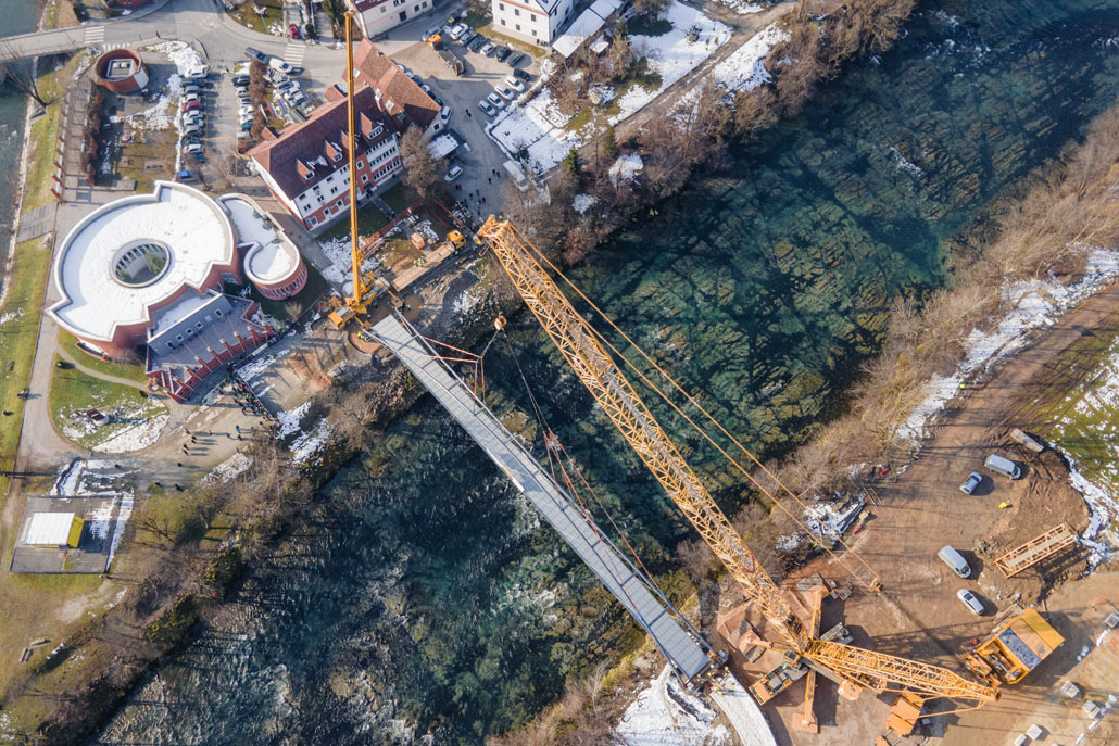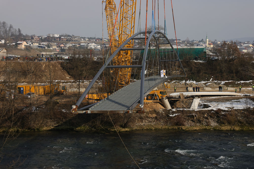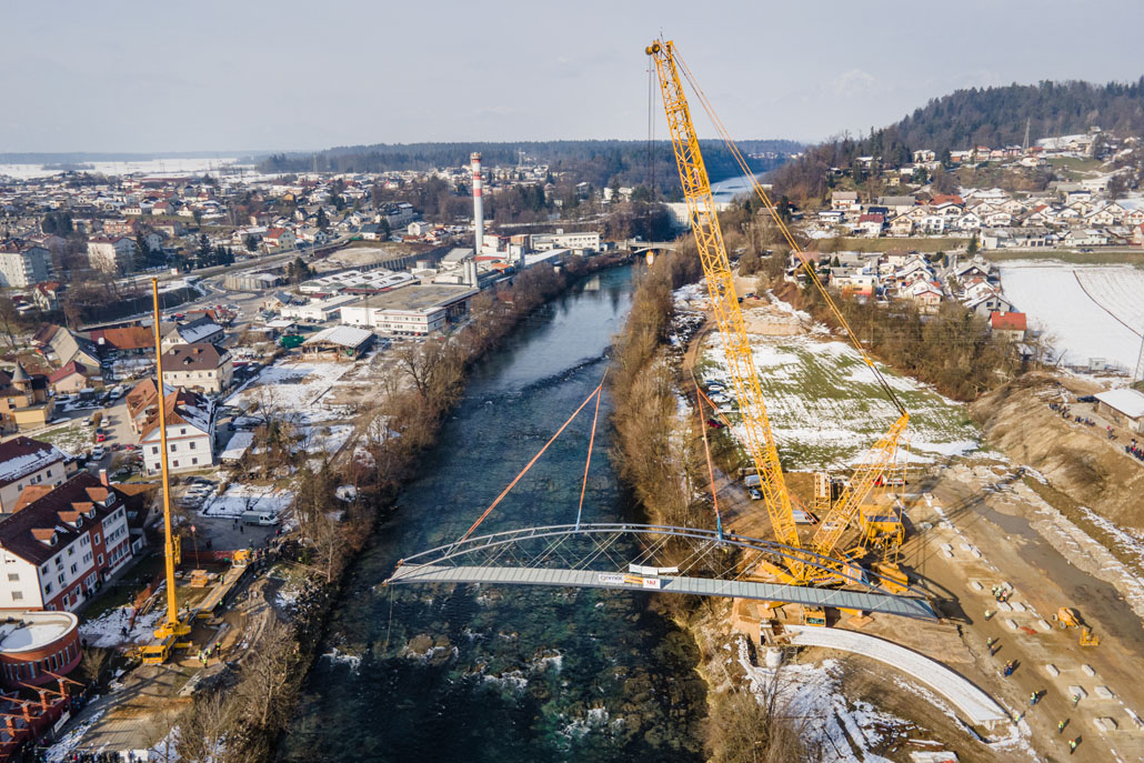 Az új kerékpárút Szlovéniában nagyobb biztonságot nyújt. Végre befejeződött Medvode önkormányzatának 2,2 millió eurós, az Európai Regionális Fejlesztési Alap támogatásával megvalósuló projektje: A Sore és a Száva találkozásánál a sárga szakemberek egy kerékpáros és gyaloghíd beemelését végezték el a Száva folyó fölé.