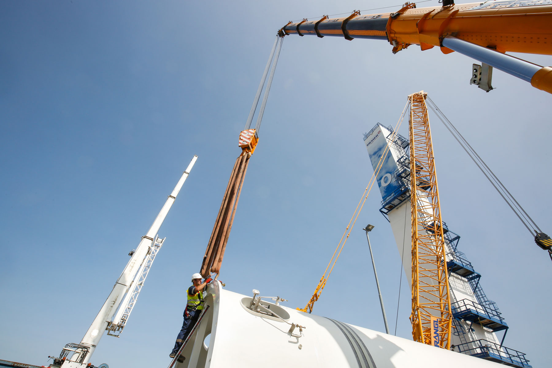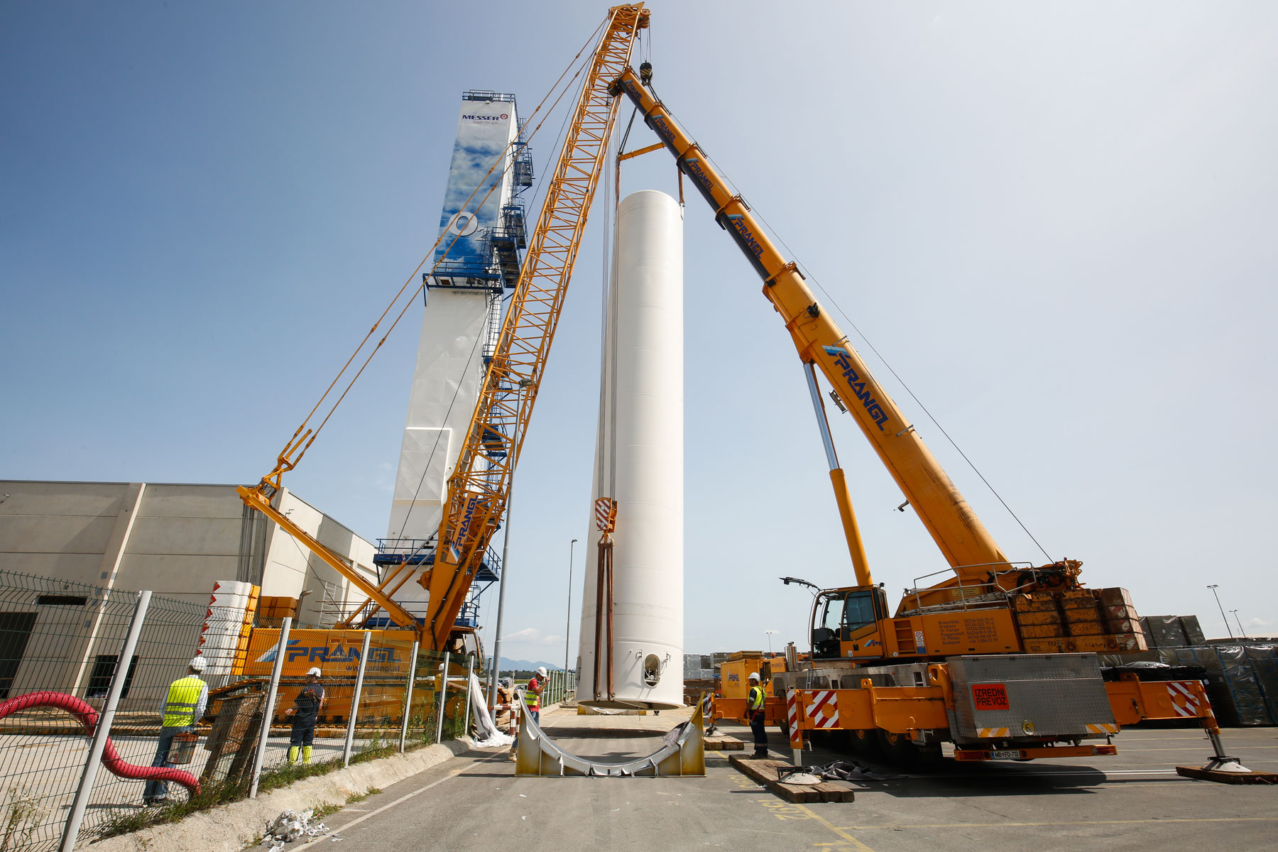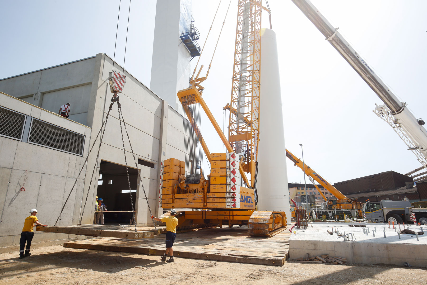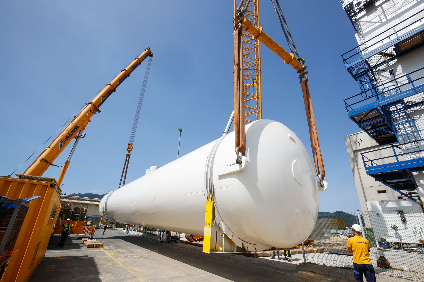 A feladat a különösen szűk helyviszonyok miatt jelentett kihívást. Az első tartályt például felemelt és függőlegesen felállított állapotban kellett 60 méteren keresztül szállítani, mielőtt le lehetett volna rakni, hogy végleges helyére beszereljék. A feladatot egy 280 tonnás lánctalpas daru, egy 200 és egy 100 tonnás teleszkópos daru, valamint az előkészítő munkákhoz használt teleszkópos targoncák végezték el. Csak egy ilyen kategóriájú lánctalpas daru volt az egyetlen elérhető megoldás, amely képes volt a teherrel haladni is.
