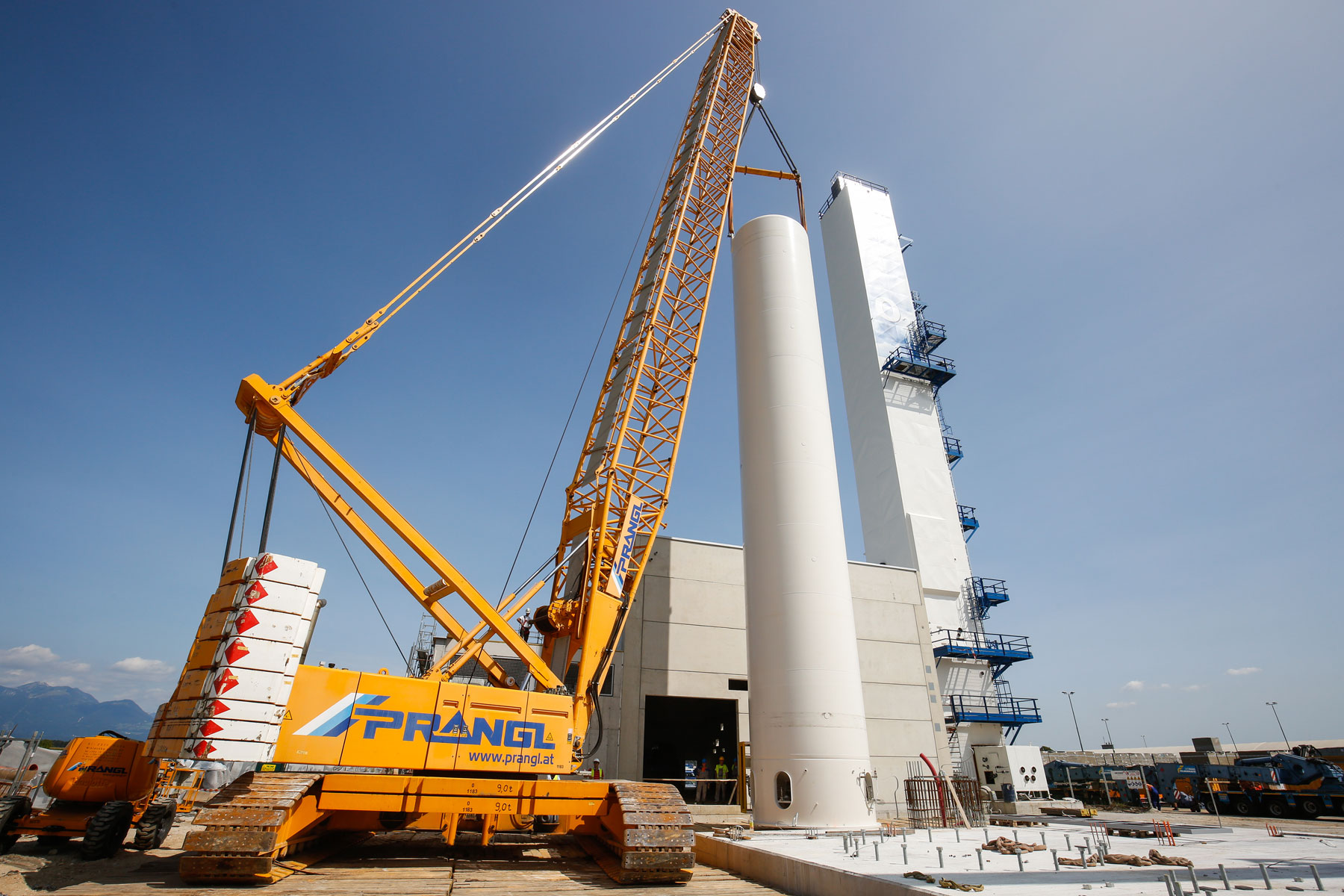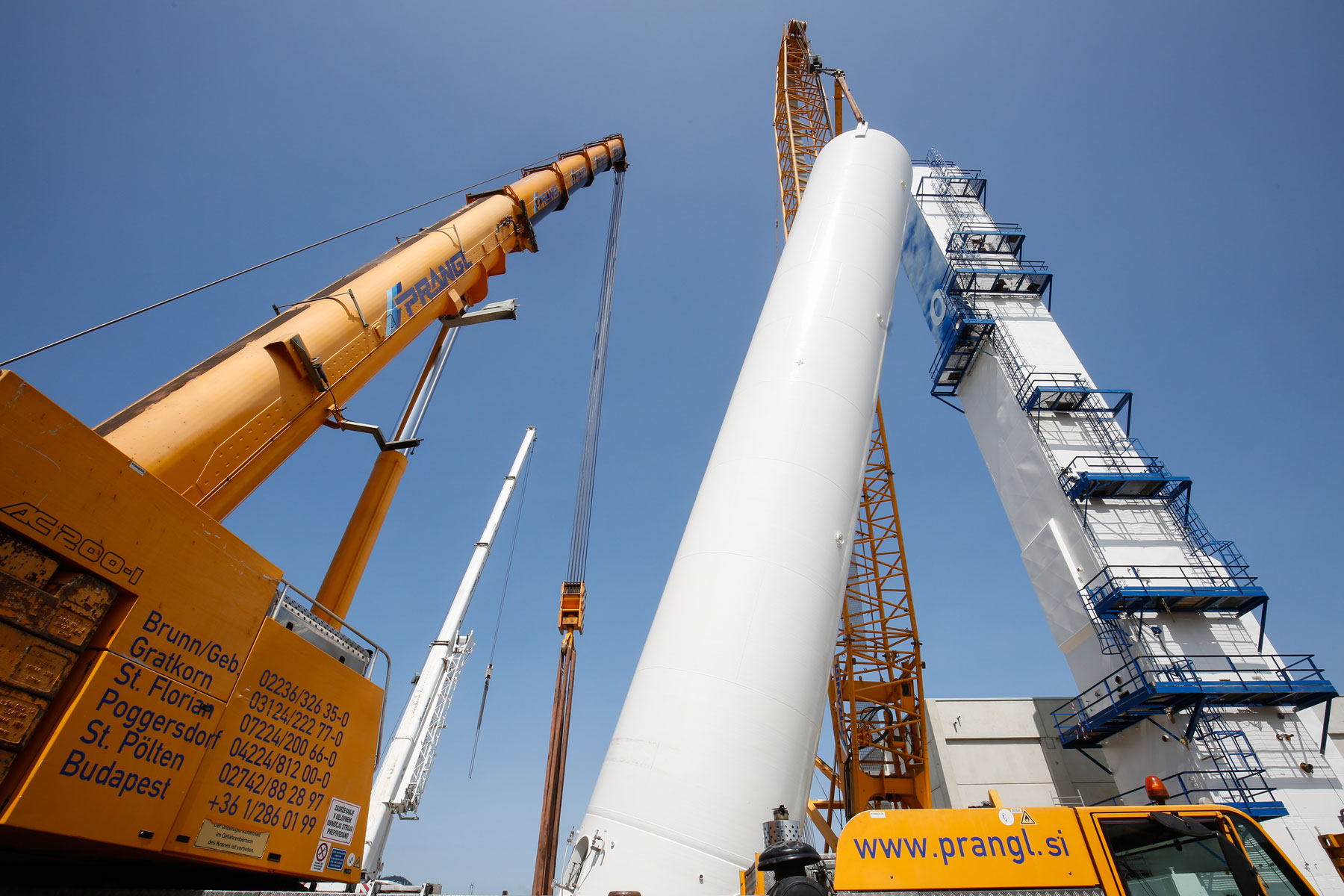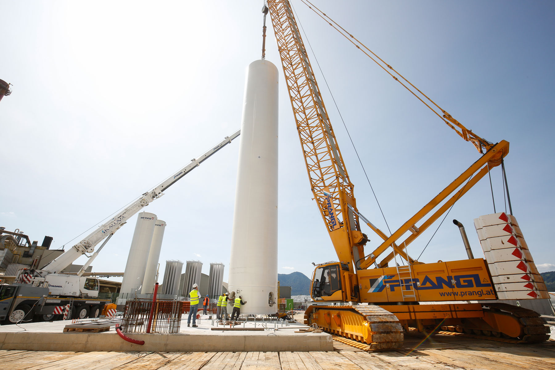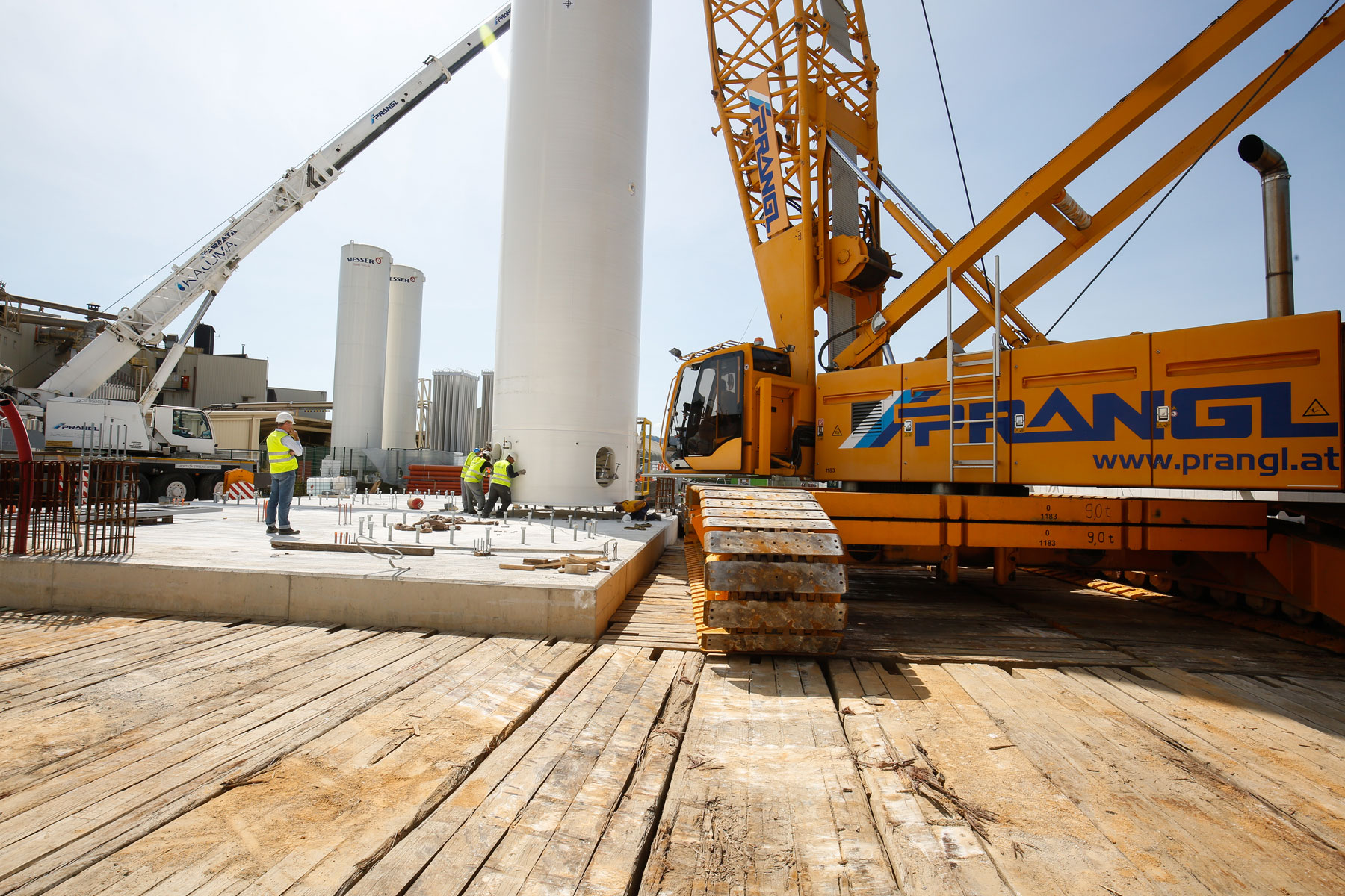 A rendelkezésre álló igen szűk hely miatt jó előre gondosan meg kellett tervezni, hogy melyik darut hol tudják felállítani. Végül az is fontos volt, hogy semmilyen más munkafolyamatot vagy tevékenységet ne zavarjunk meg velük. Ráadásul az ügyfél igen szoros menetrendet határozott meg, és azt mindenáron be kellett tartani. A teljes Prangl csapat jó előkésztő munkájának köszönhetően mindhárom tartály időben a helyére került. A Prangl Szlovénia és a Prangl Ausztria közötti határokon átnyúló, tökéletes együttműködés megmutatta továbbá, hogy a „sárga” minőségre országtól függetlenül mindig lehet számítani.