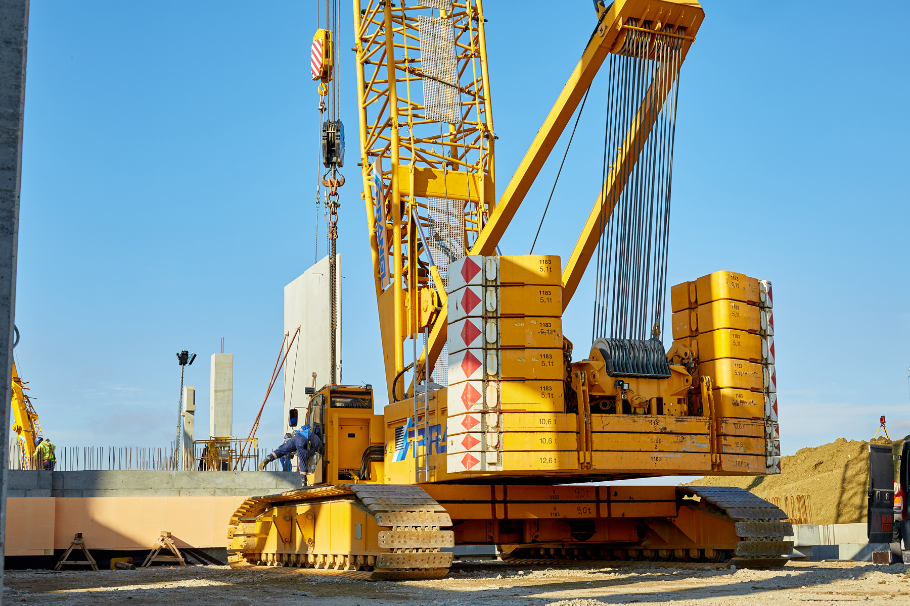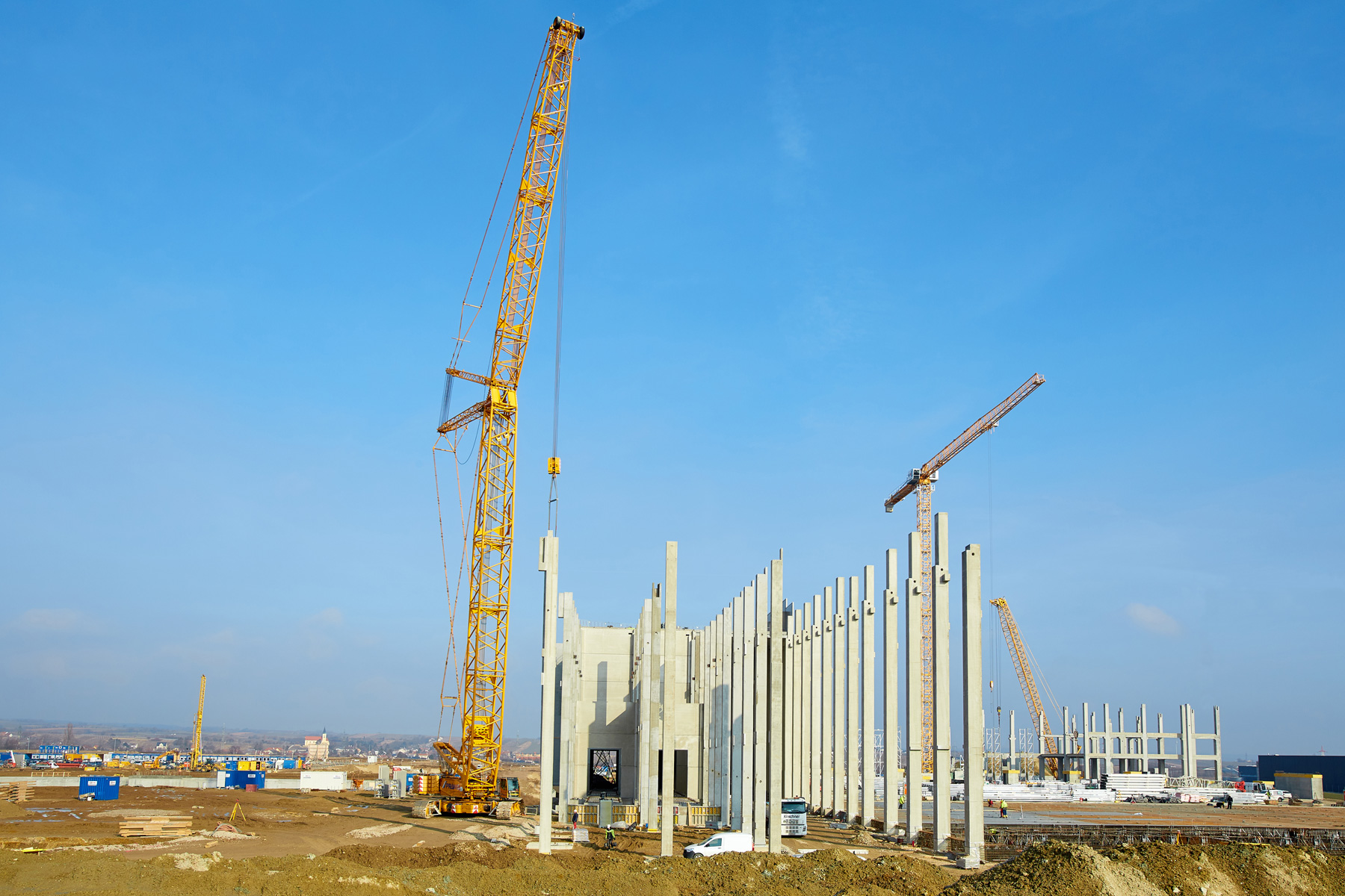 Két és fél éves rekordidőn belül tervezik az átadást. Mindez nem sikerülhet tapasztalt cégek szaktudása nélkül. Egyik ilyen cég a Prangl, amely teleszkópos és lánctalpas darukat fog biztosítani. 100, 120, 250 és 300 tonna teherbírású teleszkópos darukat használtak a zsaluelemek és a könnyű, előregyártott betonelemek emelésére. Az akár 24 méteres, 54 tonnát is meghaladó előregyártott elemeket (oszlopokat, kazettás mennyezeteket, tartógerendákat) egy 280 és egy 400 tonnás lánctalpas daru emelte a helyükre.