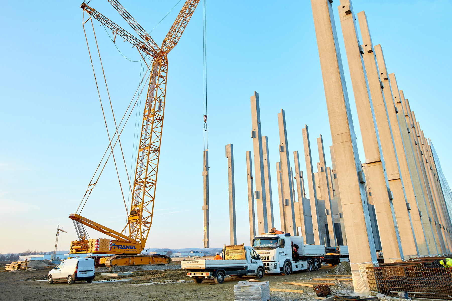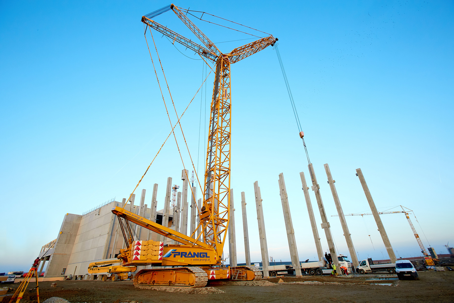 Ahhoz, hogy a szoros határidőre minden elkészüljön, a helyszínen összehangolt munkára van szükség, azonban mindezt alaposan meg is kell tervezni. Mivel a Prangl szakemberei már kezdettől fogva részt vettek az összeszerelésben és az építési területen zajló tervezésben, ahol daruzási szakértelmüket kamatoztathatták, így minden rendben lezajlott.
