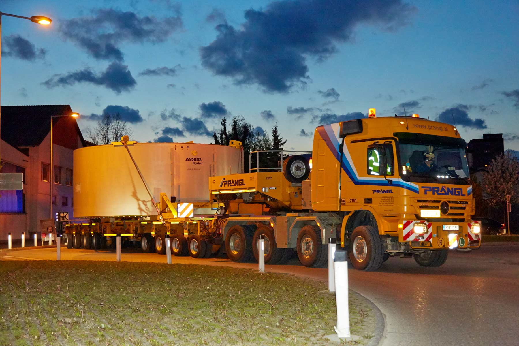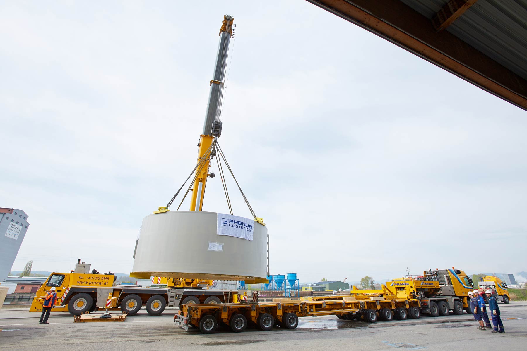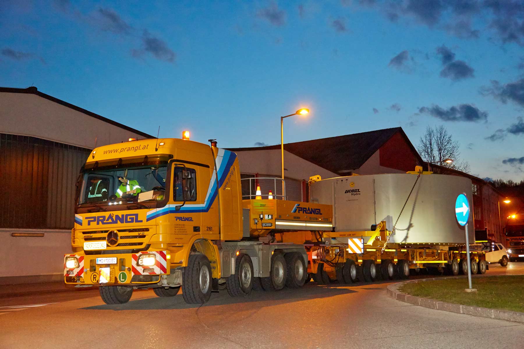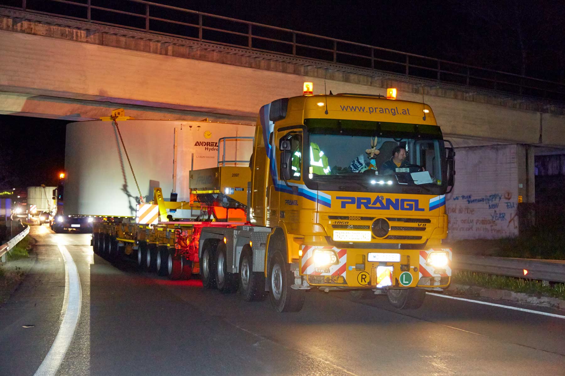 A két hatalmas berendezésrészt Weiz város területéről a kremsi kikötőbe kellett szállítani. A szállítójármű és rakomány monumentális 27 méteres hosszúságával, 6,80 méteres szélességével, 4,50 méteres magasságával, valamint 132 tonnás összsúlyával nem csak sok nézelődőt vonzott, hanem a Prangl szakembereinek is érdekes kihívást jelentett.