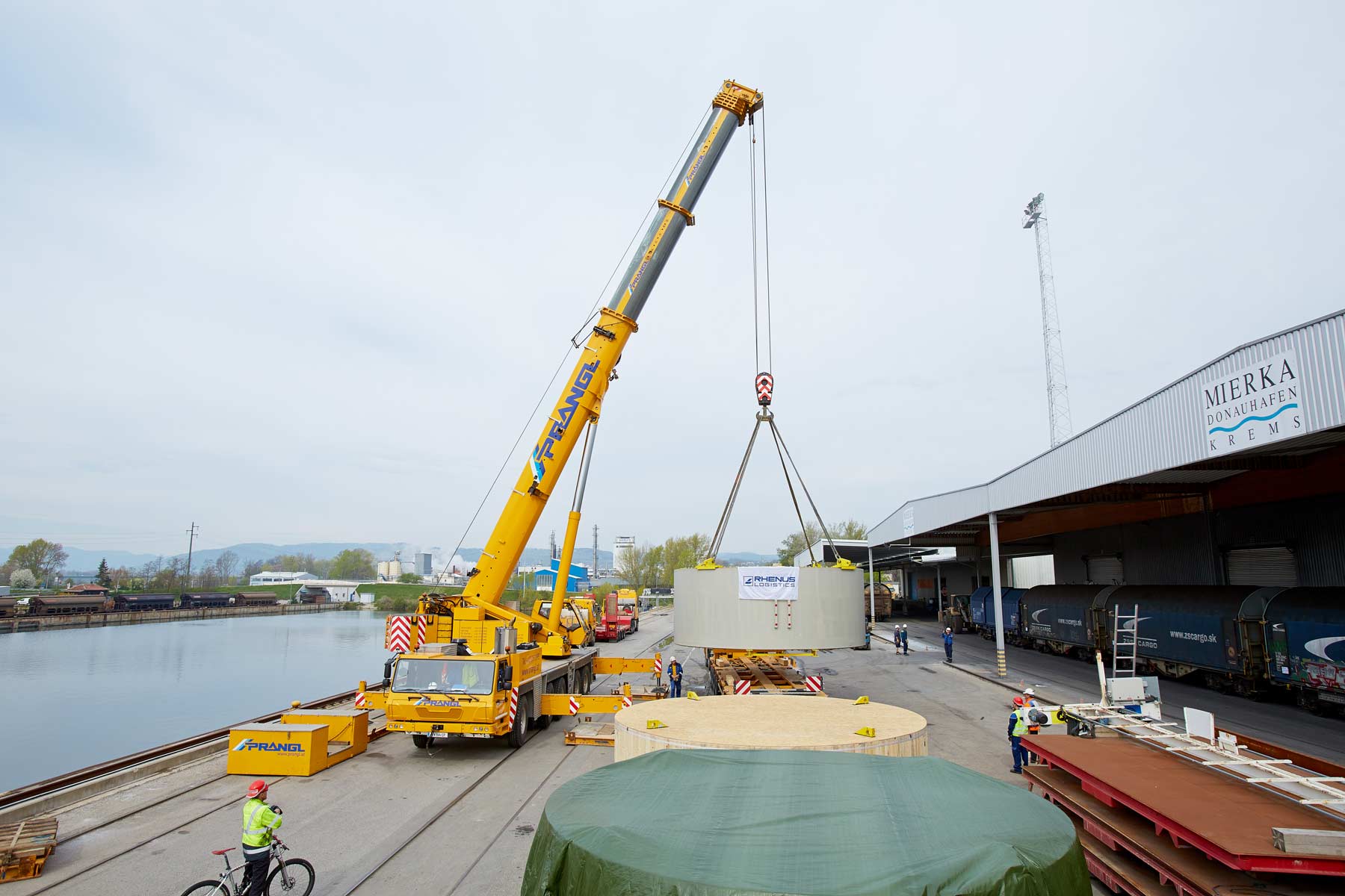 A két berendezést ezután uszállyal szállították a kremsi kikötőből az északi-tengeri kikötőbe. A Prangl csapatát nagy örömmel tölti el, hogy mindkét különleges szállítás és az azt követő daruzás is sikeresen zárult a megrendelő maximális megelégedésére. Partneri és megbízható szolgáltatóként a Prangl ismét sikert könyvelhetett el, és hozzájárulhatott egy teljes logisztikai lánc sikeres lebonyolításához.