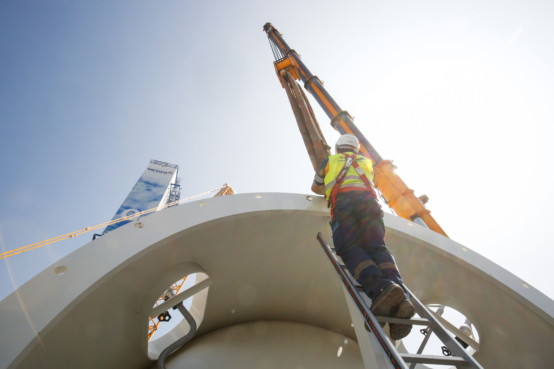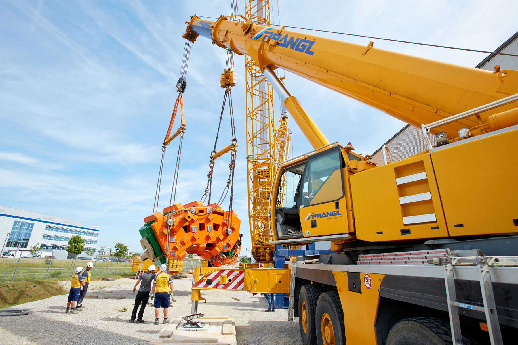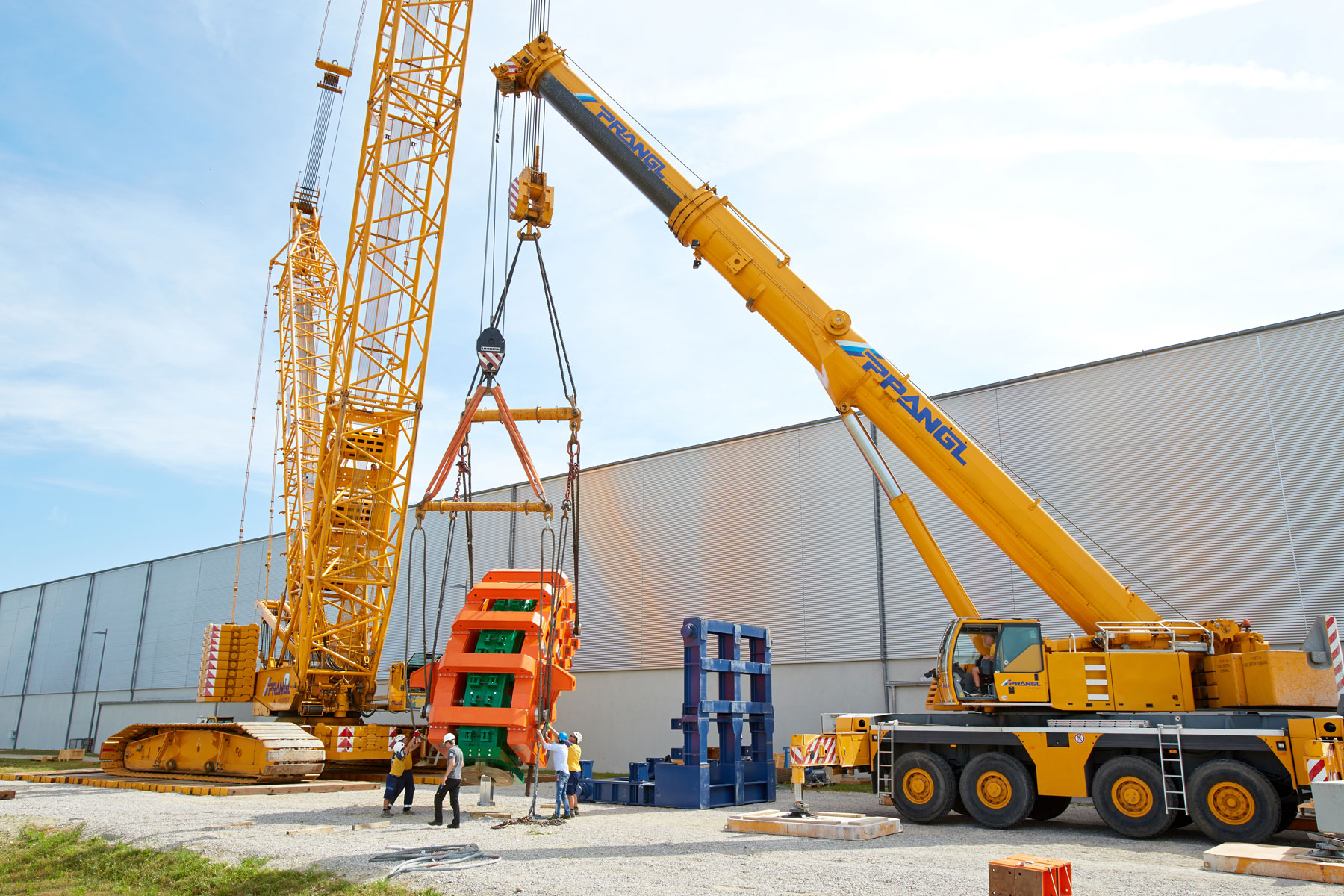 Annak érdekében, hogy az egyenként 120 tonnás egységeket szakszerűen mozgatni tudják, egy 600 tonnás lánctalpas darut kellett bevetni. A mágnest egy külön erre a célra kialakított fali tartóra helyezték és 90°-ban elfordították. A nehéz emelés és a forgatási manőver után a mágnest egy 250 tonnás teleszkópos daru segítségével szétszedték. A legnehezebb alkatrészek így már csak 54 tonnásak lettek.