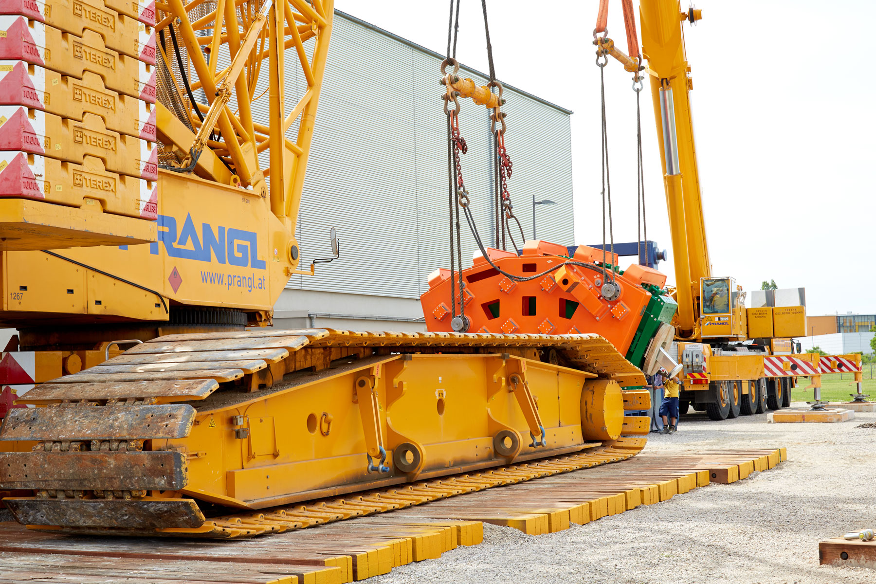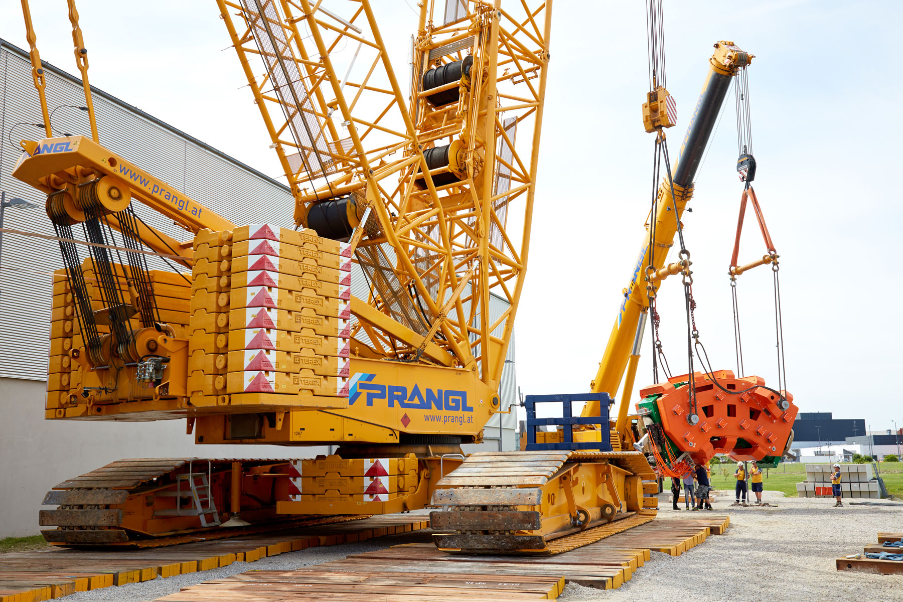 600 tonnás lánctalpas daru, 250 tonnás teleszkópos daru