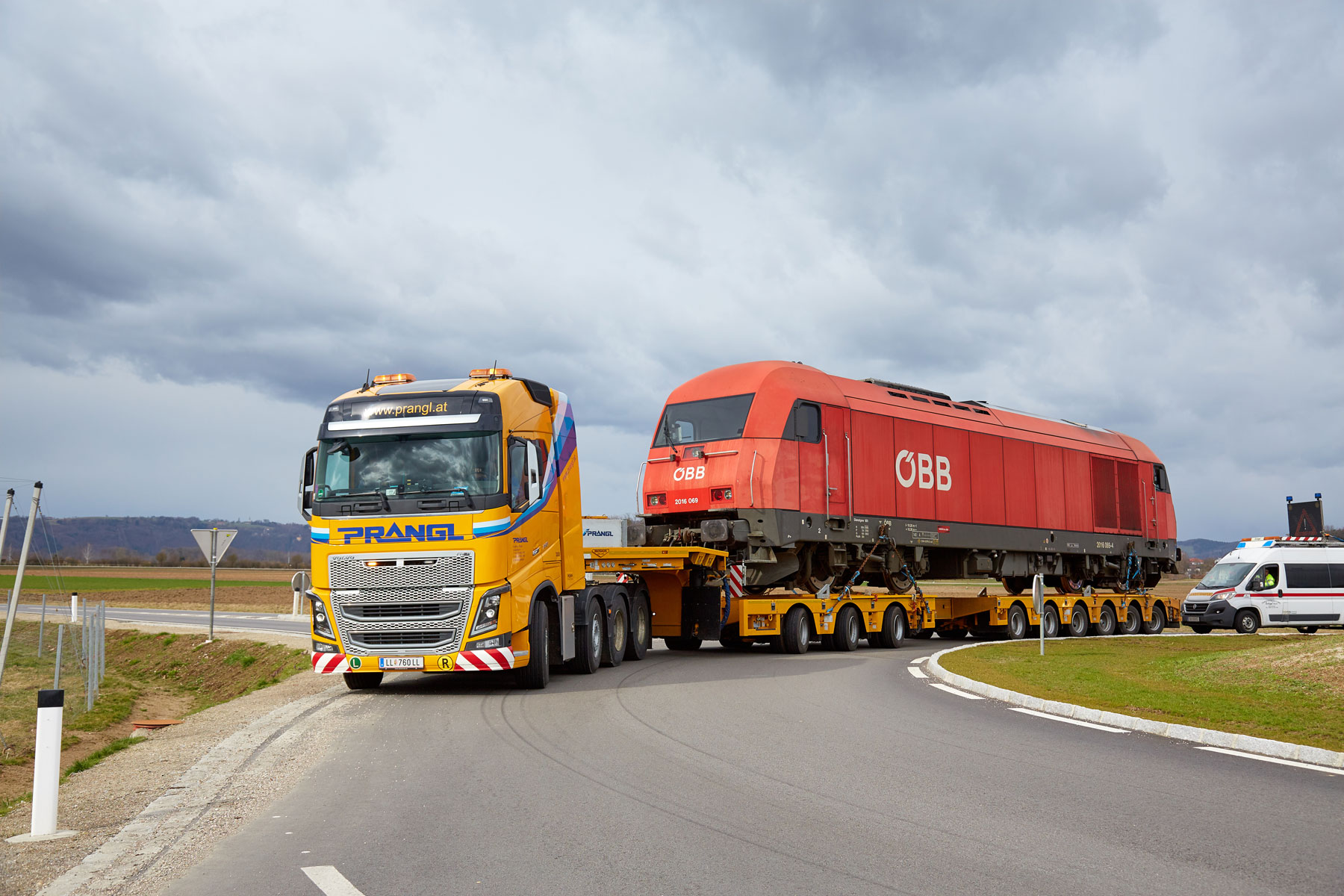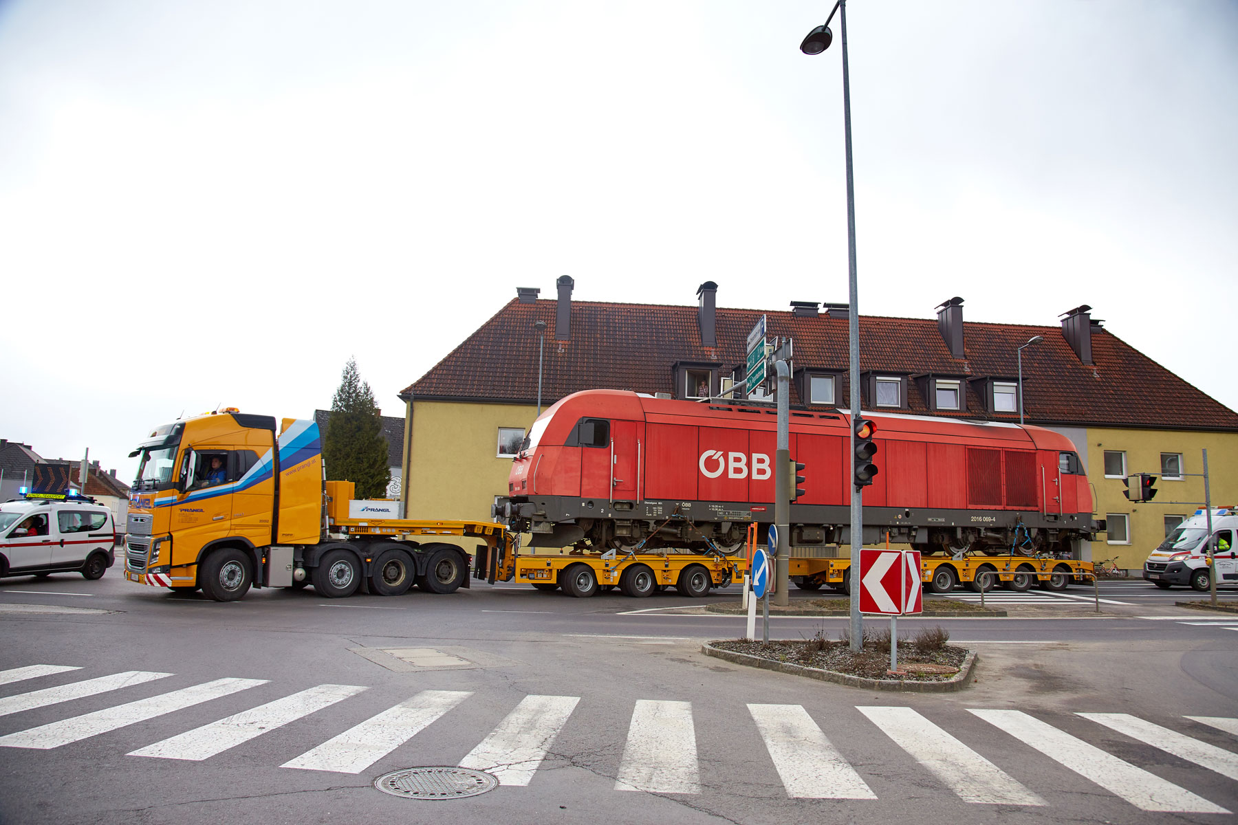 A linzi vasúti híd lebontása és ennek következtében a Mühlkreisbahnba vezető, hiányzó vasútvonal miatt közúton kellett egy 80 tonnás mozdonyt szállítani, amelyre az ottensheimi pályaudvaron vontatómozdonyként volt szükség az ÖBB mérőkocsijának vontatásához. Ez a feladat testhezálló volt a Prangl számára, amely a vasúti járművek szállításának specialistája.