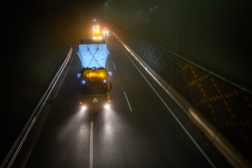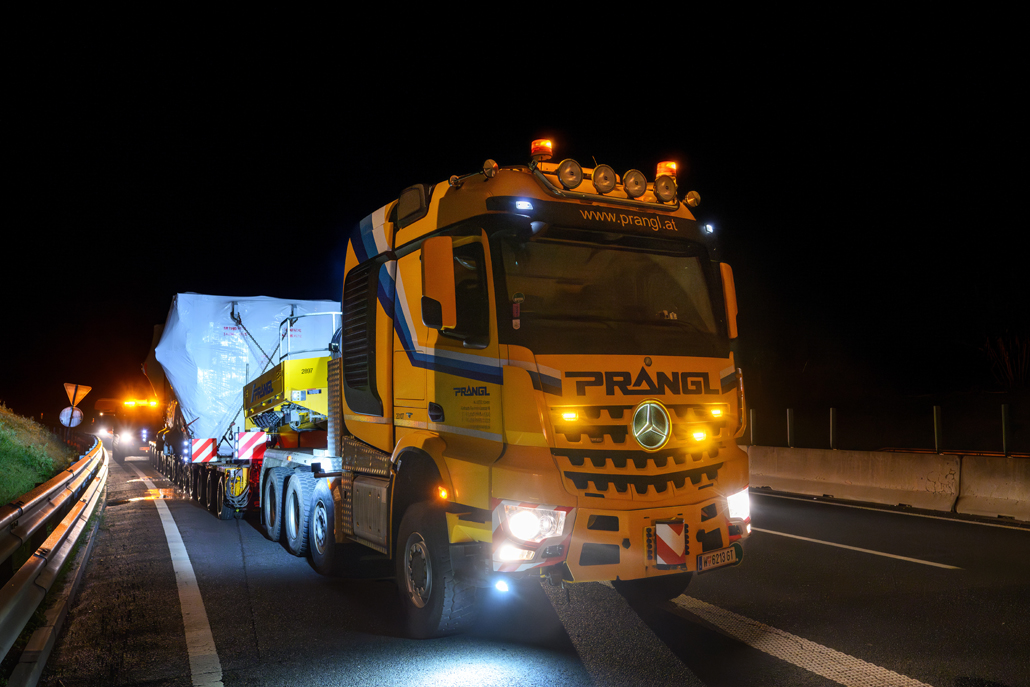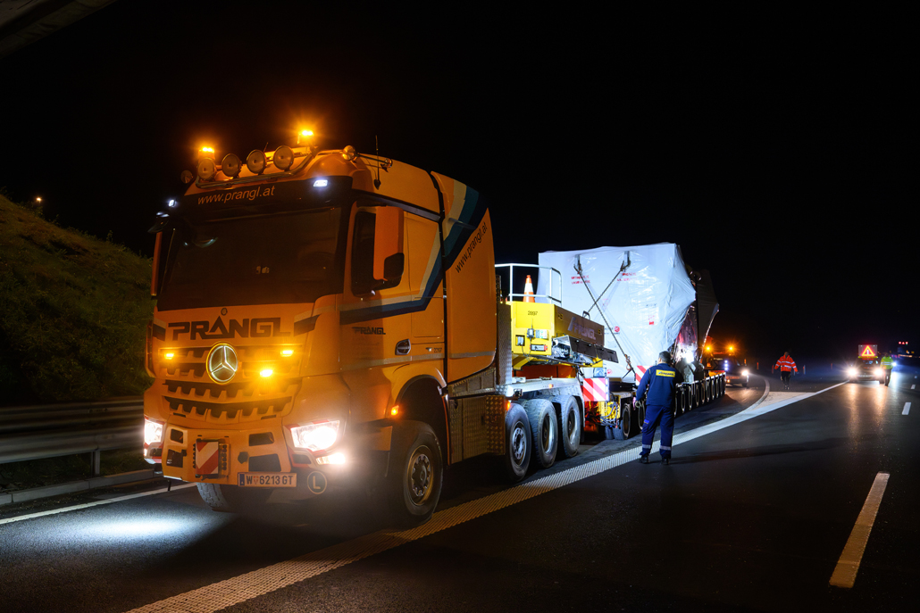 Az alapos előzetes felkészülés biztosította, hogy a szállítás a nehéz körülmények ellenére is különösebb incidens nélkül zajlott le. Ez annak ellenére történt, hogy az útvonalon a magassághatár 4,62 méter volt, míg a legmagasabb nagy teherbírású szerelvény pedig 4,60 méter magas volt. De a két centiméteres magasságkülönbség elég volt ennek az akadálynak a leküzdéséhez – persze nagyon óvatosan. Minden érintett kiváóan együttműködött, és minden alkatrész időben és sértetlenül érkezett meg a Brežice-i úticélhoz.