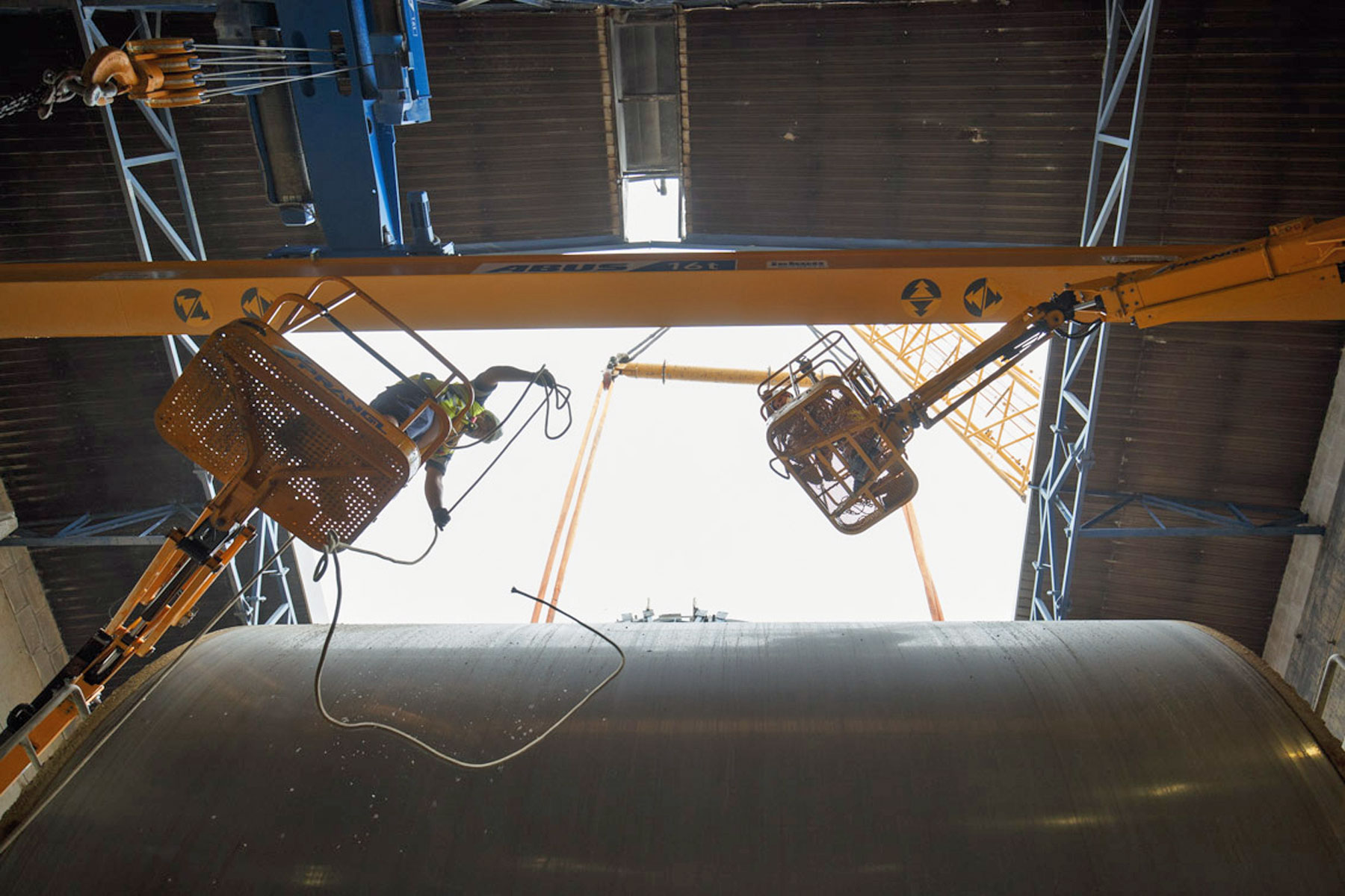 A 600 tonnás árbócos kialakítású, rácsos gémszerkezetű daru bevetésen
