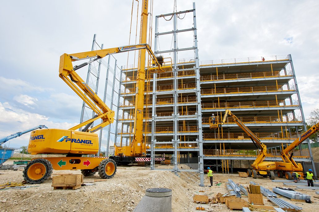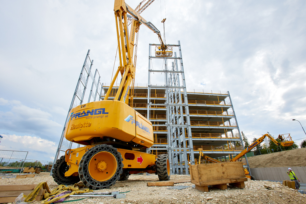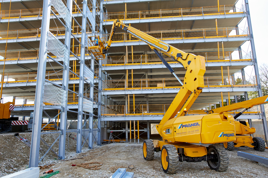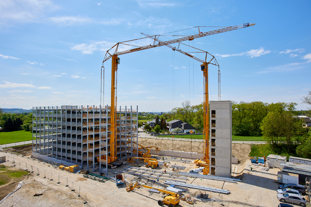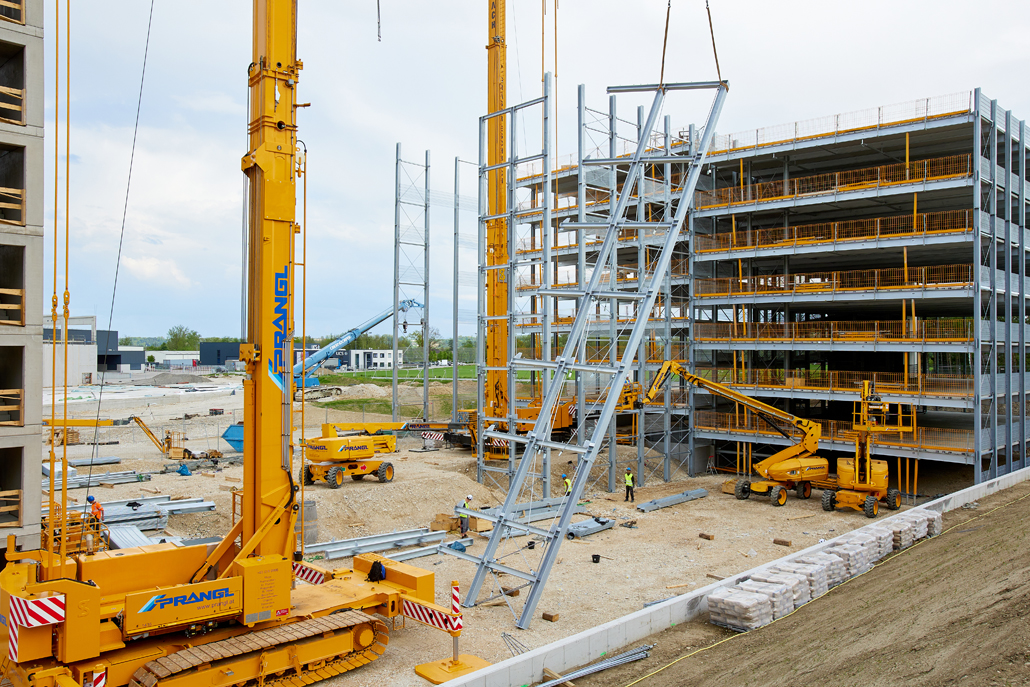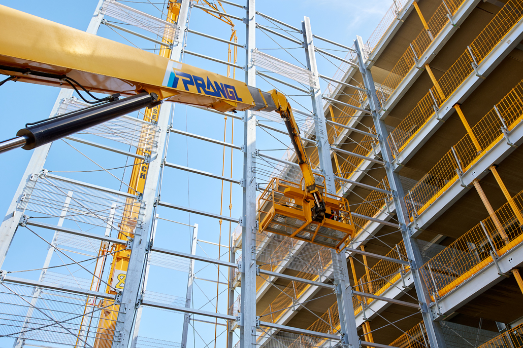 Egy 75 méter hosszú, 33 méter széles és 21 méter magas modern parkolóház építése nem kis feladat. Különösen figyelembe véve, hogy az alapja összesen 700 tonna acélból és több mint 4300 tonna betonból áll. A szerkezet megépítésével a Prangl kapott megbízást, és egyedi koncepciót dolgozott ki az ügyfél számára, beleértve az összes emelési és szerelési munkát.