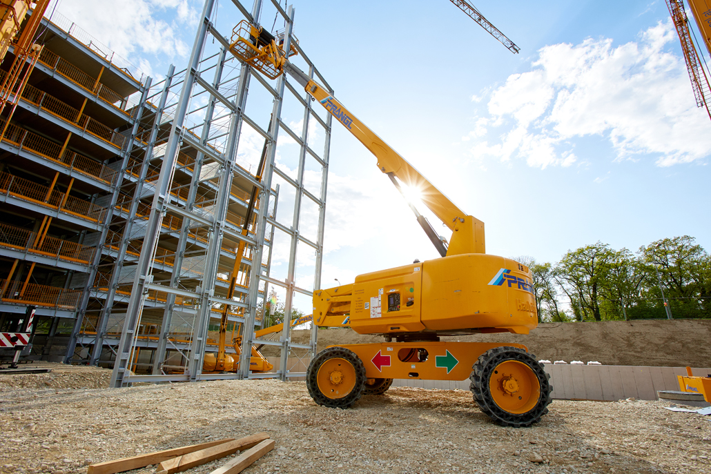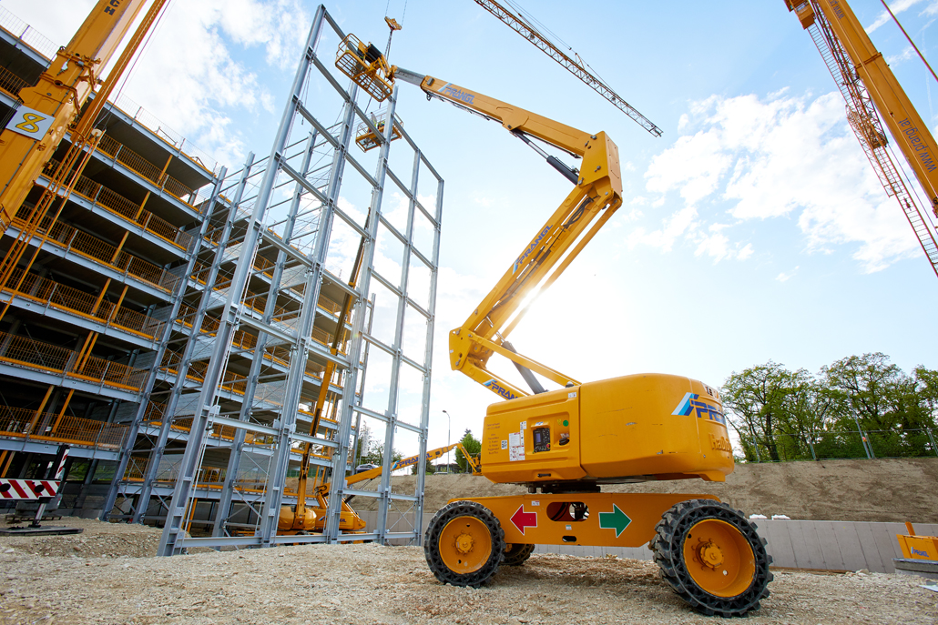 A munkaállványok (28 méteres kinyúlású teleszkópos munkaállványok, 6 méteres munkamagasságú ollós emelők), egy teleszkópos rakodógép (2,5 tonna teherbírású és 6 méter teleszkóphosszúságú) és egy csuklós munkaállvány ideális támogatást biztosítottak a nagy daru számára. A teleszkópos munkaállványokat magasban végzett szerelési munkákhoz használták, például homlokzati elemek rögzítésekor vagy épületgépészeti elemek telepítésekor. Az ollós emelőket alacsony magasságban végzett tevékenységekhez, például kábelfektetéshez vagy mennyezeti szerelésekhez használták. A galérián a kis, könnyű ollós emelők kompakt méretükkel és manőverezhetőségükkel tűntek ki.