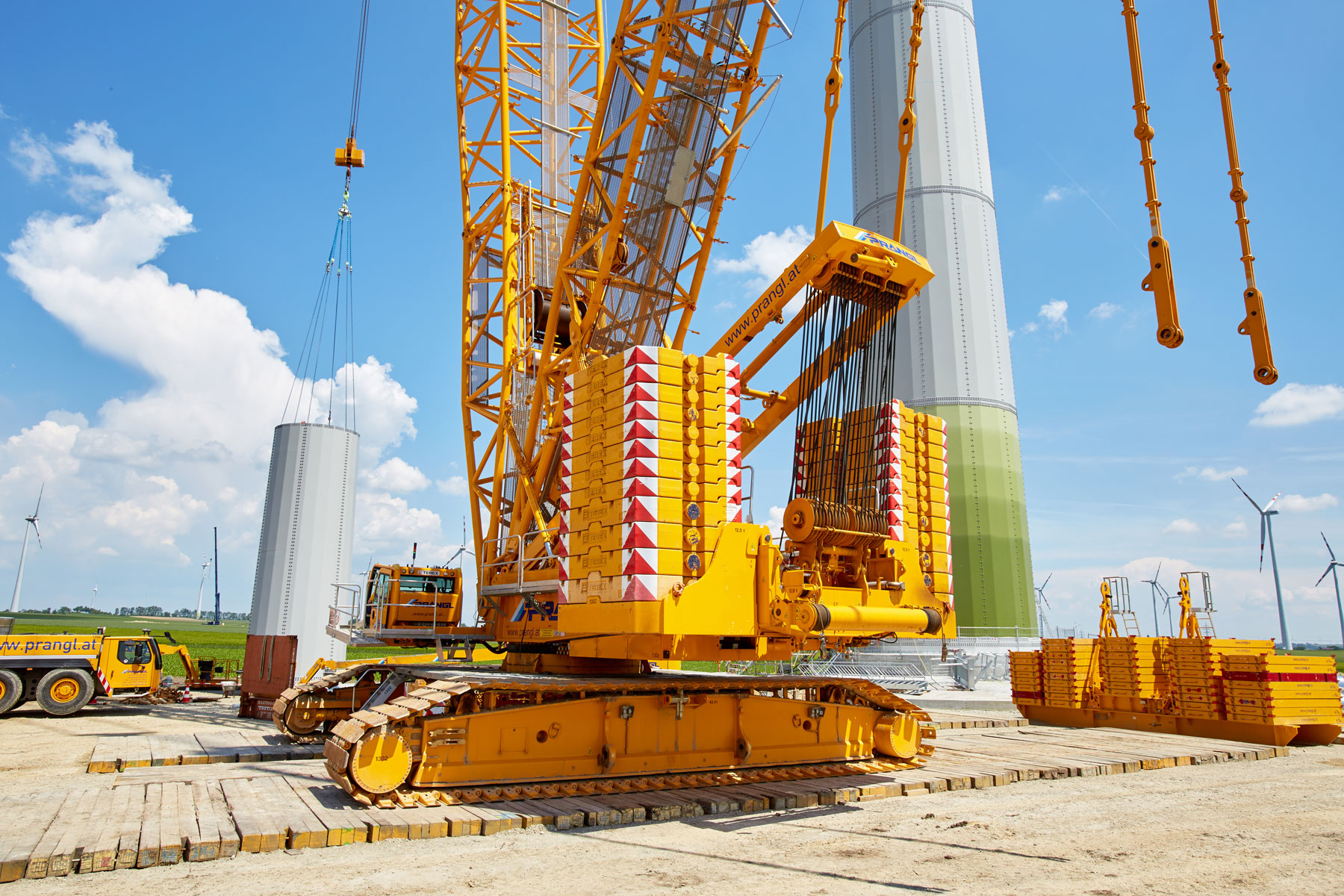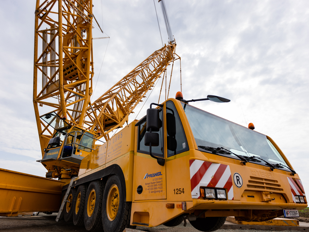 Az építkezésen csak korlátozottan rendelkezésre álló hely miatt olyan rugalmas mobildaru beállást kellett választani, amely gyorsan átalakítható. A nehézteher szállítóknak is fel kell készülni a szoros menetrendre. A leszerelt szélturbinákat Kazahsztánban újjáépítik, ezért ezeket darabonként ideiglenes tárolás céljából a Donauhaufen-i Krems-be szállítják. Ehhez egy lenyűgözően nagy gépparkot használnak a Prangl flottájából: lapátszállító eszköz, csőszállító adapter, nagy teherbírású teherszállító kombinációk, tartályszállító trélerek stb.