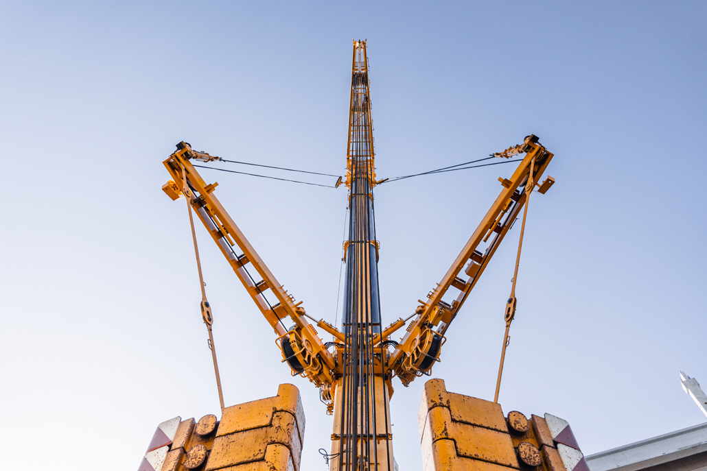 Repülőgép törzsének lerakása egy 200 tonnás teleszkópos daruval