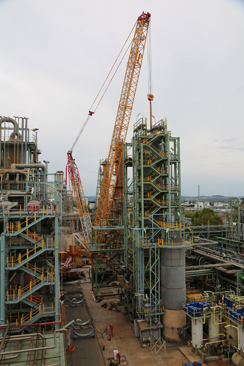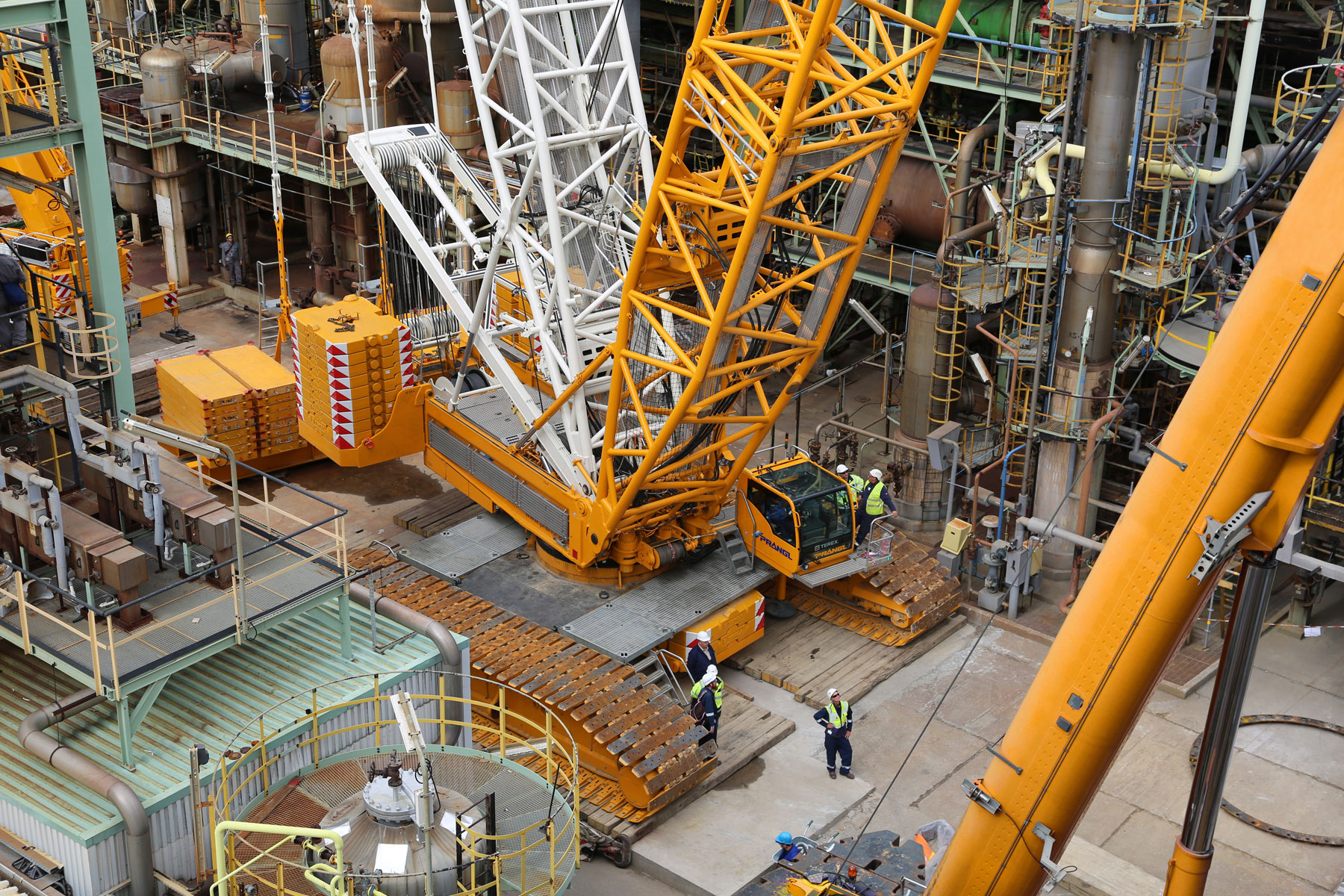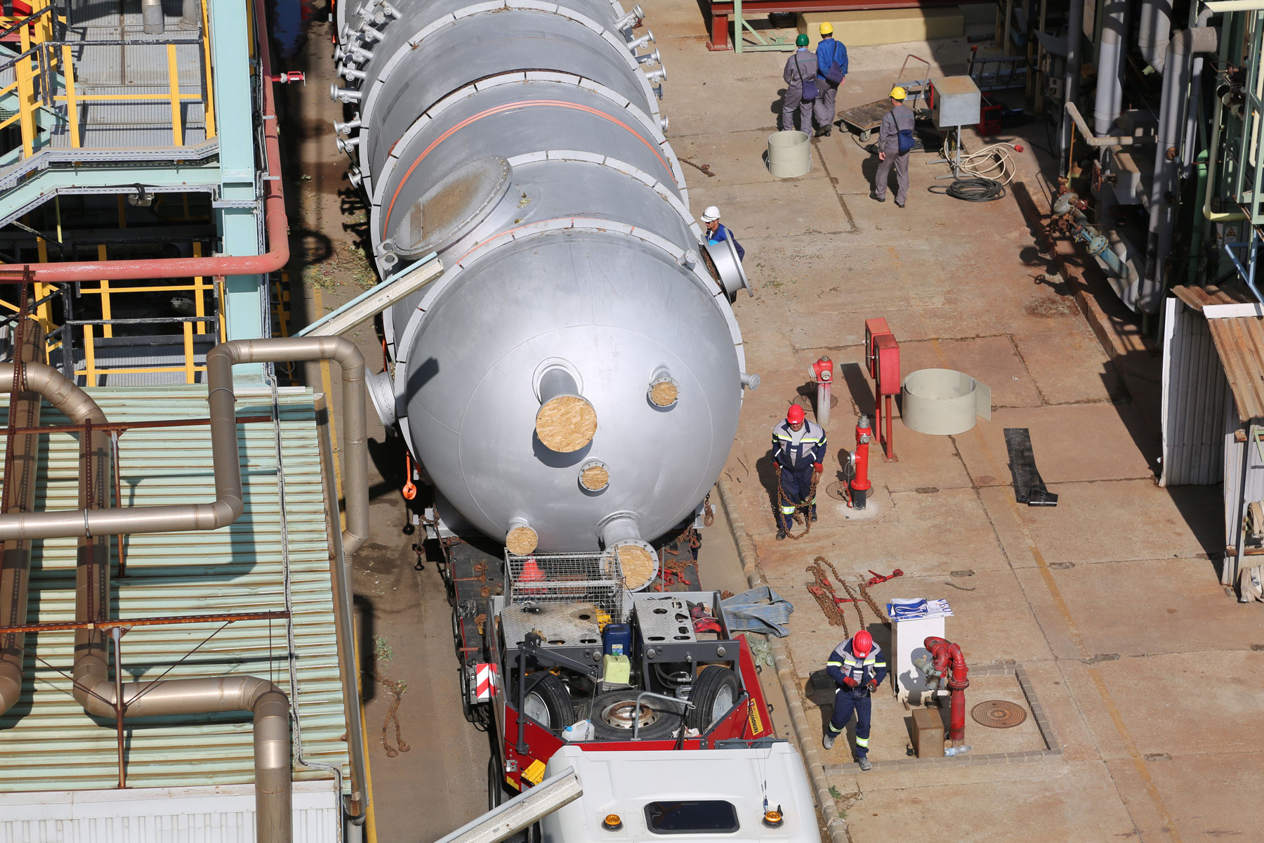 A 4,8 méter átmérőjű reaktort Délnyugat-Magyarországon készítették, és teherautó szállította Kazincbarcikára. Az ottani vegyi üzemben a berendezést egy 650 tonnás lánctalpas daru és egy 250 tonnás teleszkópos daru fogadta. A reaktort tandememeléssel előbb úgy fordították, hogy a nagy daru számára elérhető legyen, és be tudja emelni a végleges helyére. Ahhoz, hogy a művelet biztonságosan végezhető legyen, a lánctalpas darura egy 72 méteres gémet és egy 460 tonnás ellensúlyt szereltek. A kolosszus összesen 721,6 tonnát nyomott.