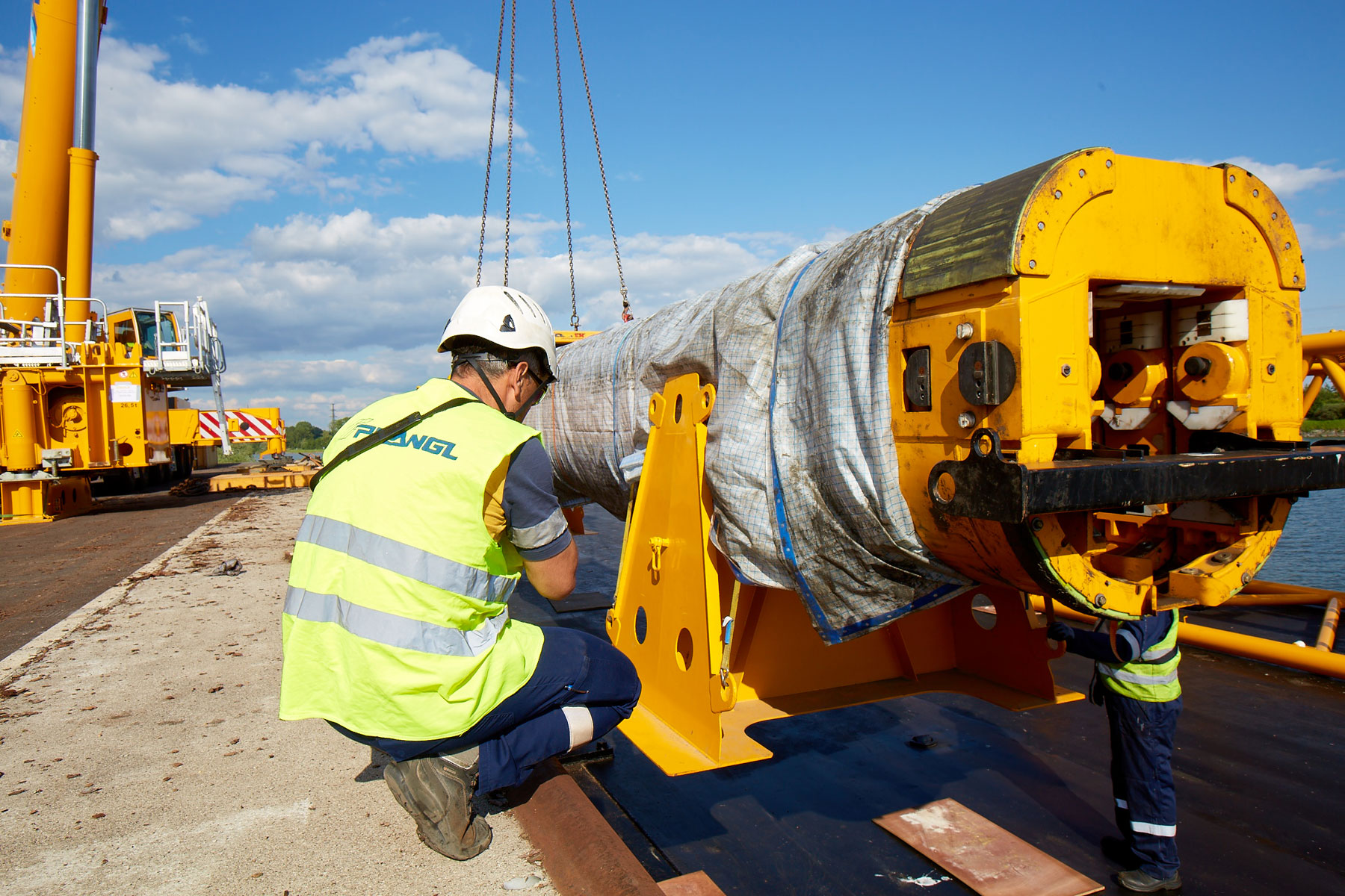 Ennek a daru „csomagnak” a kiszállítása többféle módon, hajóval és közúton történt. A hajóval való szállításra először belvízi hajókkal, Ennshafentől Terneuzen kikötőjéig (Hollandia) került sor. A RORO uszállyal ellátott tolóhajó 80 méter hosszú és 11,5 méter széles volt. Ennshafennél a RORO uszály egy mobil rámpával létesített kapcsolatot a kikötő rakpartjával, mielőtt a mobil daruk saját erőből ráfutottak. A megfelelő tartozékokat saját 250 tonnás teleszkópos daruval rakták a hajóra.