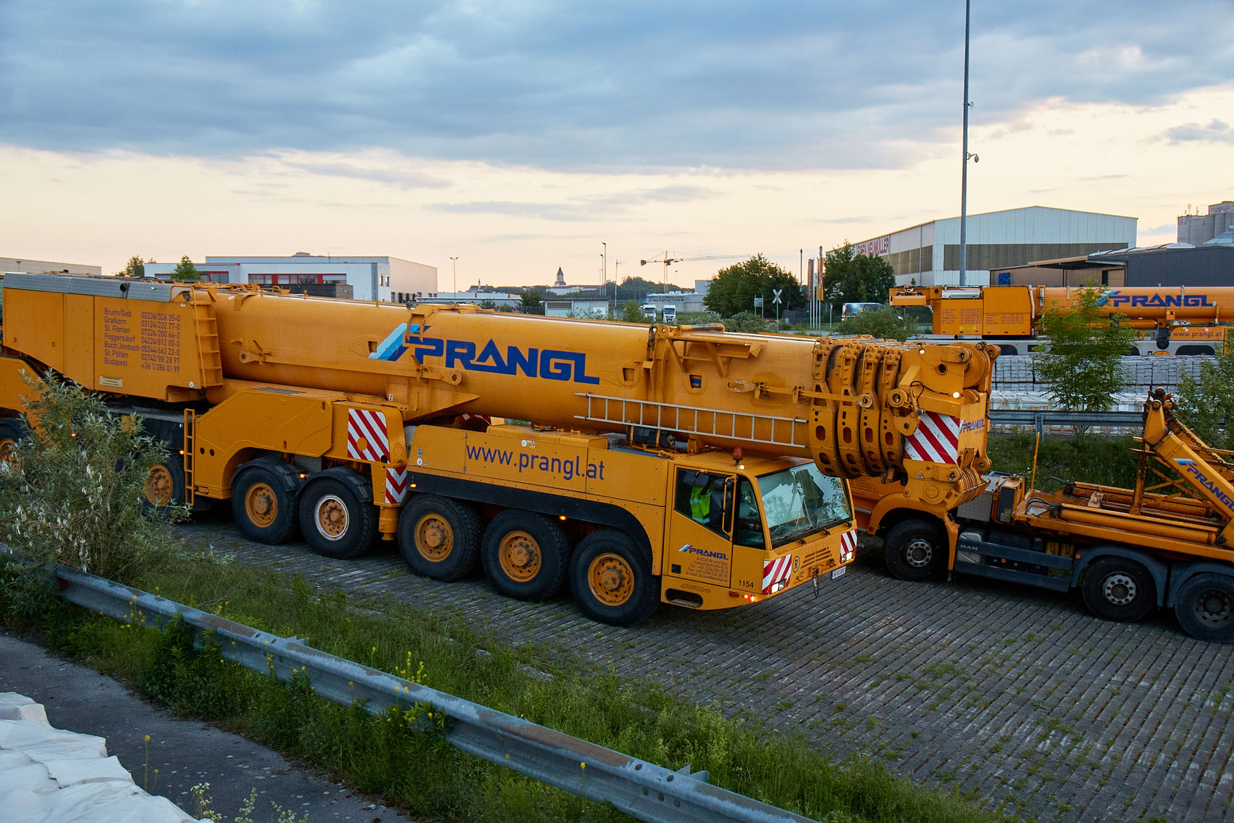 A nagy daruk precízen előkészített szállítása ismét megmutatta, hogy nem mindig maga az elvégzendő munka az, ami különlegessé teszi a projektet. Néha a megelőző megfontolások azok, amelyek innovatív partnerré teszik a Prangl céget. A „sárga” szakemberek minden projekt esetében megpróbálják megtalálni az optimális megoldást a megrendelő számára.
