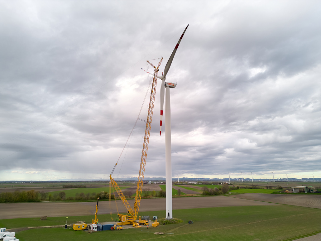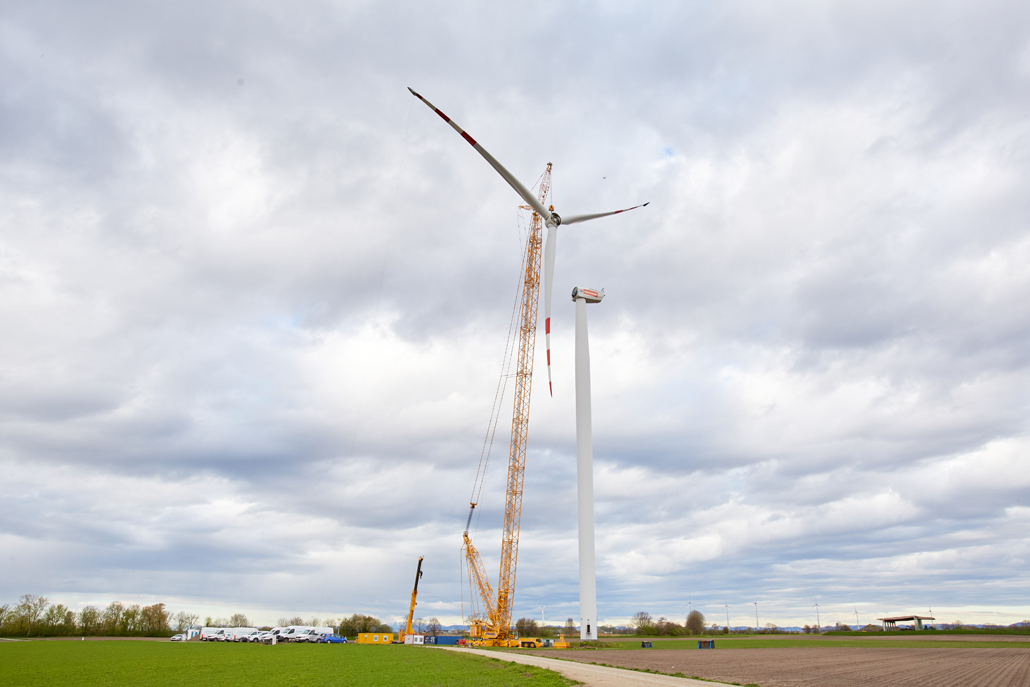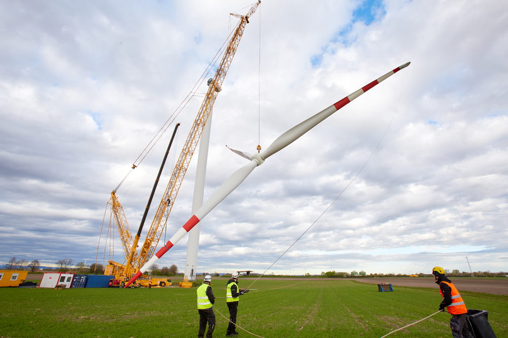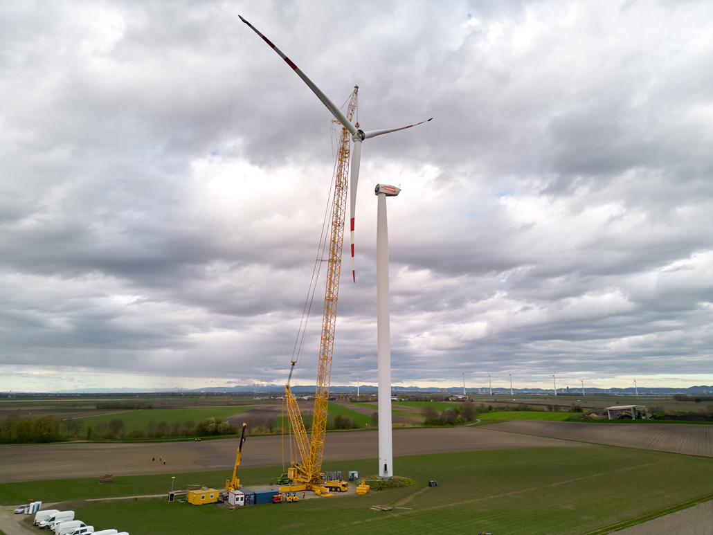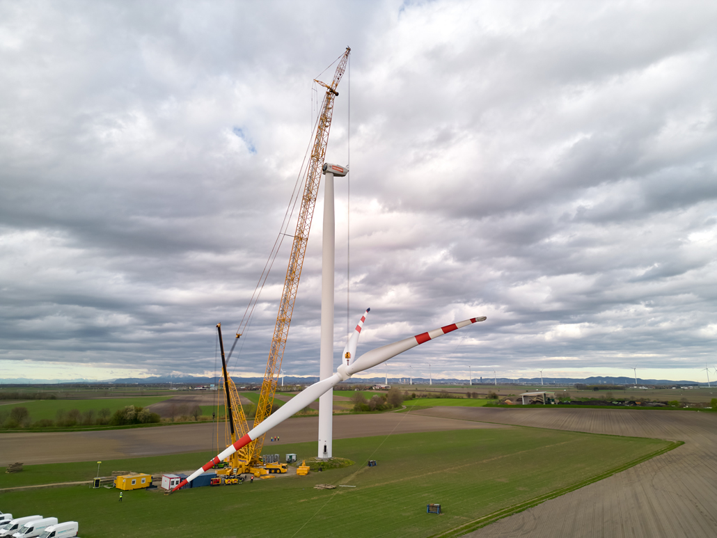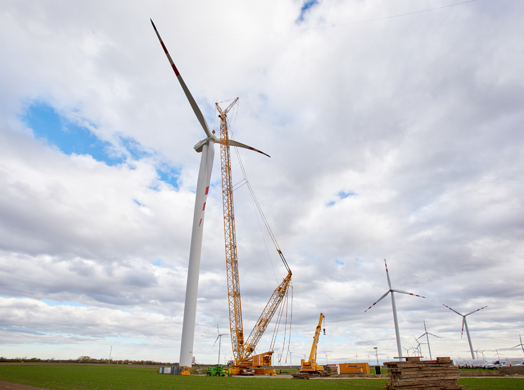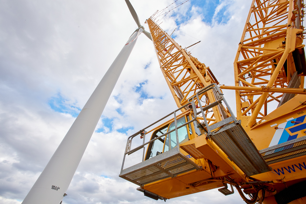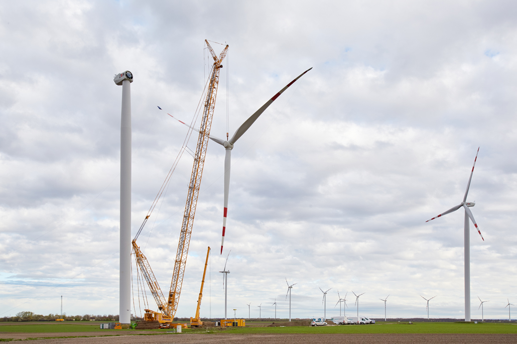 A javításhoz a kerékagyból és rotorlapátokból álló, mintegy 45 tonna súlyú „rotorcsillagot” 100 méter magasból kellett leemelni két turbinánál. Ez 110 méteres horogmagasságot eredményezett a nagy daruhoz. Ennek eredményeként a csapat egy 600 tonnás rácsos gémű darut választott fő darunak, mivel ez tökéletes ehhez a turbinatípushoz. Nagyon erős, hosszú gémje van, gyorsan felállítható és mozgatható. A rácsos gémű darut a követelményeknek megfelelően konfigurálták: 120 méteres gémhossz, 160 tonna ellensúly és 65 tonna SL ellensúly.