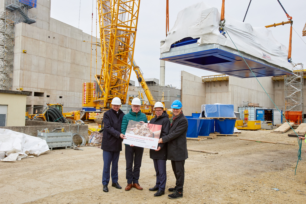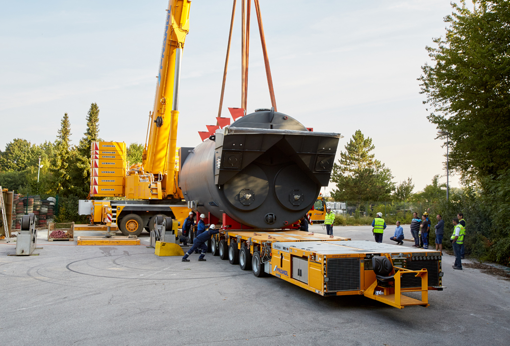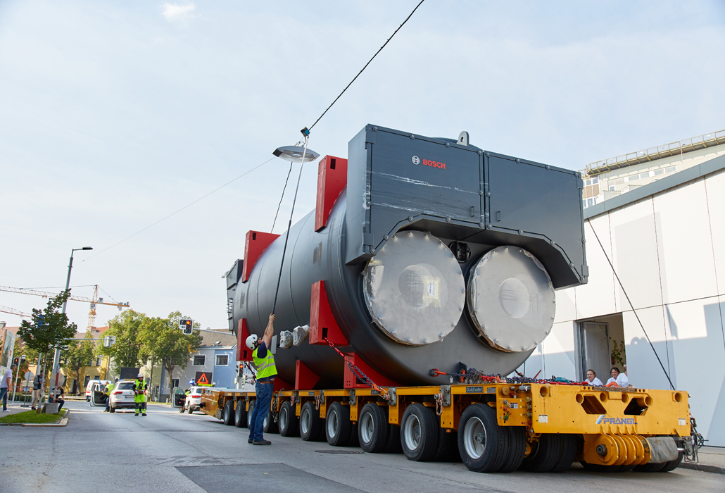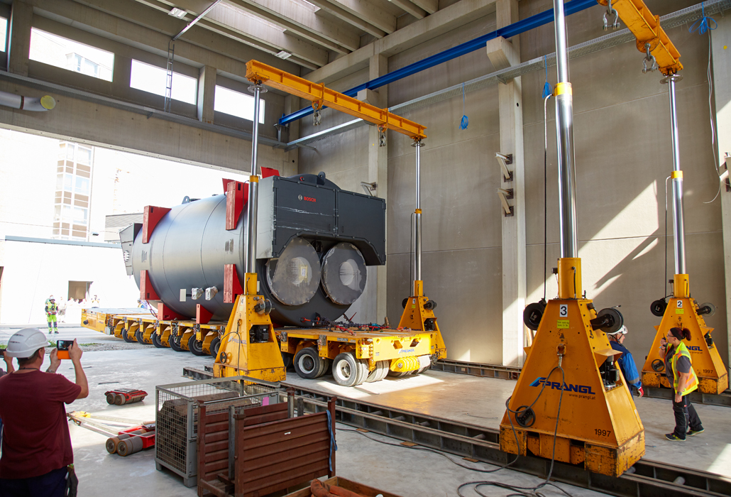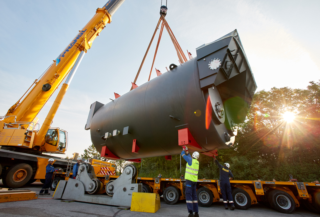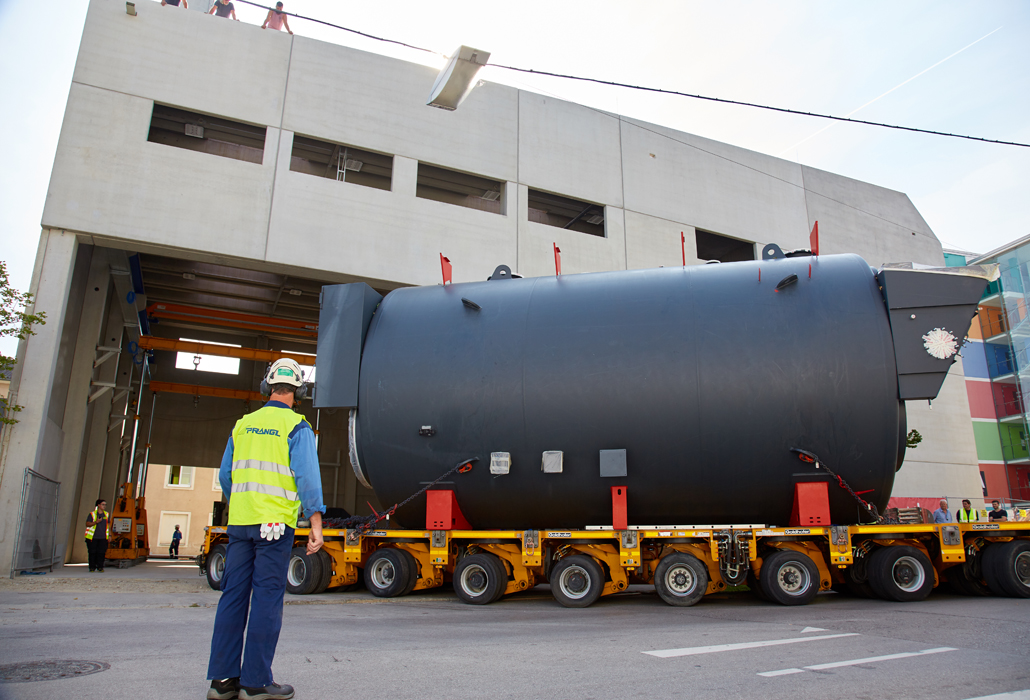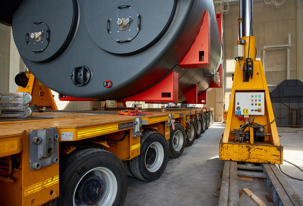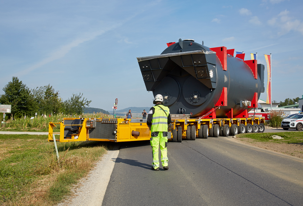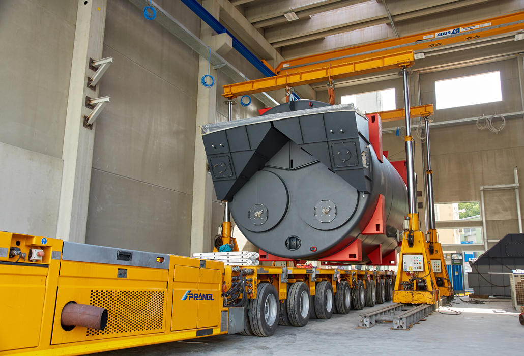 A feladat befejező műveletével a Prangl szakértői ismét bizonyíthatták a "mindent egy kézből" koncepció sikerét az új épületben. A Pranglnál egy kézben volt a teljes logisztika a rakodástól a közúti szállításon át a speciális berendezések behozataláig. A tervezési folyamat gyorsan az alternatív megoldásokra fókuszált. Csak a PHP 63 hidraulikus emelőportál jöhetett szóba, mint kompakt és erős emelőeszköz. Az utolsó néhány métert egy villás targonca és nagy teherbírású görgők segítségével sikerült megtennie a berendezésnek végső pozíciójáig. Modern technológia nemcsak az energiatermeléshez, hanem az oda vezető úton is.