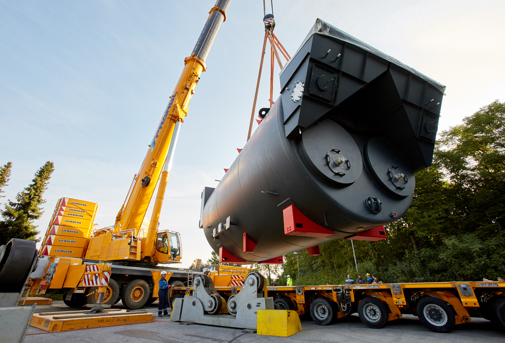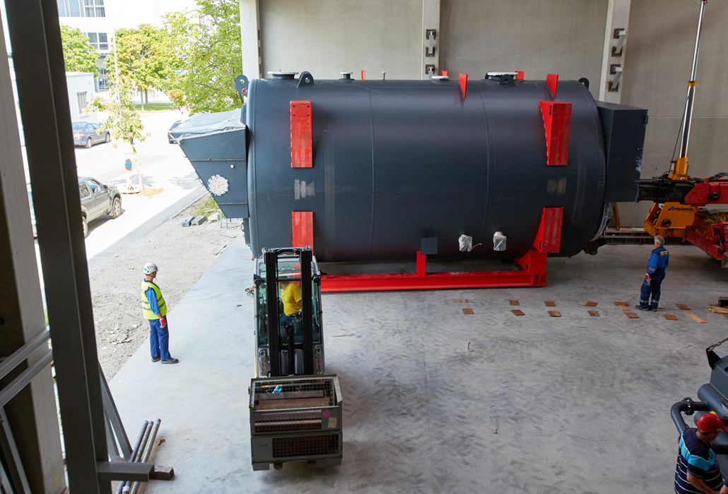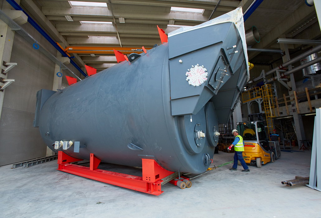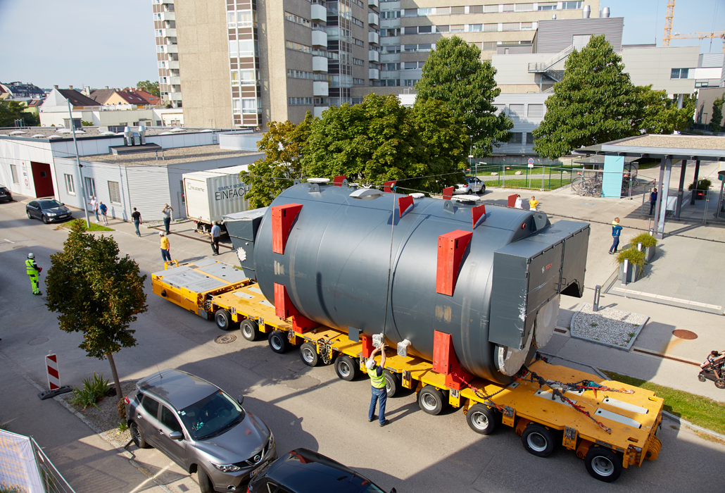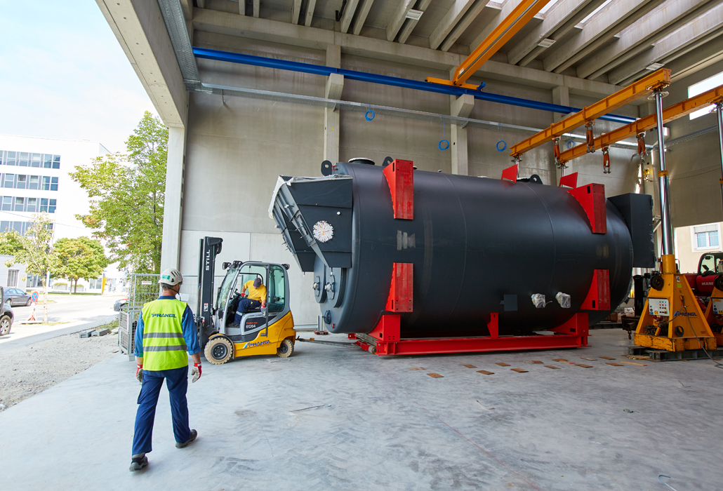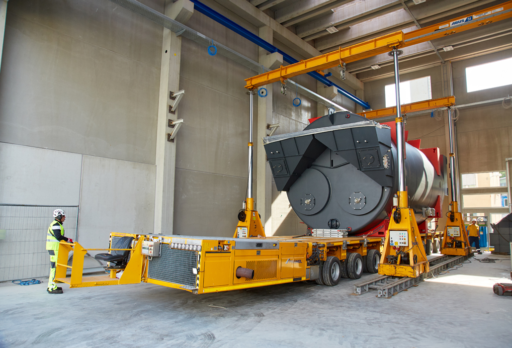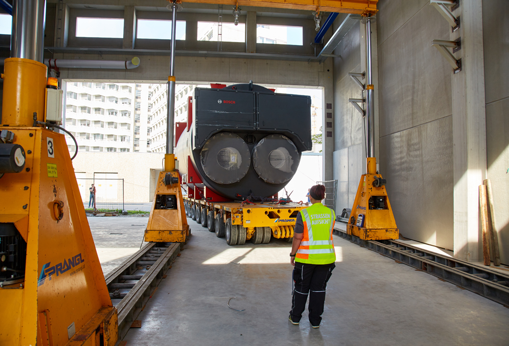 Az új melegvizes kazán és a két új gőzkazán lehetővé teszi a teljes, körülbelül 60.000 kW fűtési teljesítmény elérését. Ezek a kazánok helyettesítik az elöregedett nagynyomású gőzkazánokat, amelyek közül néhány már közel 50 éve üzemel. Először a kazánokat egyenként fel kellett emelni a Prangl speciális berendezésére. A három terhet egyenként emelték fel az önjáró nagy teherbírású járműre 350 tonnás teleszkópgémes daruval, melyek közül a 90,6 tonnás melegvizes kazán volt a legnehezebb.