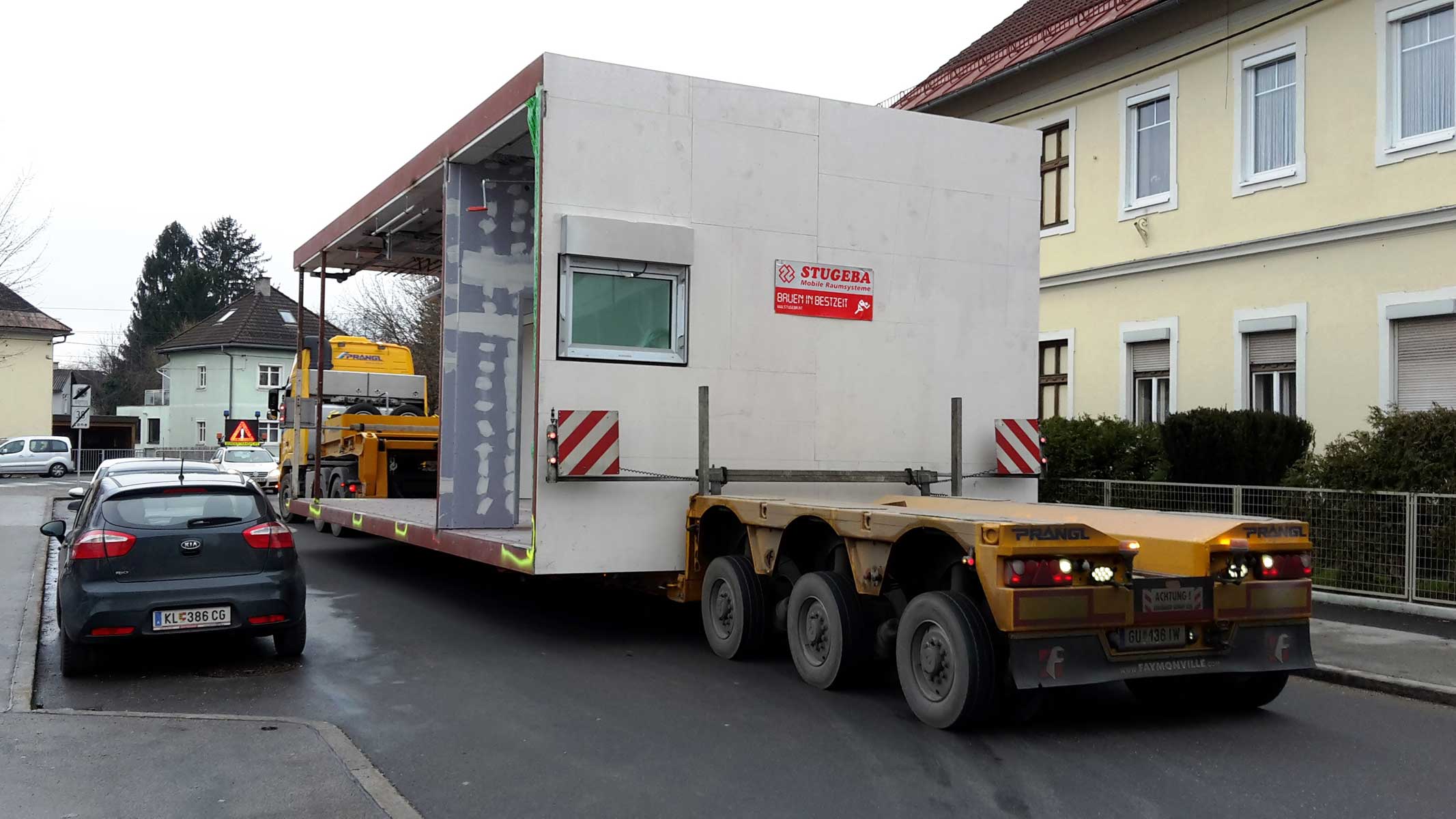 Összesen 15 olyan helyiség modult kellett leszállítatni és a helyére emelni, amelyek súlya egyenként csaknem 28 tonna volt, a szélességük pedig akár 6 méter. A kihívást egyrészt a nagyon szűkre szabott időablak, másrészt pedig az objektumok túl nagy szélessége jelentette. Néhány darabot ezért csak éjszaka lehetett szállítani, mégpedig három 3 tengelyes nyergesvontatóval és 3 tengelyes mélybölcsős pótkocsival.