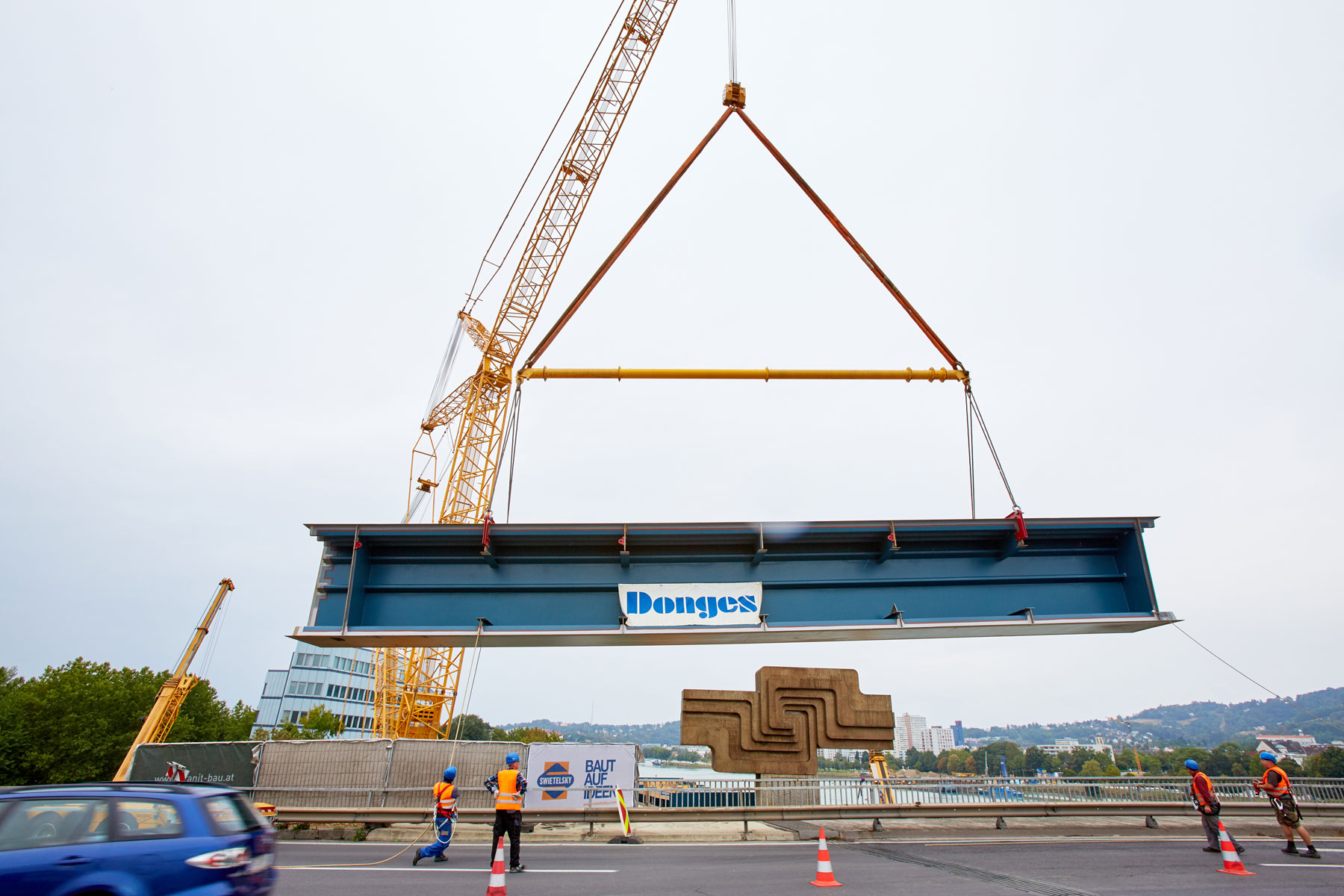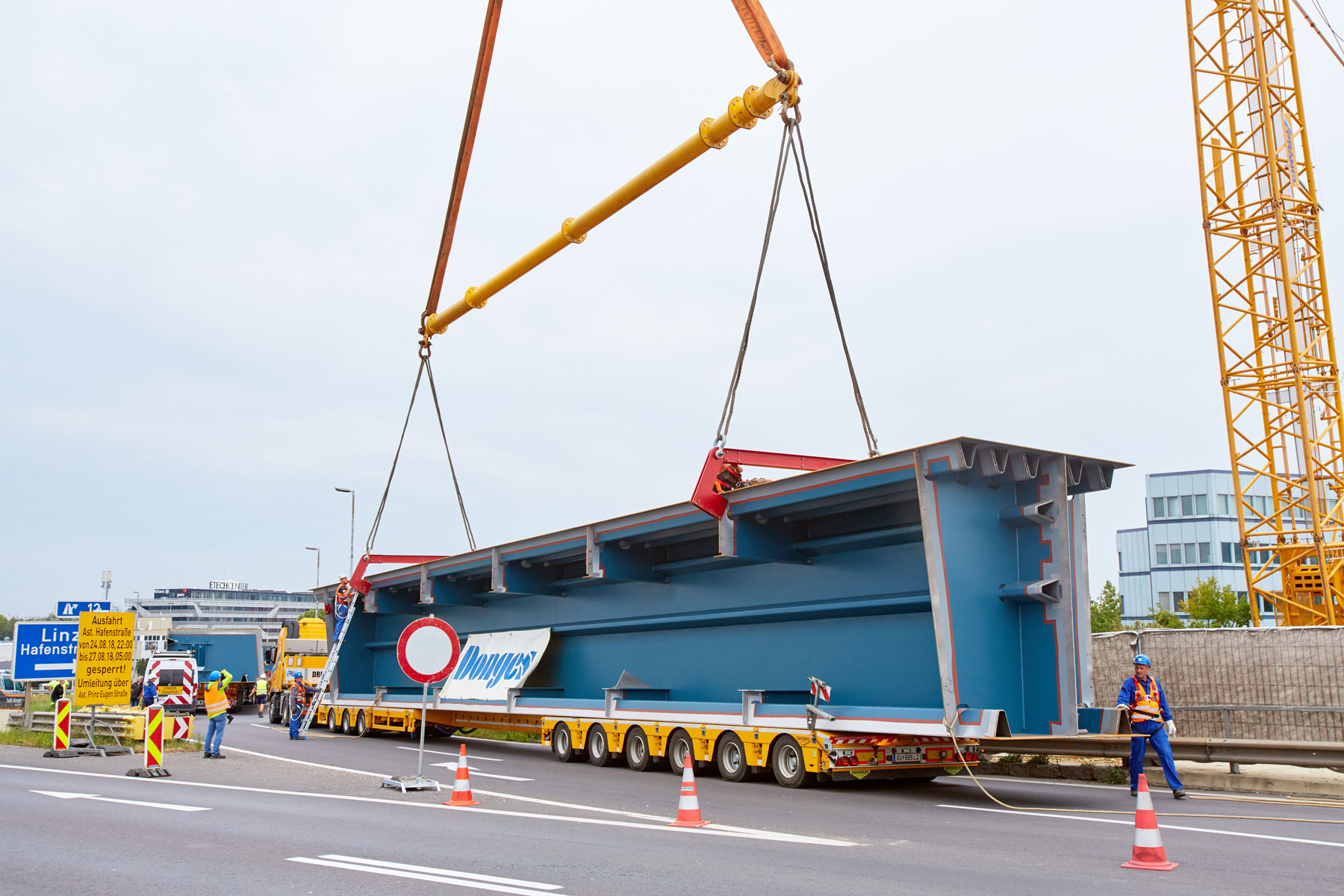 A Prangl szakértői átfogó koncepciót dolgoztak ki. A kész tartóelemeket több mint 200 szállítással juttatják el Németországból Linzbe. A legnehezebb hídelemek 62 tonnát nyomnak. A teljes logisztikai terv megvalósításához 8 és 9 tengelyes mélybölcsős félpótkocsikkal ellátott 3 és 4 tengelyes nyergesvontatókat, valamint 3, 4 és 6 tengelyes, háromszorosára nyújtható platós nyergesvontatókat alkalmaznak. Mivel a feladatot nagyon rövid idő alatt kell teljesíteni, egy rendkívül aprólékos tervet dolgoztak ki, amelyet egyeztettek az ügyféllel.