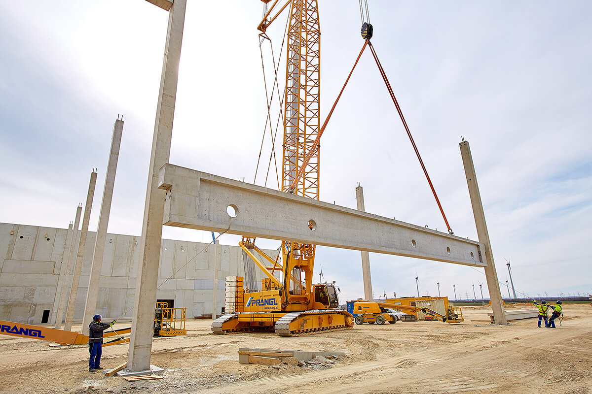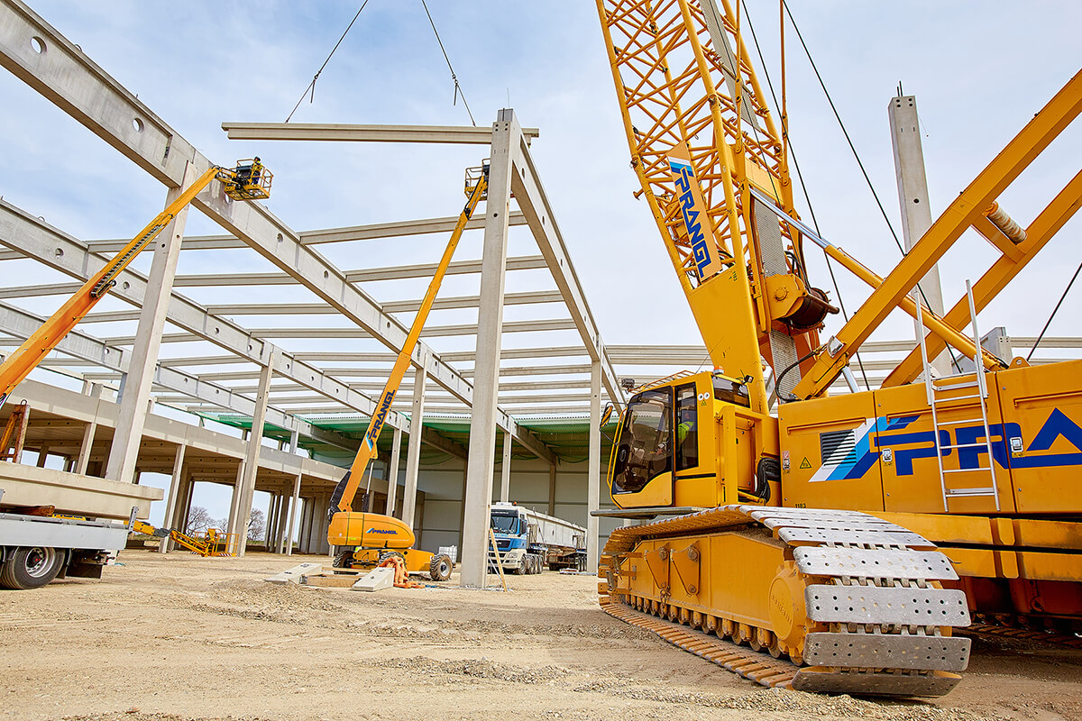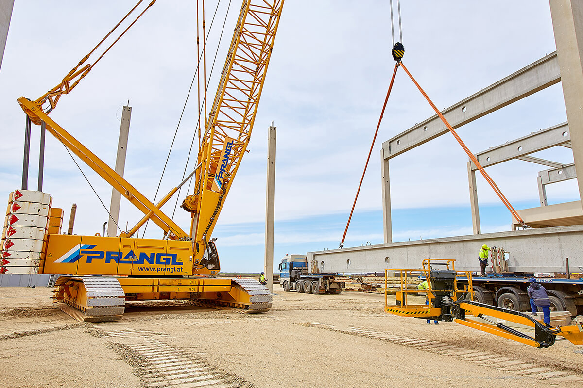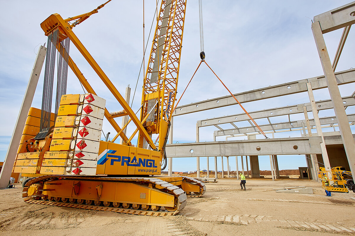 A lánctalpas daruk egyre népszerűbbek a készre gyártott betonelemeket felhasználó építőipari projektekben. A nagyméretű teleszkópos daruk sokkal körülményesebben mozgathatók, mint a lánctalpas daruk, amelyek ráadásul a teherrel együtt is tudnak mozogni. Így a költségmegtakarítás mellett lerövidíthető az összeállítási idő is. A Prangl tehát nemcsak biztonságos munkavégzést, hanem hatékonyságot és takarékosságot is kínál.